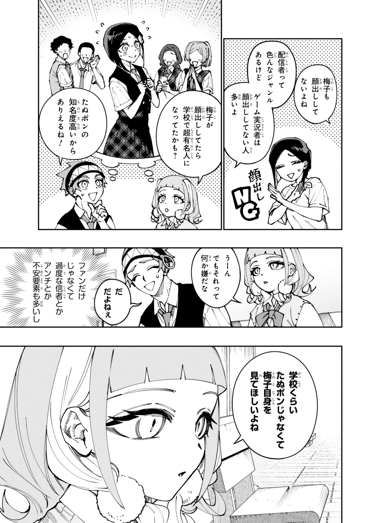 真面目な優等生・渡貫梅子は学園の王子・稲荷田秋弦に片想い中。学校では稲荷田との接点がほぼなく、真面目な自分に対してネガティブになってしまうことも。そんな梅子は、みんなに隠れて有名覆面配信者・たぬポンとしてゲーム実況をすることでストレスを発散していた。一方、学園の王子・稲荷田秋弦にも周りには見せない裏の顔があり――!? 近くて遠い、2人が繰り広げる学園生活ラブコメディ!