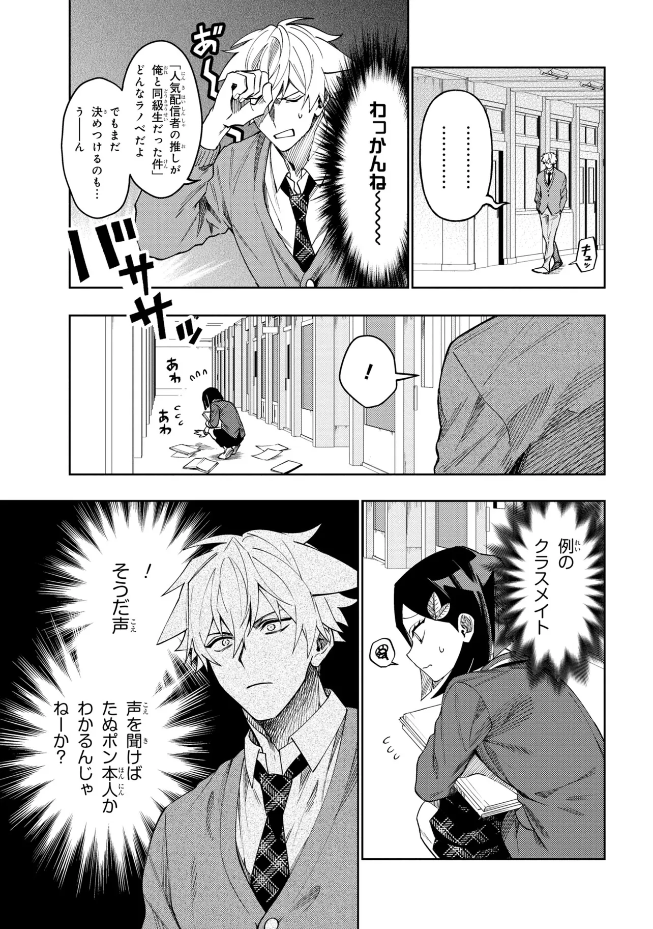 真面目な優等生・渡貫梅子は学園の王子・稲荷田秋弦に片想い中。学校では稲荷田との接点がほぼなく、真面目な自分に対してネガティブになってしまうことも。そんな梅子は、みんなに隠れて有名覆面配信者・たぬポンとしてゲーム実況をすることでストレスを発散していた。一方、学園の王子・稲荷田秋弦にも周りには見せない裏の顔があり――!? 近くて遠い、2人が繰り広げる学園生活ラブコメディ!