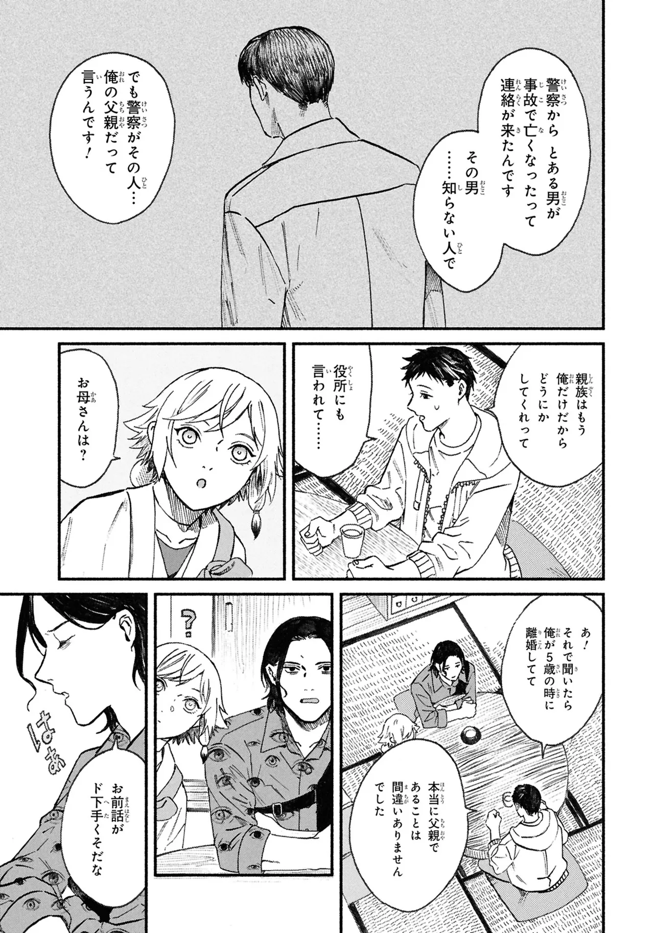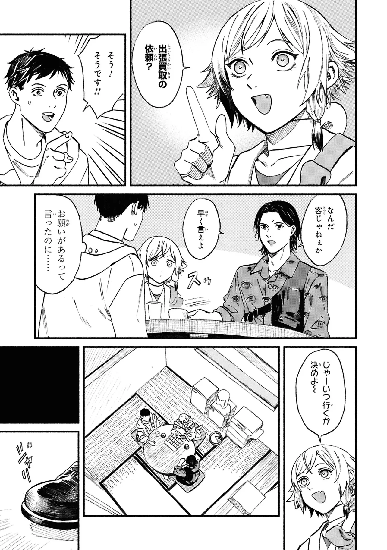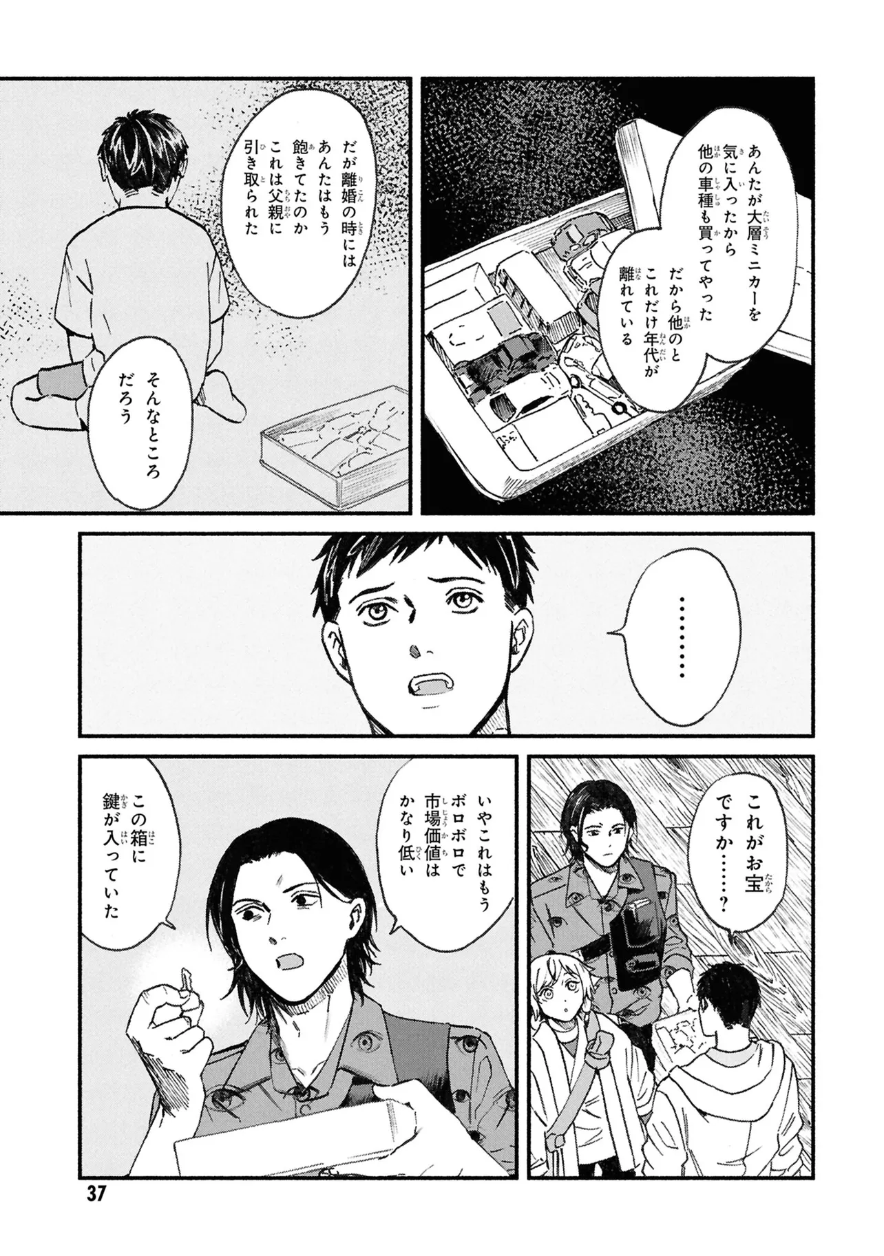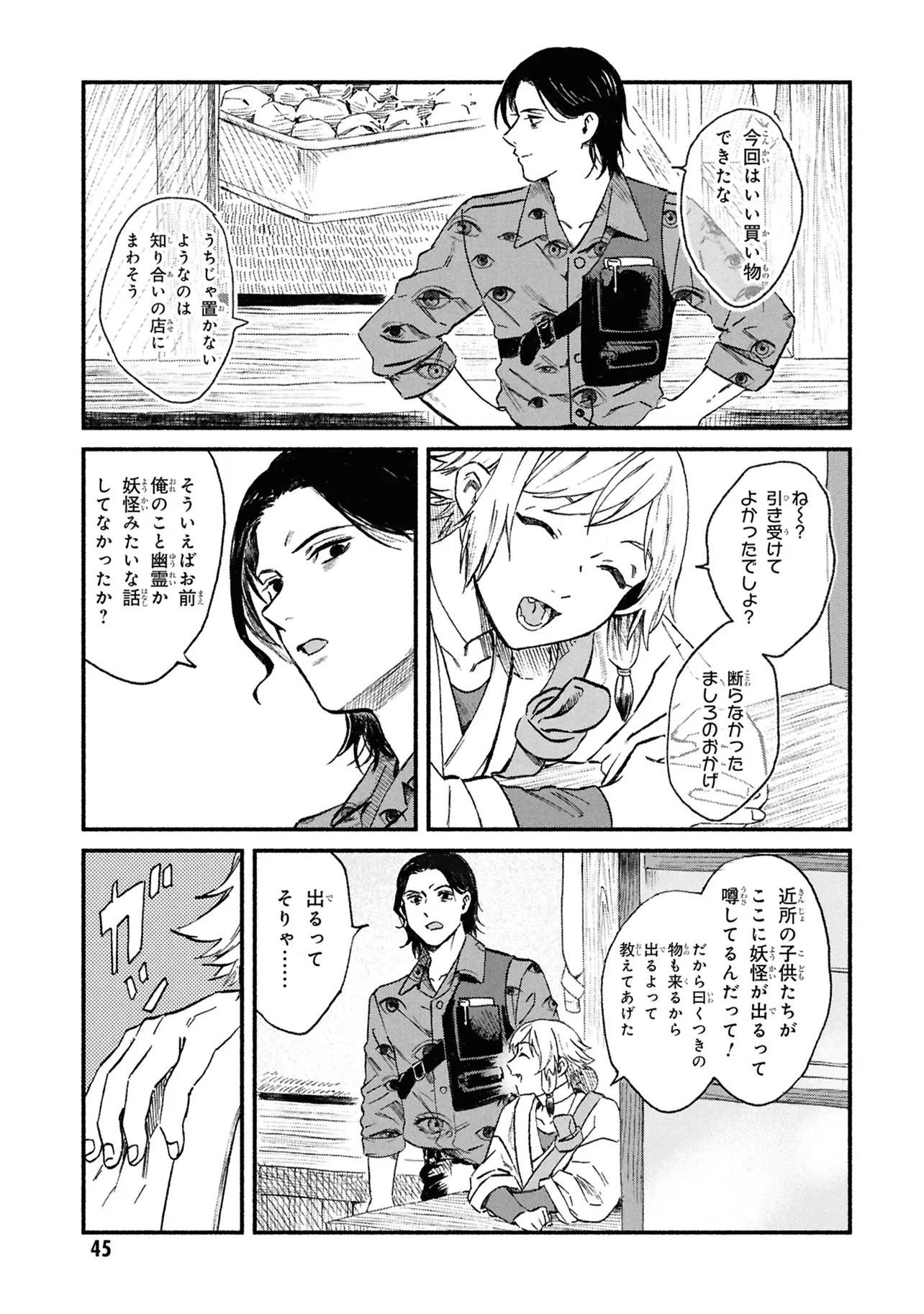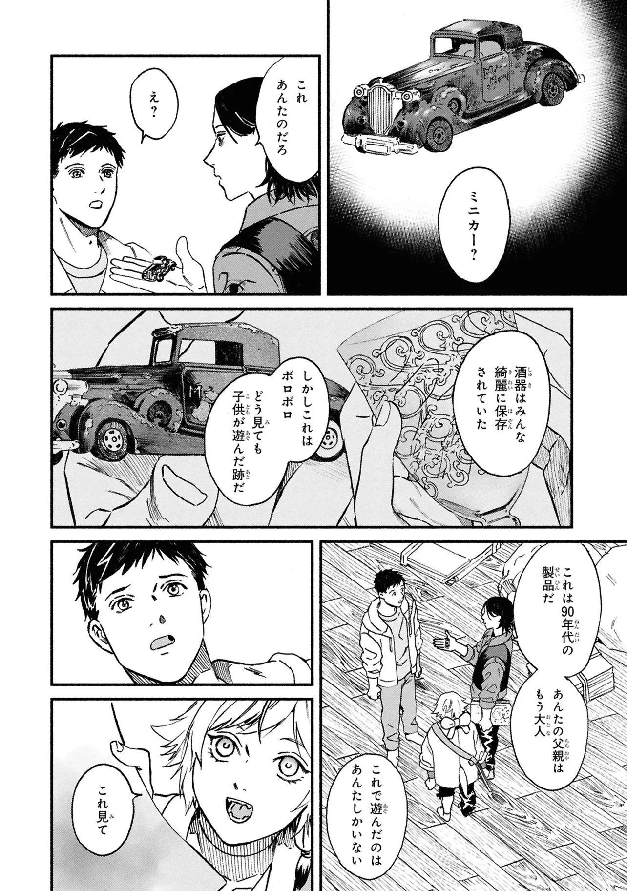 がらくたから 一品目 それぞれの宝物 がらくたから 投稿者 admin - 4か月 前に 幸せな読書漫画 がらくたから 一品目 それぞれの宝物 , いいねと共有ボタンをクリックすることを忘れないでください. Manga がらくたから 常に更新されます 無料コミック Comic Top. 他のマンガの更新を読むことを忘れないでください。 マンガコレクションのリスト 無料コミック Comic Top マンガリストメニューにあります. お友達と共有しましょう! Facebook Twitter Pinterest Whatsapp 前のエピソード すべての章 次のエピソード リスト ページング Loading.. 前のエピソード すべての章 次のエピソード リスト ページング お友達と共有しましょう! Facebook Twitter Pinterest Whatsapp お気に入りに追加に続く 0 人 がらくたから 西荻窪にある骨董品店「九十九商店」。そこでは、かつて人に裏切られた経験から誰も信用できなくなった男・史と、謎の少年・ましろが暮らしている。 ましろの正体は文房具「水滴」の付喪神であり、彼の「骨董品の“記憶”を視る能力」で二人は来店する人々の悩みを解決するのだった――。 今日も店には“曰く付き”の品が持ち込まれる。 少し不思議で、心あたたまるアンティークの世界へようこそ。 pikomaro クセになるシリアススカッとするドラマハッピーほのぼの人外切ない動物友情・仲間妖怪日常系泣ける現代生活・ライフスタイル癒やされる社会人笑える群像劇