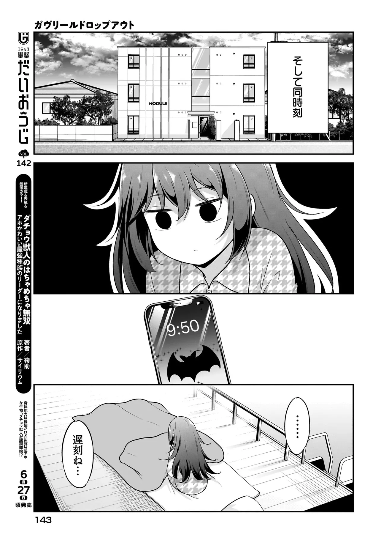ガヴリールドロップアウト 第123話 ガヴリールドロップアウト 投稿者 admin - 6か月 前に 幸せな読書漫画 ガヴリールドロップアウト 第123話 , いいねと共有ボタンをクリックすることを忘れないでください. Manga ガヴリールドロップアウト 常に更新されます 無料コミック Comic Top. 他のマンガの更新を読むことを忘れないでください。 マンガコレクションのリスト 無料コミック Comic Top マンガリストメニューにあります. お友達と共有しましょう! Facebook Twitter Pinterest Whatsapp 前のエピソード すべての章 次のエピソード リスト ページング Loading.. 前のエピソード すべての章 次のエピソード リスト ページング お友達と共有しましょう! Facebook Twitter Pinterest Whatsapp お気に入りに追加に続く 1 人 ガヴリールドロップアウト 首席の天使が地球にやってきた! ……が、地球に馴染みすぎて学校サボりまくりのネトゲ三昧、自堕落生活。駄天使と化したガヴリールが贈るスクールコメディ! コミックス12巻、好評発売中! うかみ(著者) BOOK☆WALKERでセール中!!アニメ化ギャグ女子高校生(JK)