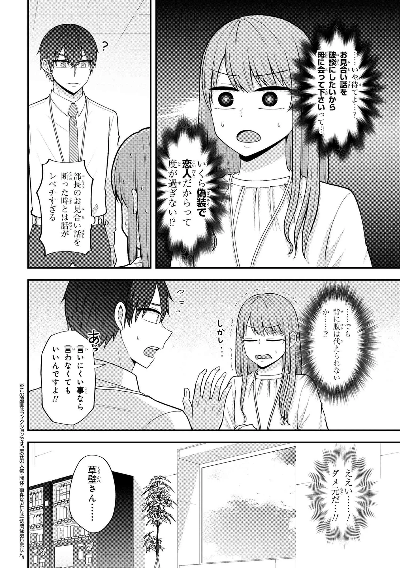 職場ではリア充を装っている、恋愛経験0のガチオタク・夢川萌。現在の“彼氏”は、MMOで理想の外見をキャラメイクした“ファンタジスタ・雪丸”だ。そんなある日、職場で“ファンタジスタ・雪丸”そっくりの草壁千春と遭遇!! 驚く夢川だったが、上司からお見合いを勧められ困っている草壁を見て、思わず会話に割って入ってしまう。そして、草壁もリア充と思われているが、実は限界オタクだった……! 会話の流れでなぜかつきあっていると勘違いされた2人だが、リア充を偽装するために肯定する流れになり――?