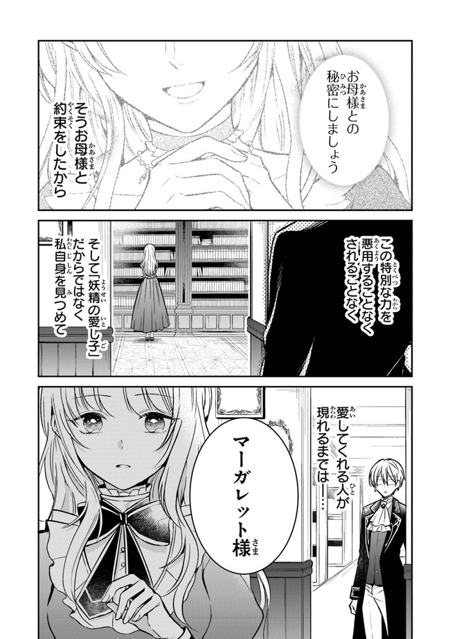 公爵の娘であるマーガレットは、聖人の儀式で彼女の力が発揮されなかったため、王子によって婚約が放棄されました。 彼女の義理の妹が彼女に代わって聖人であるという噂がありますが、マーガレットは妖精と話すための彼女の秘密の力を隠しています。 これはあなたを嫌な王子と彼の義理の妹から解放します! 学校で妖精たちとおしゃべりを楽しんでいたら、ルイス伯爵夫人に見られてしまいました!?