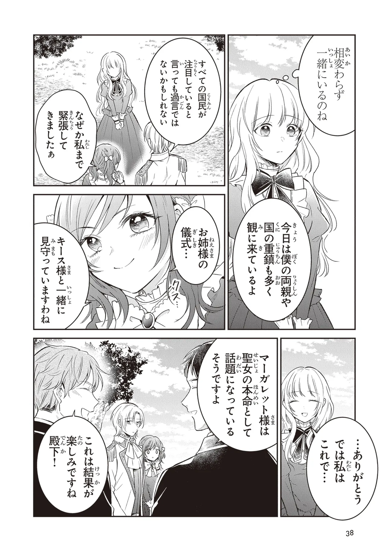 公爵の娘であるマーガレットは、聖人の儀式で彼女の力が発揮されなかったため、王子によって婚約が放棄されました。 彼女の義理の妹が彼女に代わって聖人であるという噂がありますが、マーガレットは妖精と話すための彼女の秘密の力を隠しています。 これはあなたを嫌な王子と彼の義理の妹から解放します! 学校で妖精たちとおしゃべりを楽しんでいたら、ルイス伯爵夫人に見られてしまいました!?