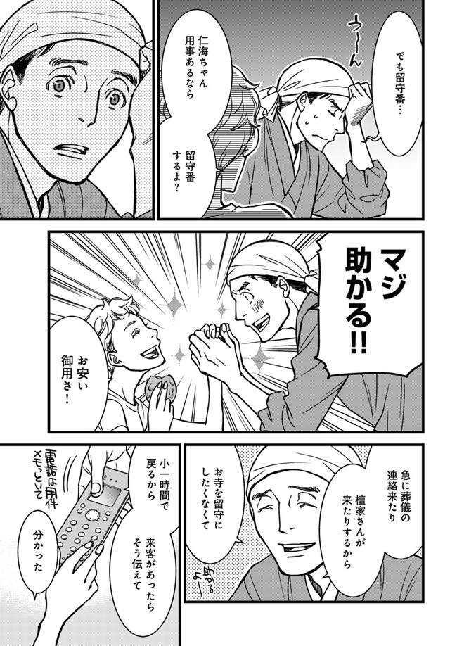 ある日突然、住職の父が失踪! それが原因で極楽寺の跡取り息子・仁海の日常が大きく変化し…。マイペースなお坊さんが贈る、のんびりお寺コメディ!