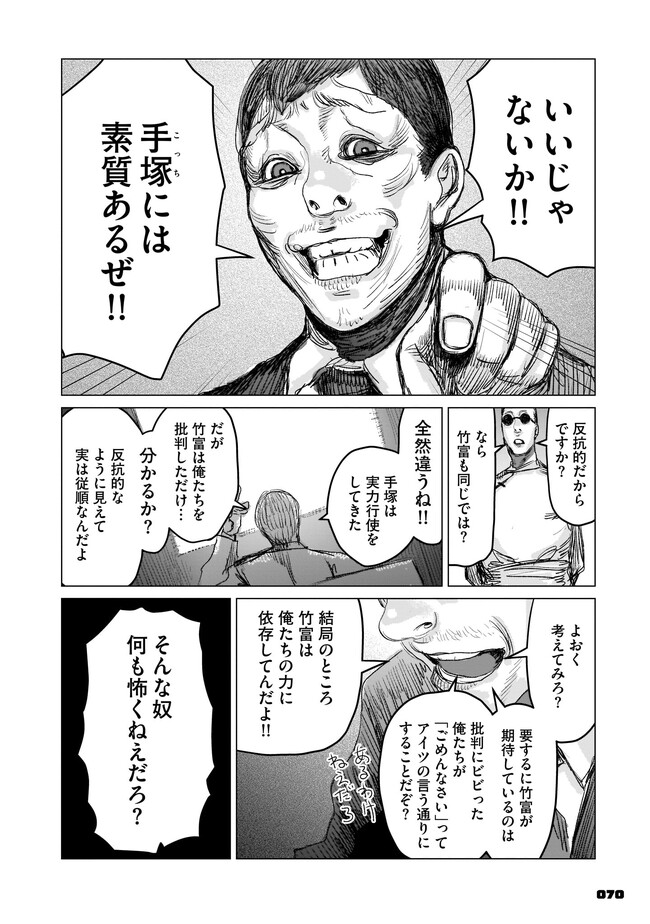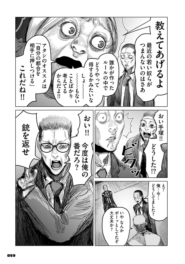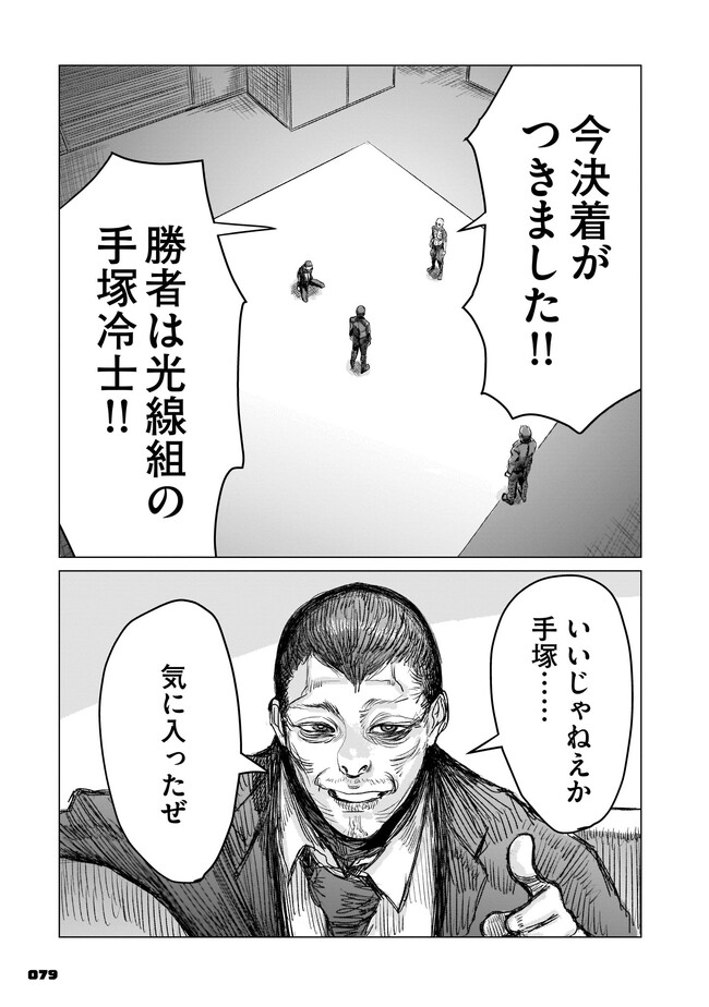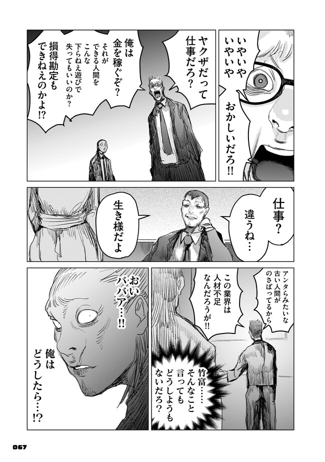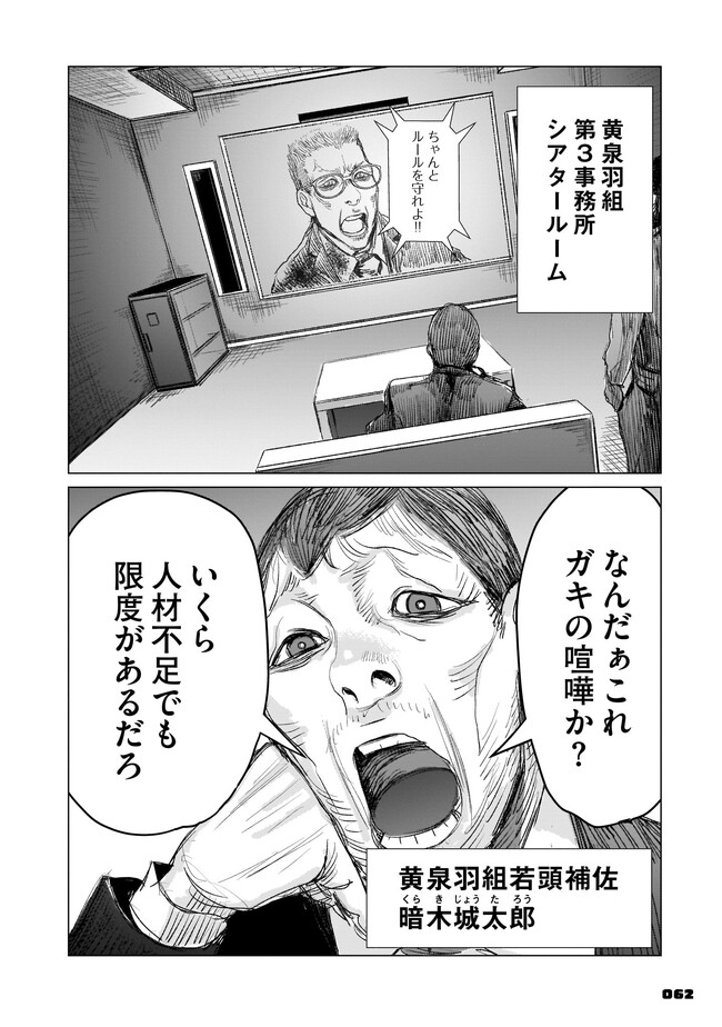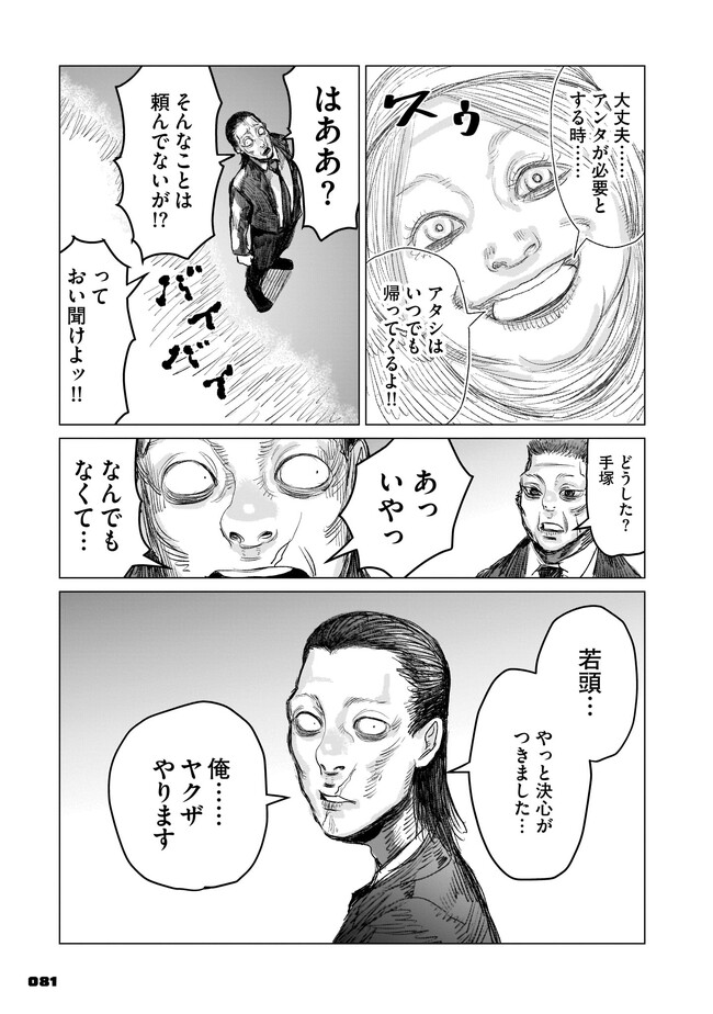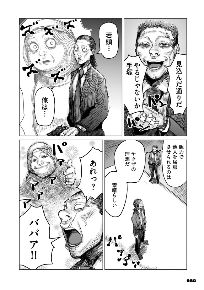 腰の低い普通のサラリーマン・手塚冷士は、ある日インターネットの友人から「顔が怖い」という理由だけでヤクザに勧誘されてしまう。 躊躇する手塚だったが、いつの間にか組同士の決闘に巻き込まれることに。そんな折、彼はとある定食屋を訪れる。そこで体験する恐怖が、己を「最恐の極道」へと誘うことも知らずに……。 混沌極まるヤクザ・ババア・異能アクション、開幕!