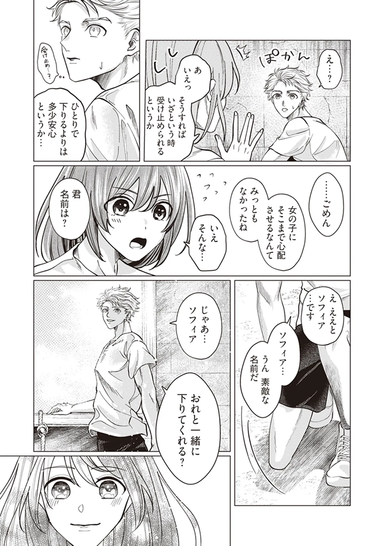 彼女の有望な若い騎士は、彼女の圧倒的な力が隠されておらず、彼女の視線が彼女に向けられている間、親切にソフィアを見守っています。
