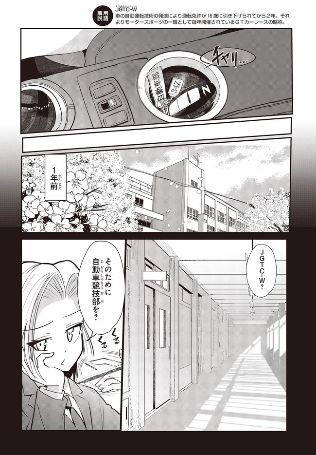 彼女は、自動車競技部設立に向けて部員集めをしているが――?