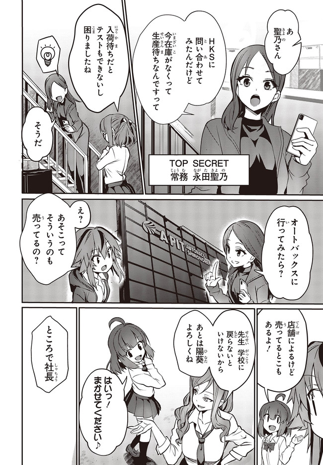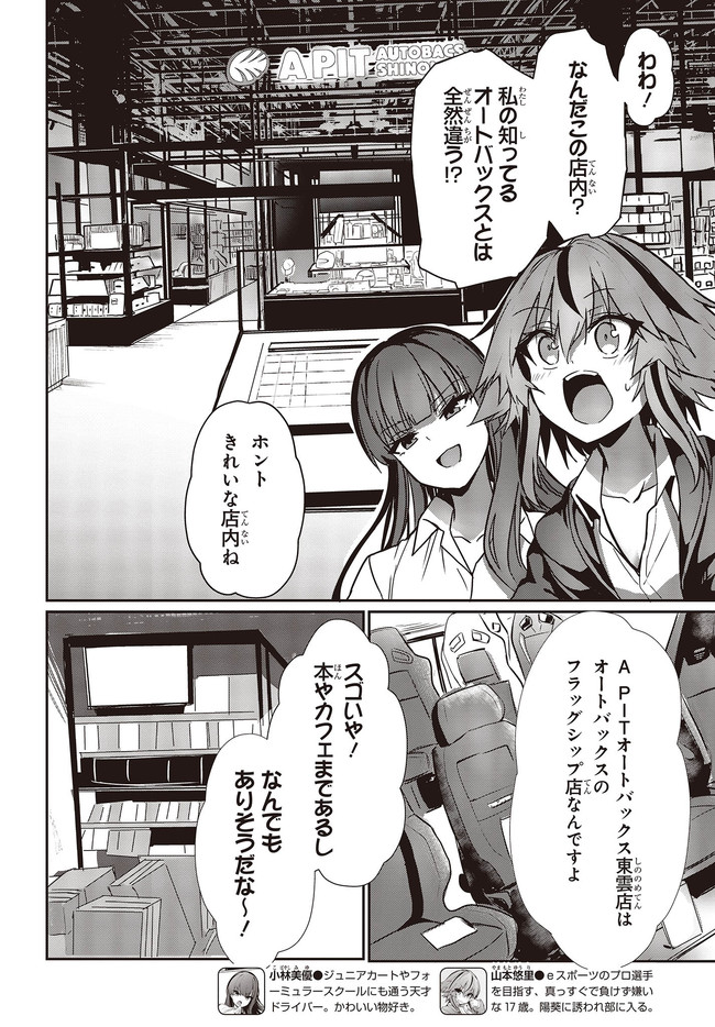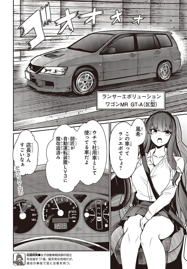 自動車の自動運転技術向上により、運転免許の取得が16歳に引き下げられた世界――。 そこでは、高校生たちのカーレースを盛り上がりを見せていた。 主人公の佐藤陽葵は、美浜女子高等学校に通う2年生。 彼女は、自動車競技部設立に向けて部員集めをしているが――?