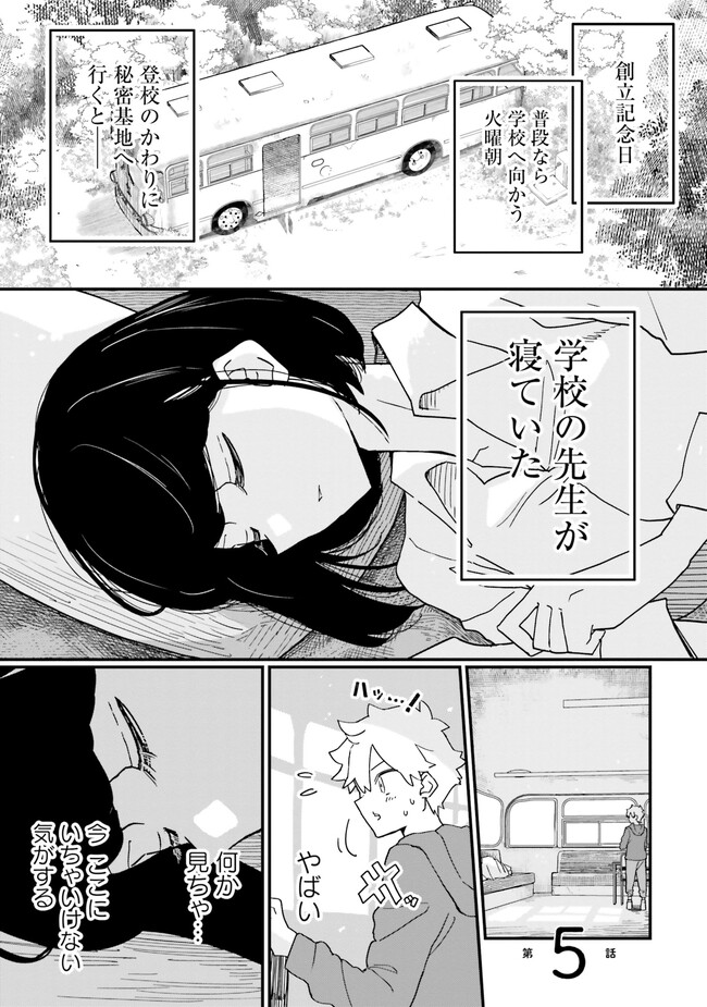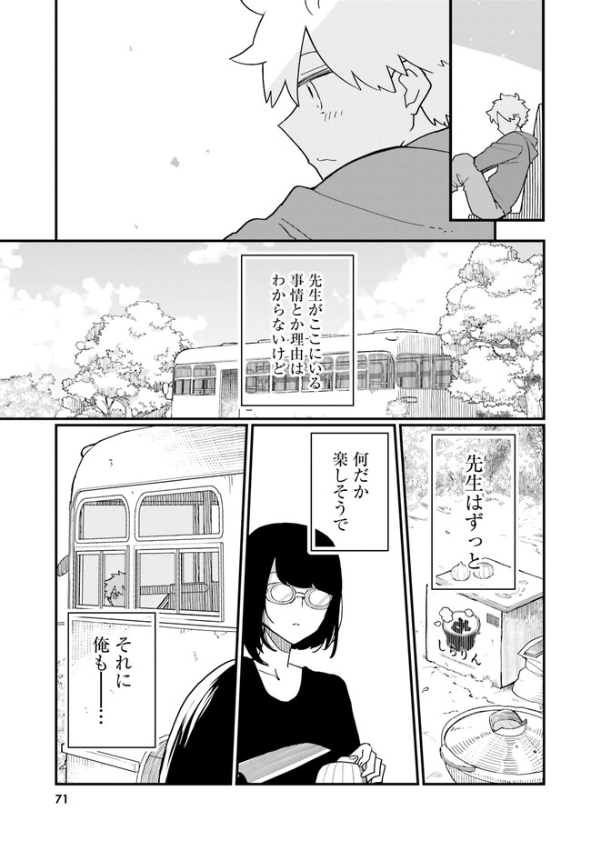 美人教師の雨森先生は、なぜか空き地に捨てられた廃バスに住んでいる――。 『おとなのほうかご』のイチヒがお送りする、SNSで話題沸騰のおひとりさま車中泊コメディ!