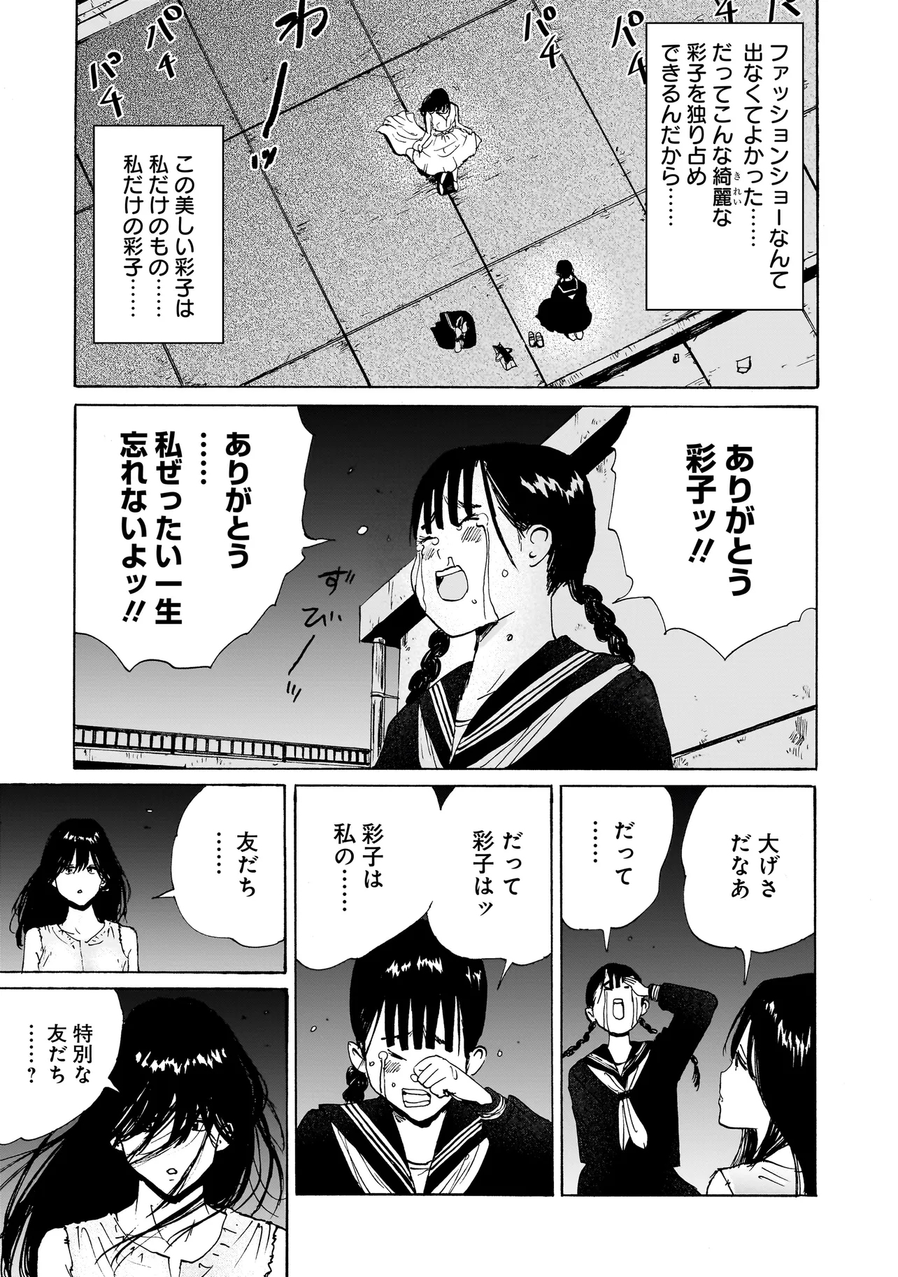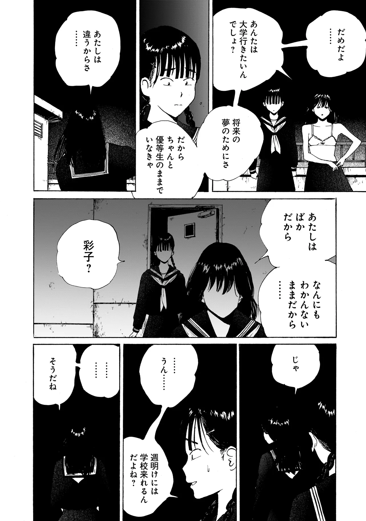 退廃の90年代、さえない青春を送る荻原由紀(おぎわら・ゆき)は不良少女の鮫島彩子(さめしま・さいこ)に恋をしていた。 荻原の猛烈な憧れは、ときに淫靡な自慰行為への衝動につながり、ついには「鮫島と汚されあう」ことを夢見るように。 そんな中、荻原は「鮫島は金さえ払えば誰とでも寝る」という噂を耳にする。 鮫島のすべてを知りたい、すべてを手にいれたいと嫉妬に駆られる荻原と、荻原が自分に向ける理想化と本当の自分の乖離にゆれる鮫島。 そんなみだらな少女をめぐる、清純ラブストーリー。