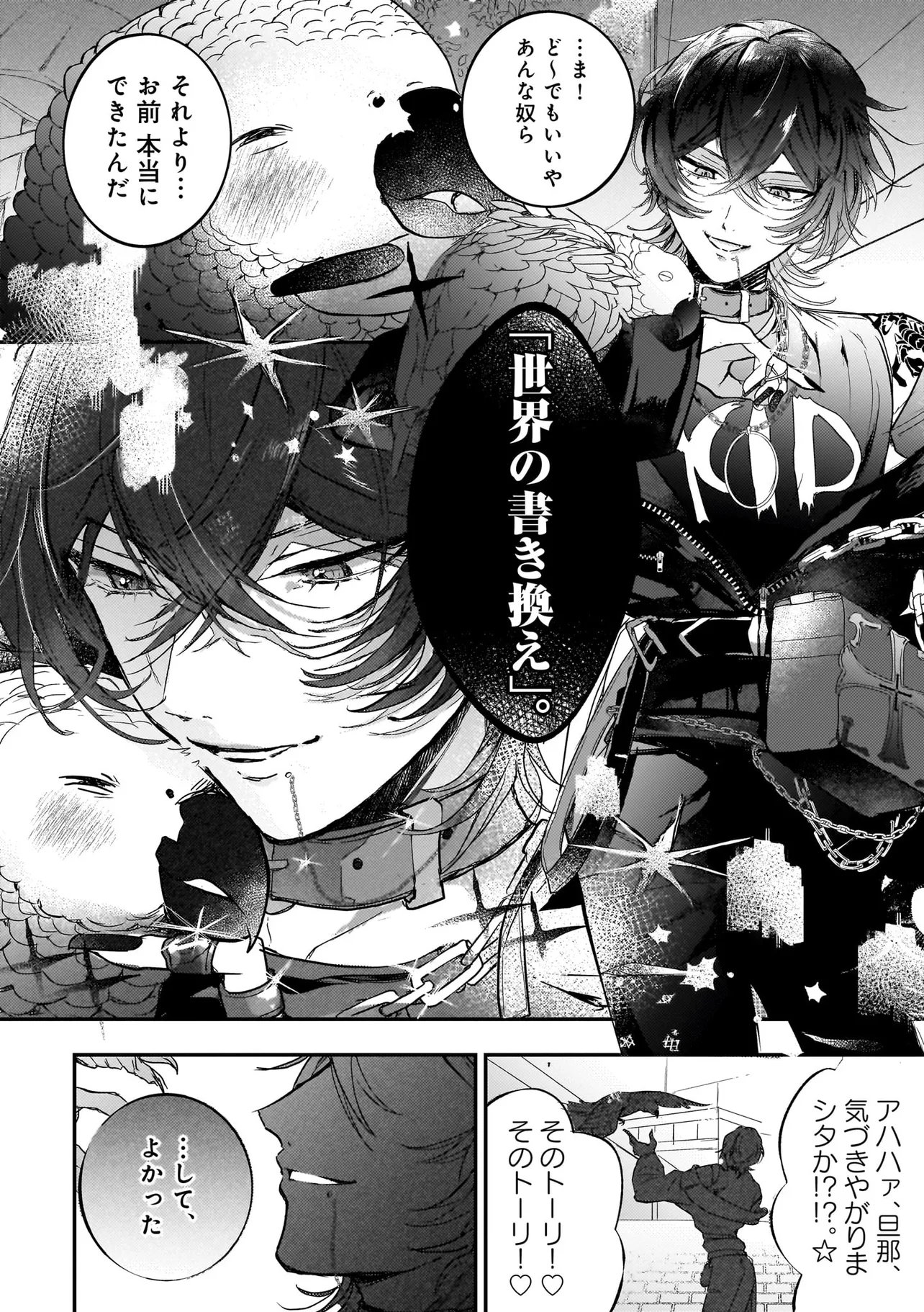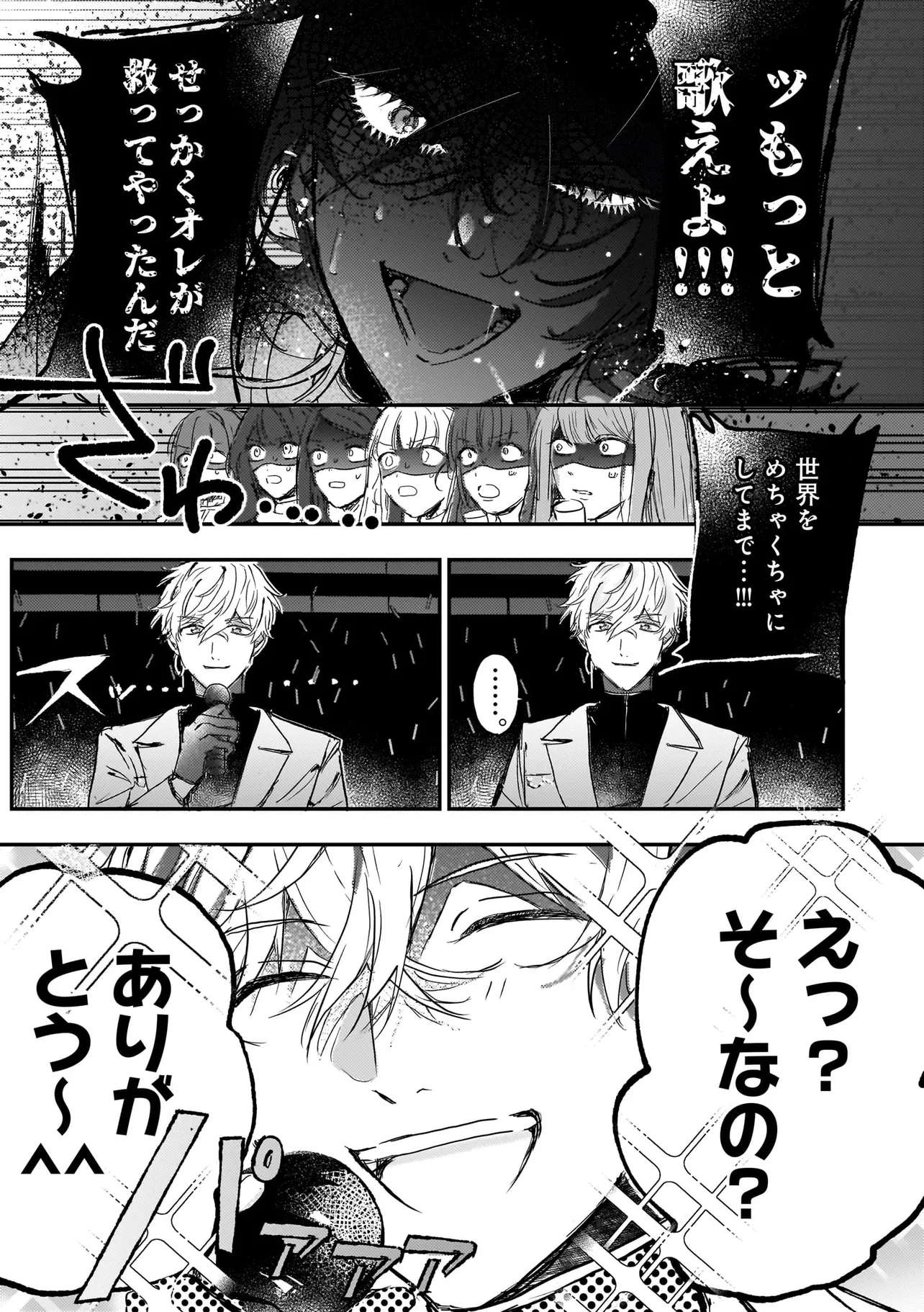 彼は肩に人語を話すオウムを乗せて「世界を書き換えて歌声を救った」と宣言。