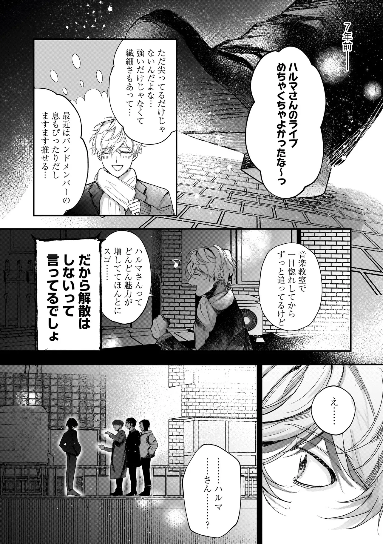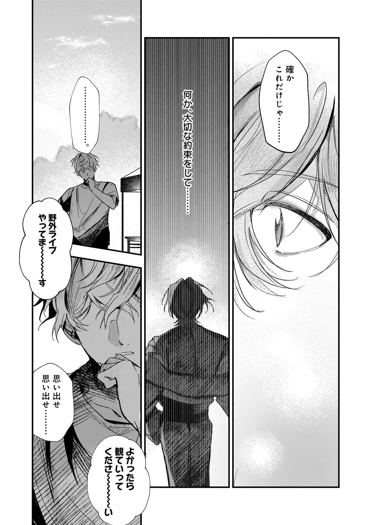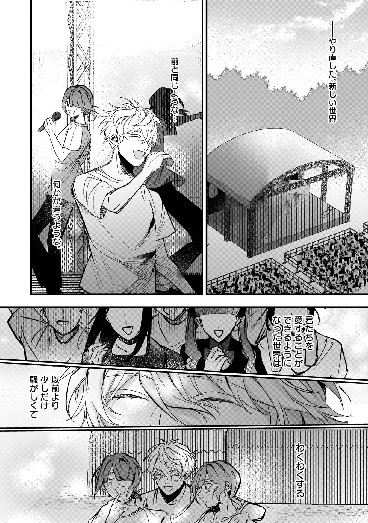 アイドルのコンサート中、ステージの上に突然降ってきた青年・ハルマ。 彼は肩に人語を話すオウムを乗せて「世界を書き換えて歌声を救った」と宣言。 そんな危険人物に怯えるどころか笑顔を向ける人気アイドル・うた。 「俺のこと好きって言わせてあげる」と何故かハルマに迫ってきて──!? 最低最悪の“推し”ラブに身を捧げる身勝手な男たちが、 最高のハッピーエンドへと疾走し、世界を破壊していく! 訳アリ人気アイドル×病み系元バンドマンのハチャメチャBLを召し上がれ。