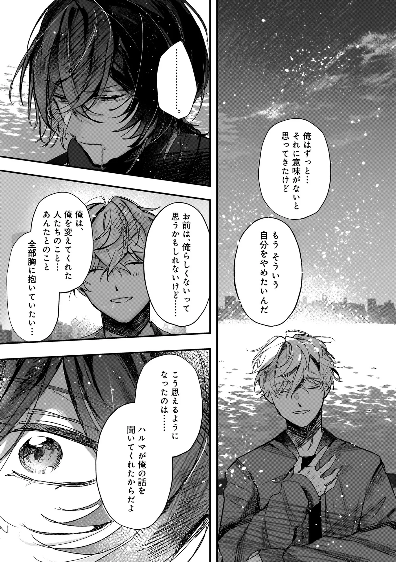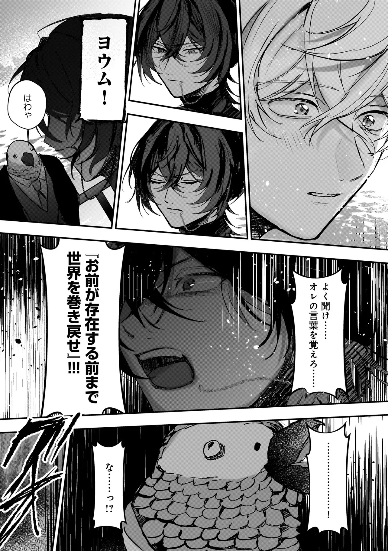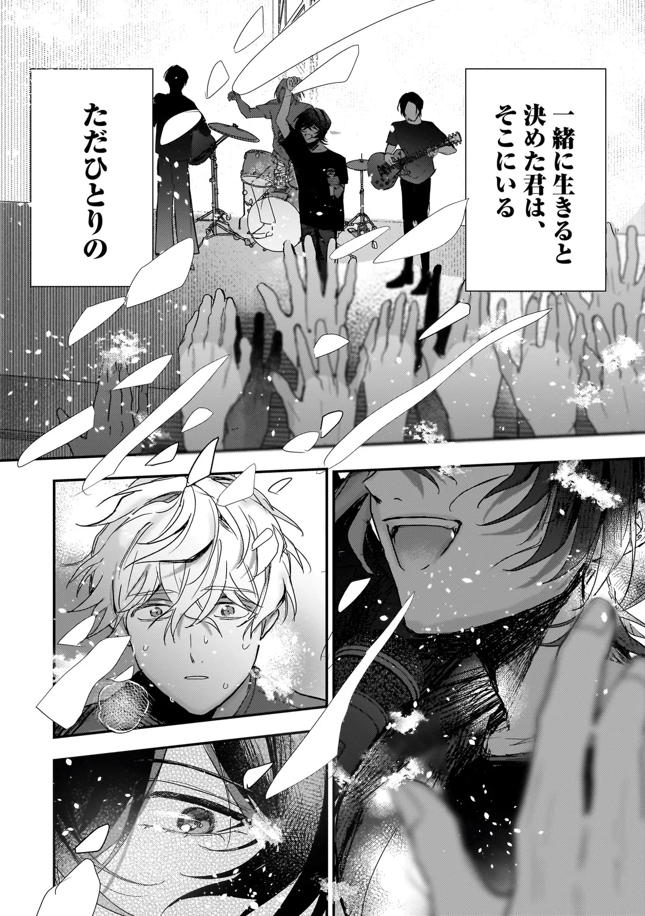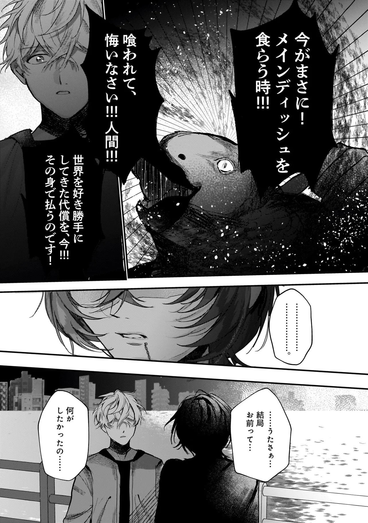 アイドルのコンサート中、ステージの上に突然降ってきた青年・ハルマ。 彼は肩に人語を話すオウムを乗せて「世界を書き換えて歌声を救った」と宣言。 そんな危険人物に怯えるどころか笑顔を向ける人気アイドル・うた。 「俺のこと好きって言わせてあげる」と何故かハルマに迫ってきて──!? 最低最悪の“推し”ラブに身を捧げる身勝手な男たちが、 最高のハッピーエンドへと疾走し、世界を破壊していく! 訳アリ人気アイドル×病み系元バンドマンのハチャメチャBLを召し上がれ。