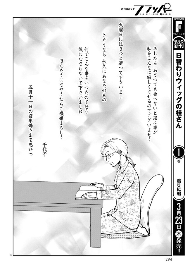 はなものがたり 第12話 はなものがたり 投稿者 admin - 3年 前に 幸せな読書漫画 はなものがたり 第12話 , いいねと共有ボタンをクリックすることを忘れないでください. Manga はなものがたり 常に更新されます 無料コミック Comic Top. 他のマンガの更新を読むことを忘れないでください。 マンガコレクションのリスト 無料コミック Comic Top マンガリストメニューにあります. お友達と共有しましょう! Facebook Twitter Pinterest Whatsapp 前のエピソード すべての章 次のエピソード リスト ページング Loading.. 前のエピソード すべての章 次のエピソード リスト ページング お友達と共有しましょう! Facebook Twitter Pinterest Whatsapp お気に入りに追加に続く 1 人 はなものがたり Twitterで話題になった「美容に目覚めるおばあちゃんの百合漫画」が連載化! 長年連れ添った夫が亡くなった。ひとりになった毎日を彩り豊かな日々にできるのは、自分だけ――。 schwinn(著者) メイク大人向け日常百合