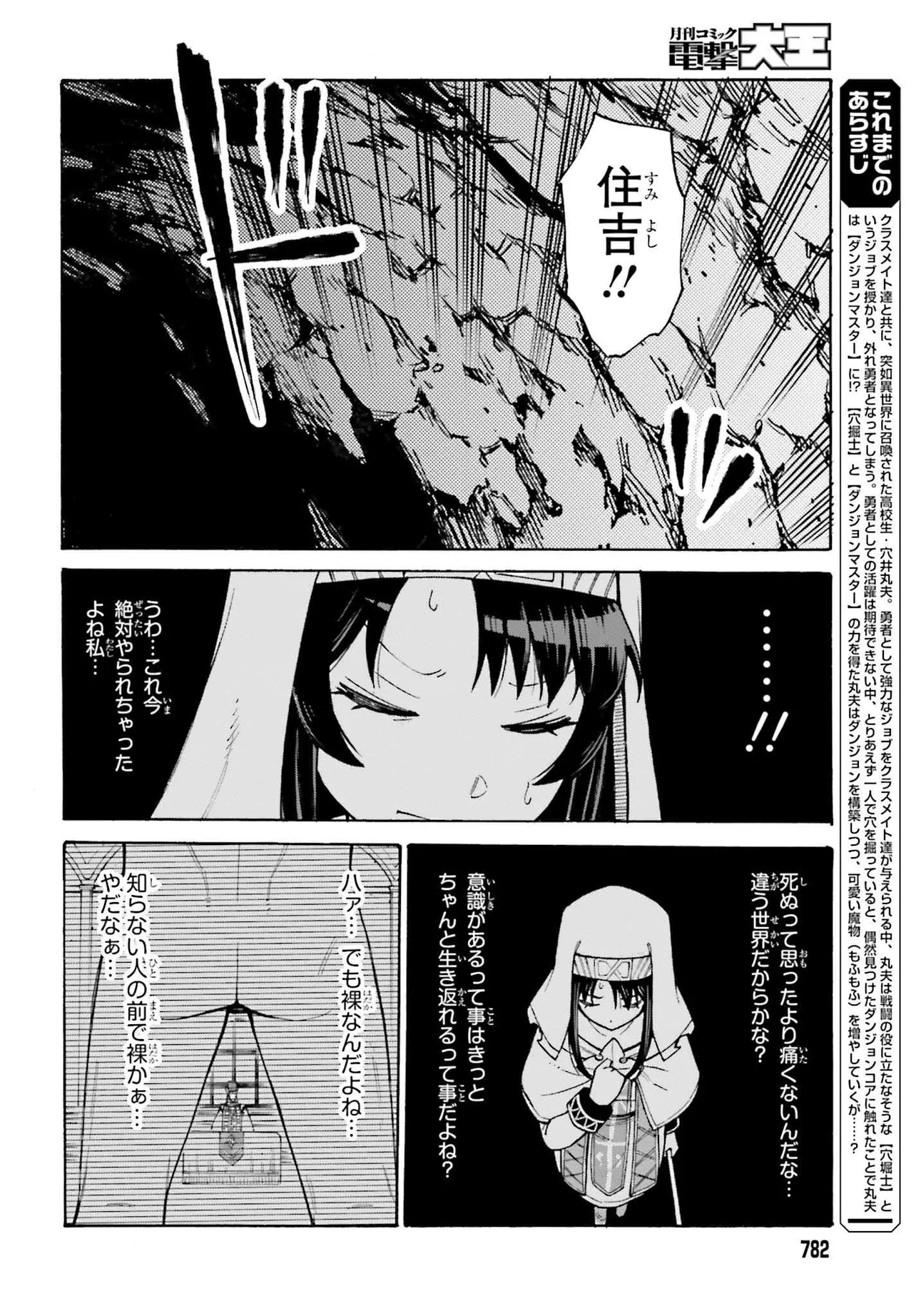 クラスメイト達と共に、突如異世界に召喚された高校生・穴井丸夫。クラスメイト達が勇者として強力なジョブを与えられる中、丸夫は戦闘の役に立たなそうな【穴堀士】というジョブを授かり、外れ勇者となってしまう。勇者としての活躍は期待できない中、とりあえず一人で穴を掘っていると、偶然見つけたダンジョンコアに触れたことで丸夫は【ダンジョンマスター】に!? 【穴掘士】と【ダンジョンマスター】の力を得た丸夫はダンジョンを構築しつつ、可愛い魔物(もふもふ)を量産し、ただただダンジョン生活を満喫しようと思っていたが、いつしかダンジョンが大いに危険視されることになり……?