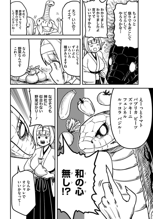 エルフの老神ミヅハは、蛇神様を祀る神社の巫女を務めている。自由奔放で俗っぽい神様に、彼女はいつも振り回されていて――。 『トカゲ爆発しろ』のokamuraが送る、凹凸コンビの異種族コメディ・開幕!!