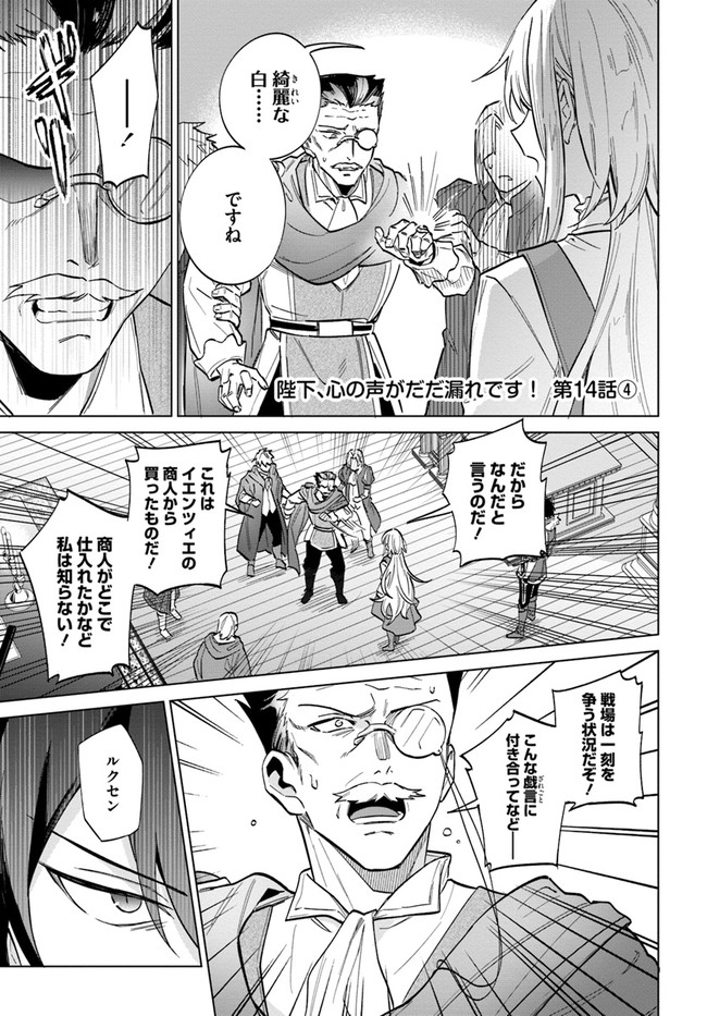 陛下、心の声がだだ漏れです! 第14話-4 陛下、心の声がだだ漏れです! 投稿者 admin - 3年 前に 幸せな読書漫画 陛下、心の声がだだ漏れです! 第14話-4 , いいねと共有ボタンをクリックすることを忘れないでください. Manga 陛下、心の声がだだ漏れです! 常に更新されます 無料コミック Comic Top. 他のマンガの更新を読むことを忘れないでください。 マンガコレクションのリスト 無料コミック Comic Top マンガリストメニューにあります. お友達と共有しましょう! Facebook Twitter Pinterest Whatsapp 前のエピソード すべての章 次のエピソード リスト ページング Loading.. 前のエピソード すべての章 次のエピソード リスト ページング お友達と共有しましょう! Facebook Twitter Pinterest Whatsapp お気に入りに追加に続く 28 人 陛下、心の声がだだ漏れです! ティジジは、ヴェルシアの北の権力を統治する不遜な皇帝ガイゼルの女王になるようになりました。 冷たさで「氷の皇帝」になるのではないかと恐れられているガイゼルの前で、ティッツィーの心に流れ込んだのは彼女の「本音」であり、孤独な皇帝には驚きすぎた-!? 政治的な結婚から始まる恥ずかしくて赤面する超甘いファンタジーラブコメディ!! シロヒ(原作)みまさか(漫画)雲屋ゆきお(キャラクター原案) Flos Comicforgirlsコミカライズビーズログ文庫ファンタジーフロースコミック女性向け恋愛