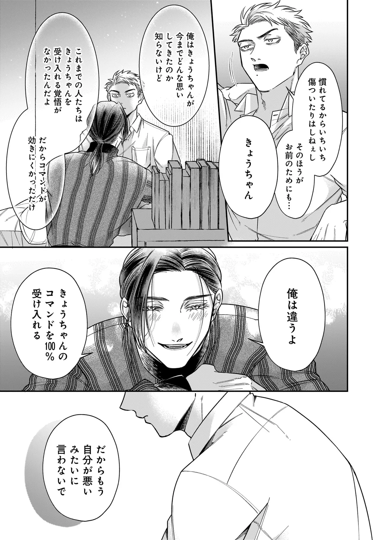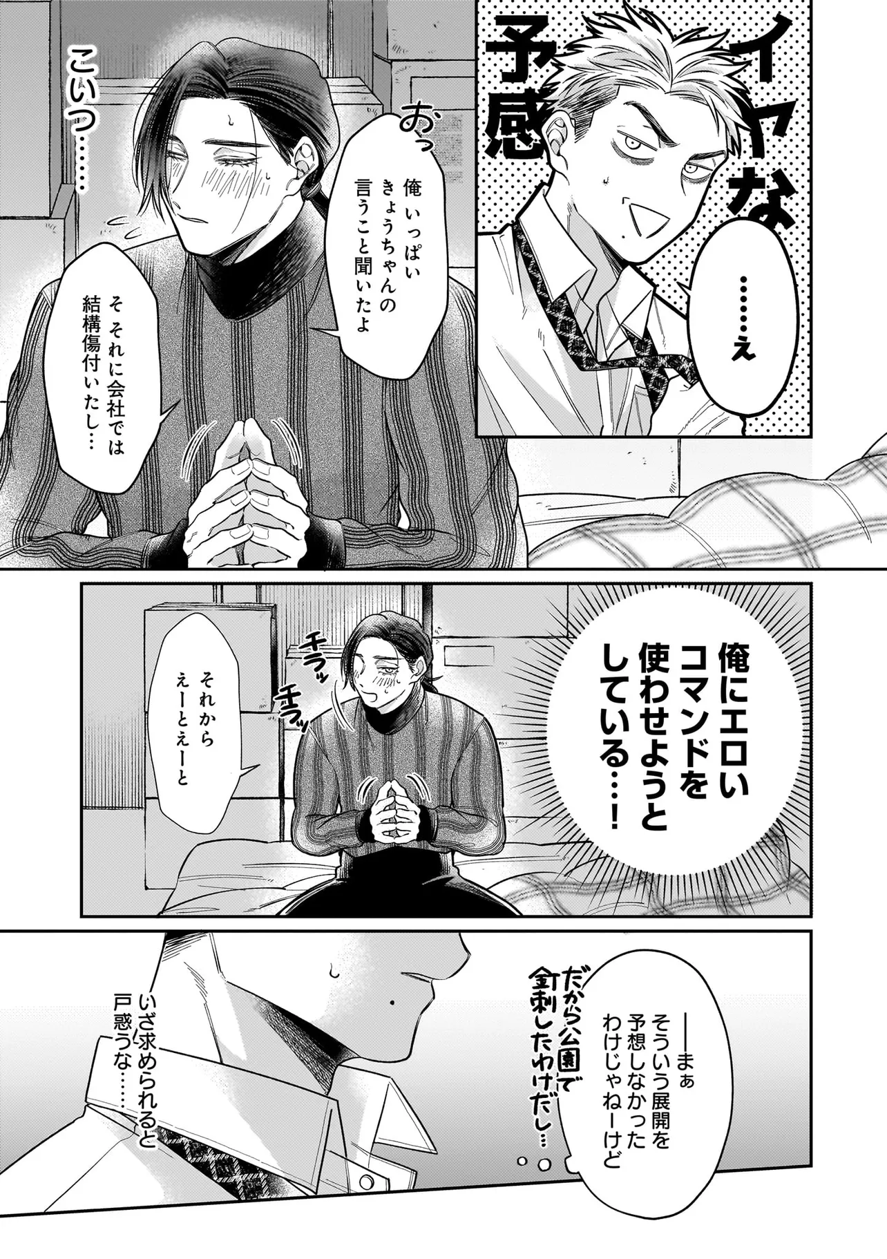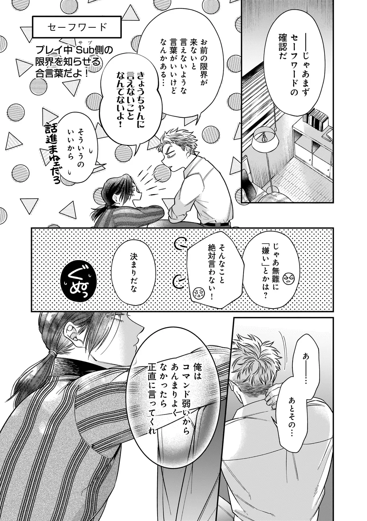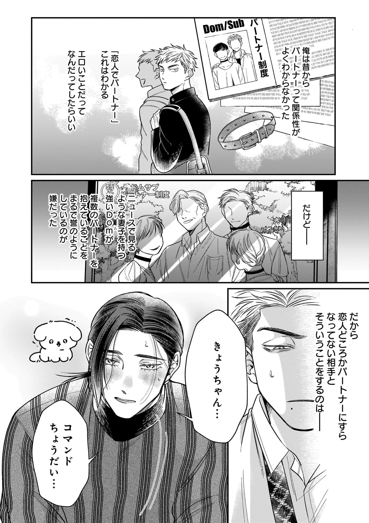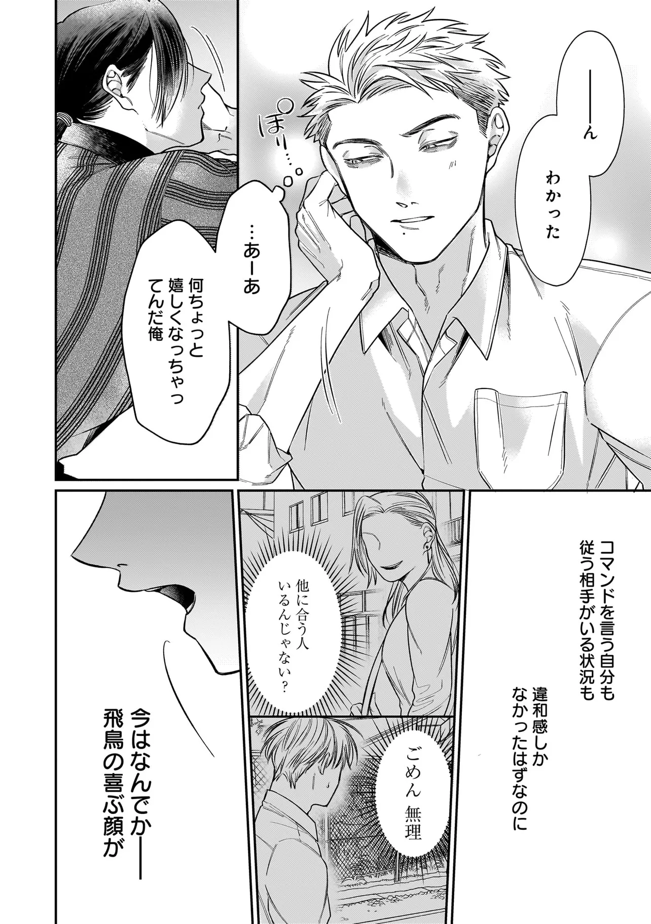 出版社で働く吉野京一は学生時代に目覚めたDom性に馴染めず、満たされない日々を送っていた。 そんな中、職場に現れた新進気鋭の漫画家・真木野アイスに突然抱きつかれて――!? 京一を愛称で呼ぶその泣き顔に遠い記憶が蘇る。 「あ、飛鳥…?」 彼は幼い頃共に過ごした幼馴染・真木飛鳥だった。 再会早々、「きょうちゃんのためならなんでもする!」と迫りくる飛鳥に混乱した京一は、 ついコマンドを放ってしまい――!? ちょぴり様子のおかしな美形(Sub)×キレおかん(Dom)のDom/SubラブコメBL 開幕!