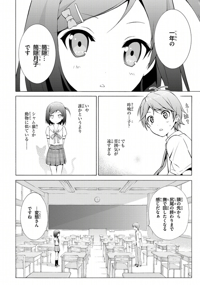 横寺陽人は頭の中身が煩悩まみれな高校二年生。ひょんなことで“笑わない猫像”に祈ったら、心で思ったことが垂れ流し状態に! そんな人生大ピンチを救ってくれたのは、可愛くてクールな無表情娘・筒隠月子だった。爽やか変態×冷ややか少女の青春迷走ラブコメ。TVアニメ化もされた大ヒットライトノベルコミカライズ
