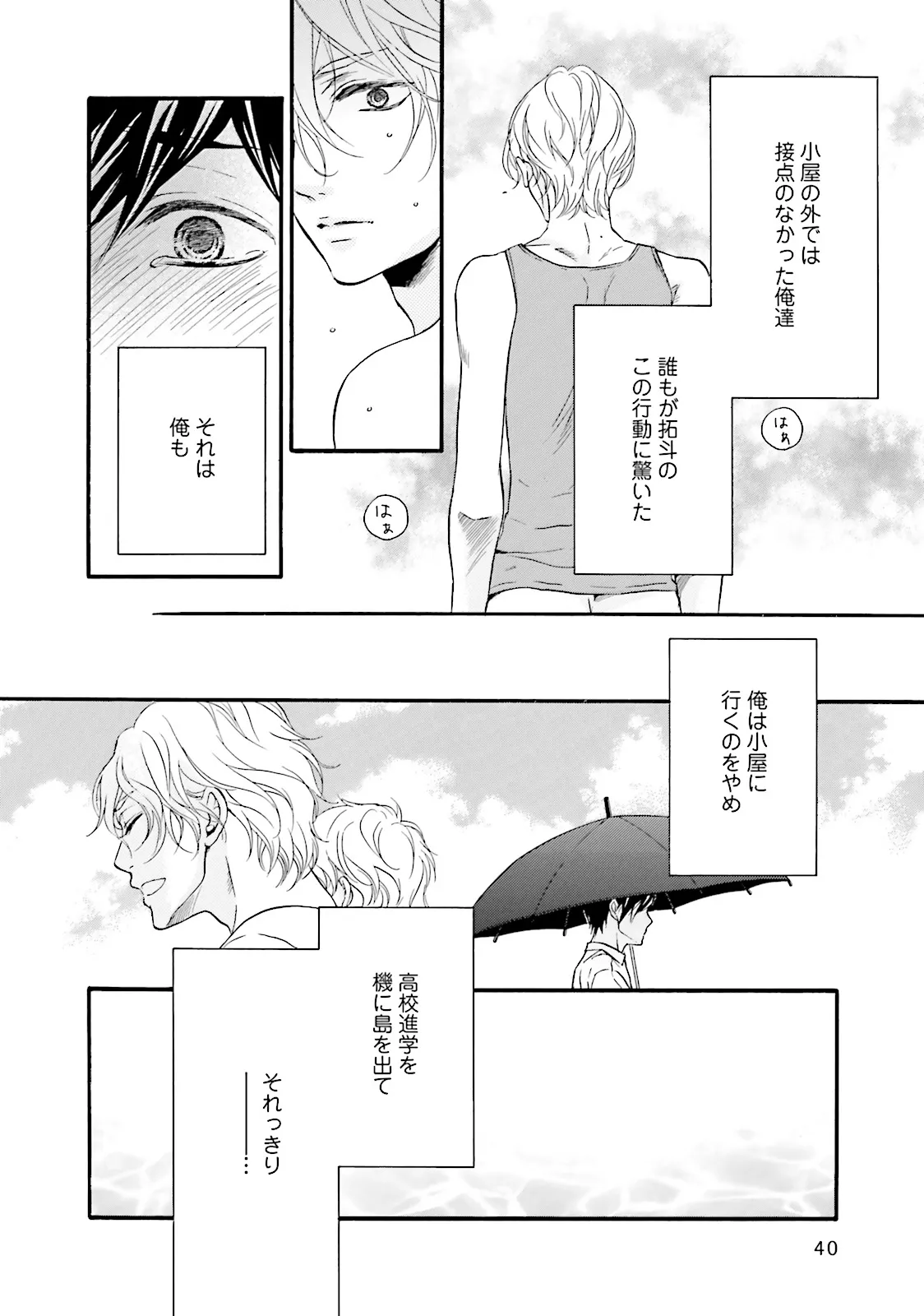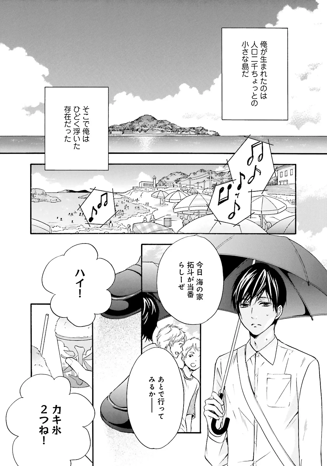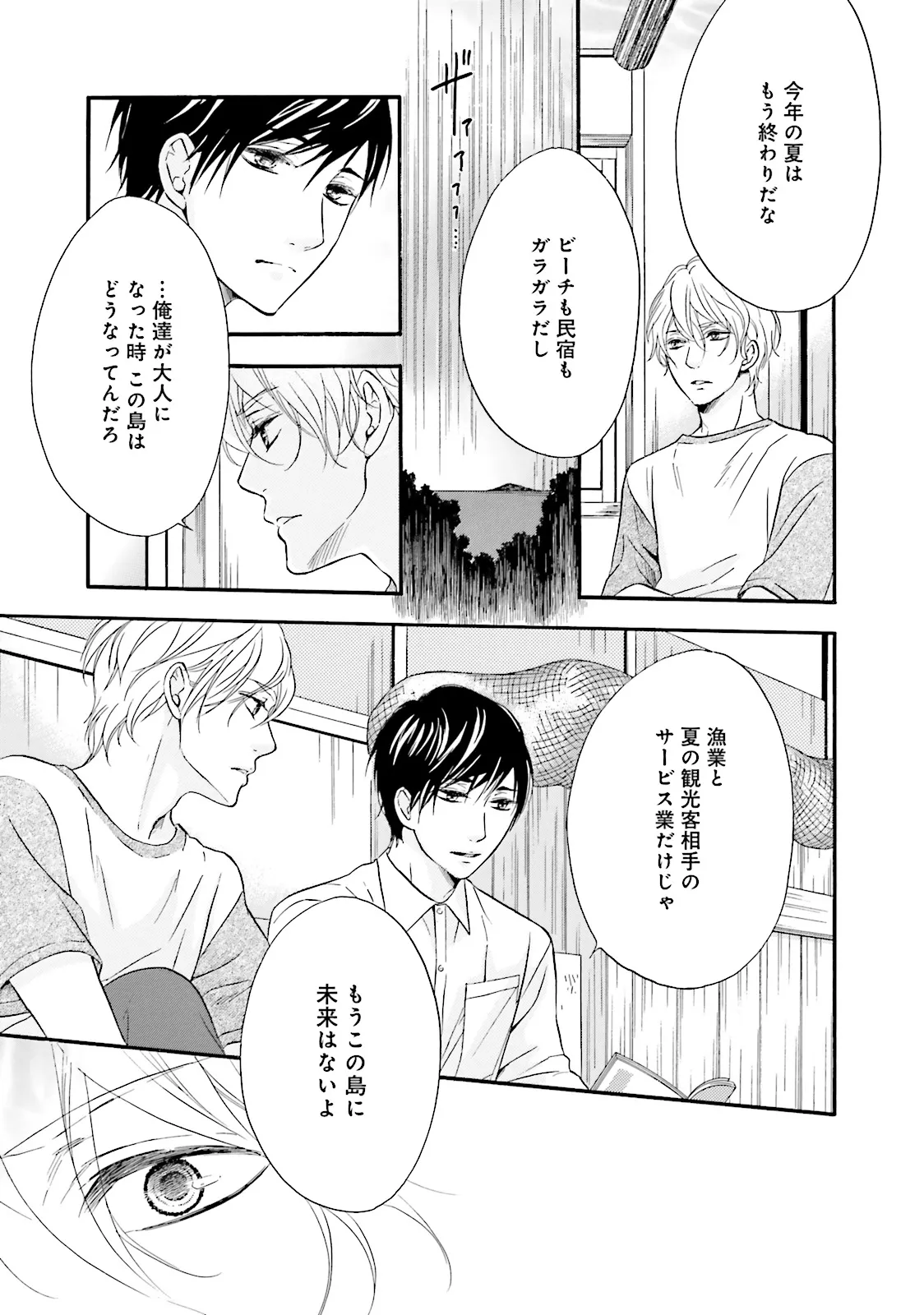 小さな島に住む漁師の息子として生まれた寛也は、父の期待に反して生まれつき体が弱く、日光アレルギーだった。島民の粗暴な言動、観光客で賑わうビーチ、大音量で流れるFMラジオ……寛也は島から自分が拒否されているように感じていた。しかし、一方で、小麦色に焼けた同級生に憧れてもいた。特に、磯崎拓斗には──。「どうして俺はこんなに歪に生まれたんだろう」後ろ暗い欲望を隠し、島を出て15年。町おこしを企画するベンチャー企業を立ち上げた寛也の元に、一本の電話が入る。それは、忘れたくても忘れられない、初恋の男・拓斗の声だった。