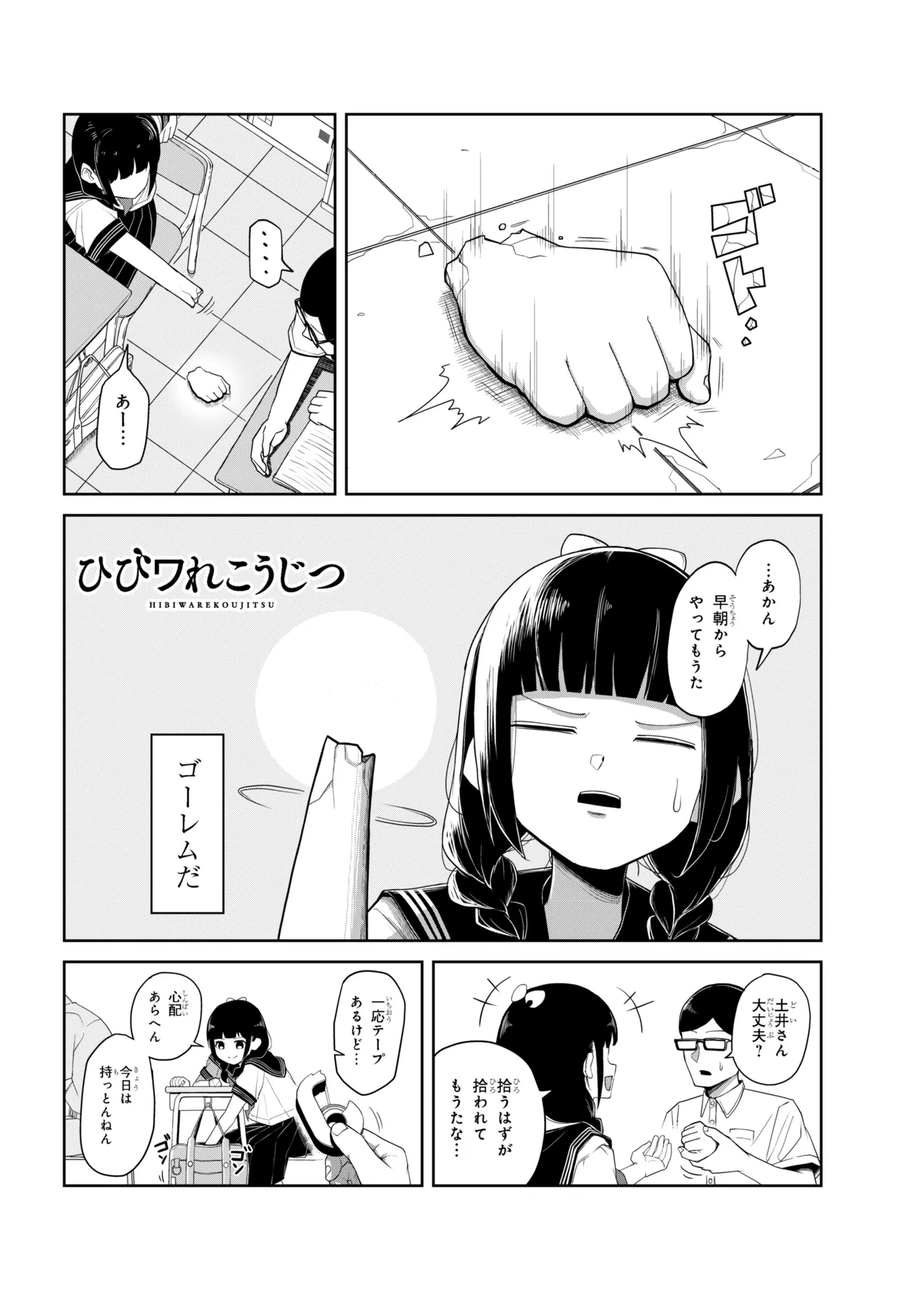 ひびワれこうじつ 第1話 ひびワれこうじつ 投稿者 admin - 5か月 前に 幸せな読書漫画 ひびワれこうじつ 第1話 , いいねと共有ボタンをクリックすることを忘れないでください. Manga ひびワれこうじつ 常に更新されます 無料コミック Comic Top. 他のマンガの更新を読むことを忘れないでください。 マンガコレクションのリスト 無料コミック Comic Top マンガリストメニューにあります. お友達と共有しましょう! Facebook Twitter Pinterest Whatsapp 前のエピソード すべての章 次のエピソード リスト ページング Loading.. 前のエピソード すべての章 次のエピソード リスト ページング お友達と共有しましょう! Facebook Twitter Pinterest Whatsapp お気に入りに追加に続く 0 人 ひびワれこうじつ 高校2年生の春。主人公・音無くんは、隣の席のクラスメイト・土井さんが気になっていた。 元気で明るくて、そしてゴーレムである彼女。 事あるごとに腕が取れたり、嬉しいと頭から花が咲いたり、照れると熱くなったりと、彼女への興味が尽きない日々。 ラブコメかと言われるとそれほどでもない、少しだけ変な2人が送るシュールコメディのはじまりはじまり。 ぺろぽねそす ギャップ女子クセになるほのぼのモンスター人外女子高校生(JK)学園モノ日常系現代異能力笑える高校生