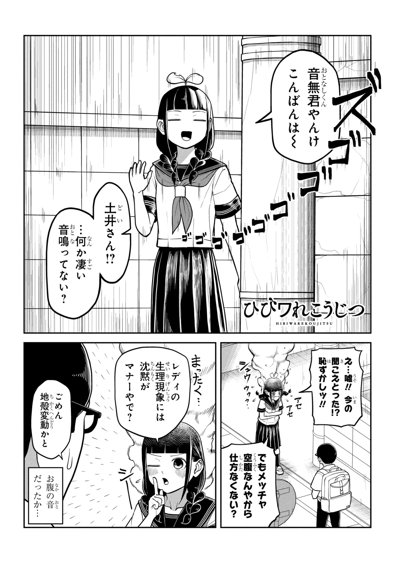 ひびワれこうじつ 第9話 ひびワれこうじつ 投稿者 admin - 1か月 前に 幸せな読書漫画 ひびワれこうじつ 第9話 , いいねと共有ボタンをクリックすることを忘れないでください. Manga ひびワれこうじつ 常に更新されます 無料コミック Comic Top. 他のマンガの更新を読むことを忘れないでください。 マンガコレクションのリスト 無料コミック Comic Top マンガリストメニューにあります. お友達と共有しましょう! Facebook Twitter Pinterest Whatsapp 前のエピソード すべての章 次のエピソード リスト ページング Loading.. 前のエピソード すべての章 次のエピソード リスト ページング お友達と共有しましょう! Facebook Twitter Pinterest Whatsapp お気に入りに追加に続く 0 人 ひびワれこうじつ 高校2年生の春。主人公・音無くんは、隣の席のクラスメイト・土井さんが気になっていた。 元気で明るくて、そしてゴーレムである彼女。 事あるごとに腕が取れたり、嬉しいと頭から花が咲いたり、照れると熱くなったりと、彼女への興味が尽きない日々。 ラブコメかと言われるとそれほどでもない、少しだけ変な2人が送るシュールコメディのはじまりはじまり。 ぺろぽねそす ギャップ女子クセになるほのぼのモンスター人外女子高校生(JK)学園モノ日常系現代異能力笑える高校生