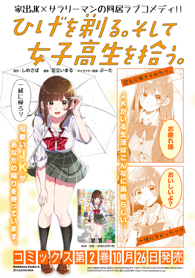 スピンオフコミック「ひげを剃る。そして女子高生を拾う。Each Stories」も連載中! https://seiga.nicovideo.jp/comic/52254
