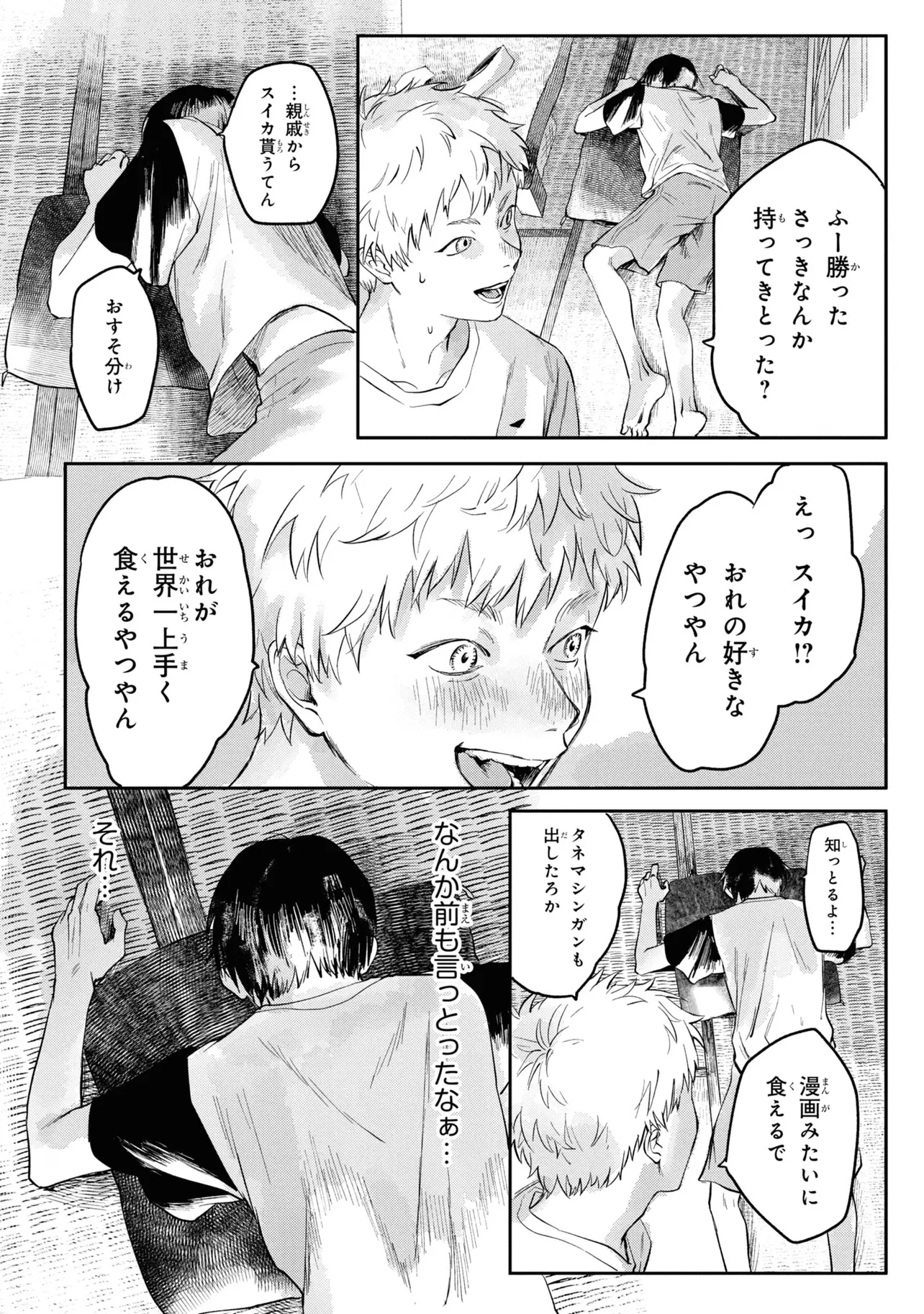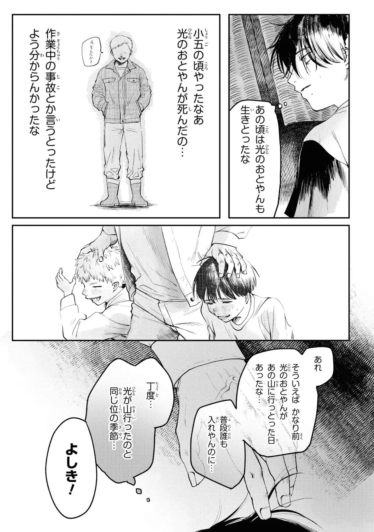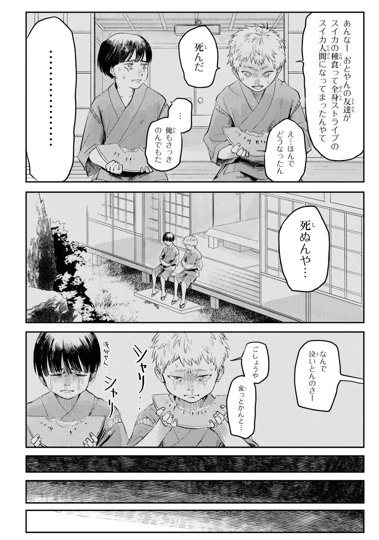 光が死んだ夏 第5話-2 光が死んだ夏 投稿者 admin - 3か月 前に 幸せな読書漫画 光が死んだ夏 第5話-2 , いいねと共有ボタンをクリックすることを忘れないでください. Manga 光が死んだ夏 常に更新されます 無料コミック Comic Top. 他のマンガの更新を読むことを忘れないでください。 マンガコレクションのリスト 無料コミック Comic Top マンガリストメニューにあります. お友達と共有しましょう! Facebook Twitter Pinterest Whatsapp 前のエピソード すべての章 次のエピソード リスト ページング Loading.. 前のエピソード すべての章 次のエピソード リスト ページング お友達と共有しましょう! Facebook Twitter Pinterest Whatsapp お気に入りに追加に続く 0 人 光が死んだ夏 ある集落で暮らす少年、よしきと光。同い年の2人はずっと一緒に育ってきた。しかしある日、よしきが光だと思っていたものは別のナニカにすり替わっていたことに確信を持ってしまう。それでも、一緒にいたい。友人の姿をしたナニカとの、いつも通りの日々が始まる。時を同じくして、集落では様々な事件が起こっていき――。新進気鋭の作家・モクモクれんが描く、未知のナニカへ堕ちていく運命の物語、開幕。 モクモクれん(著者) ノミネートホラー人外親友青春