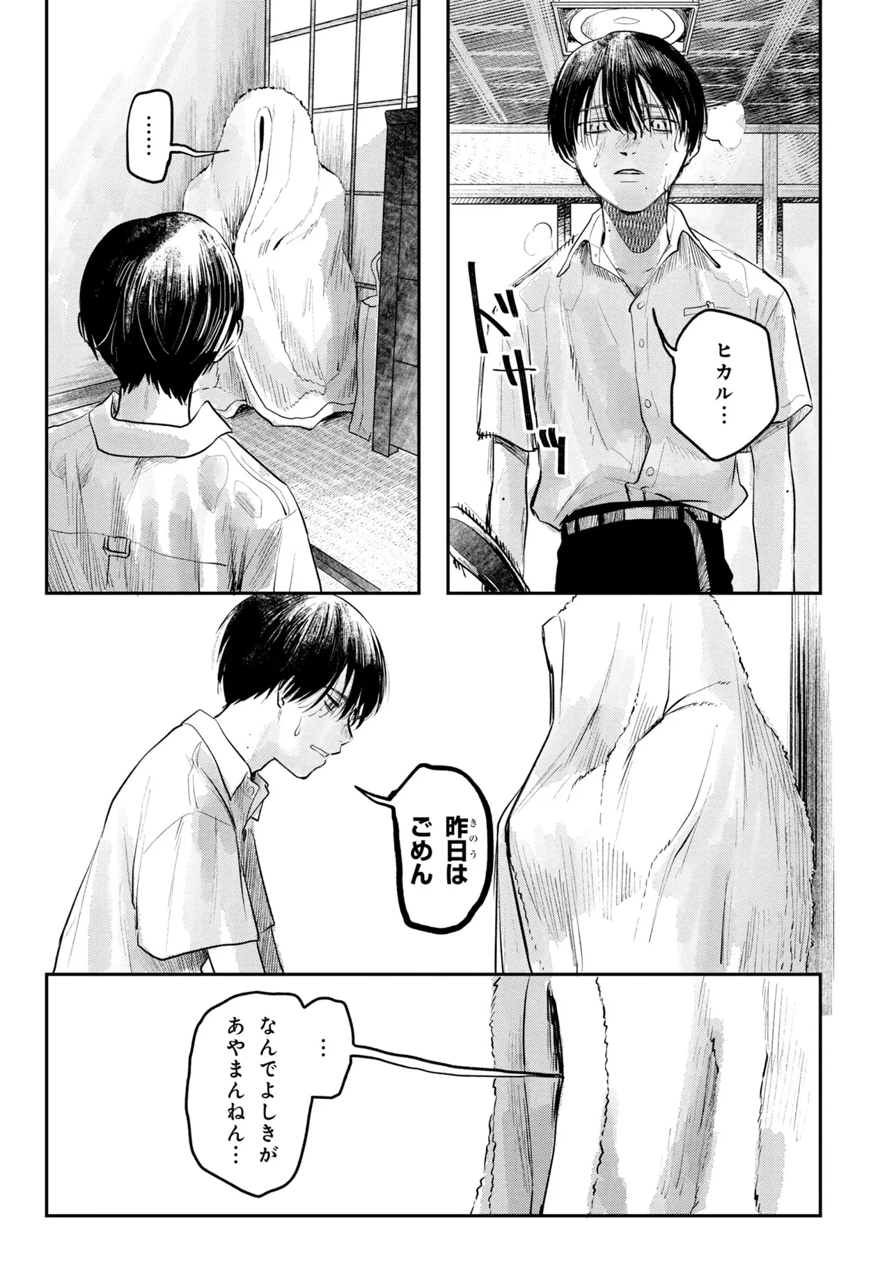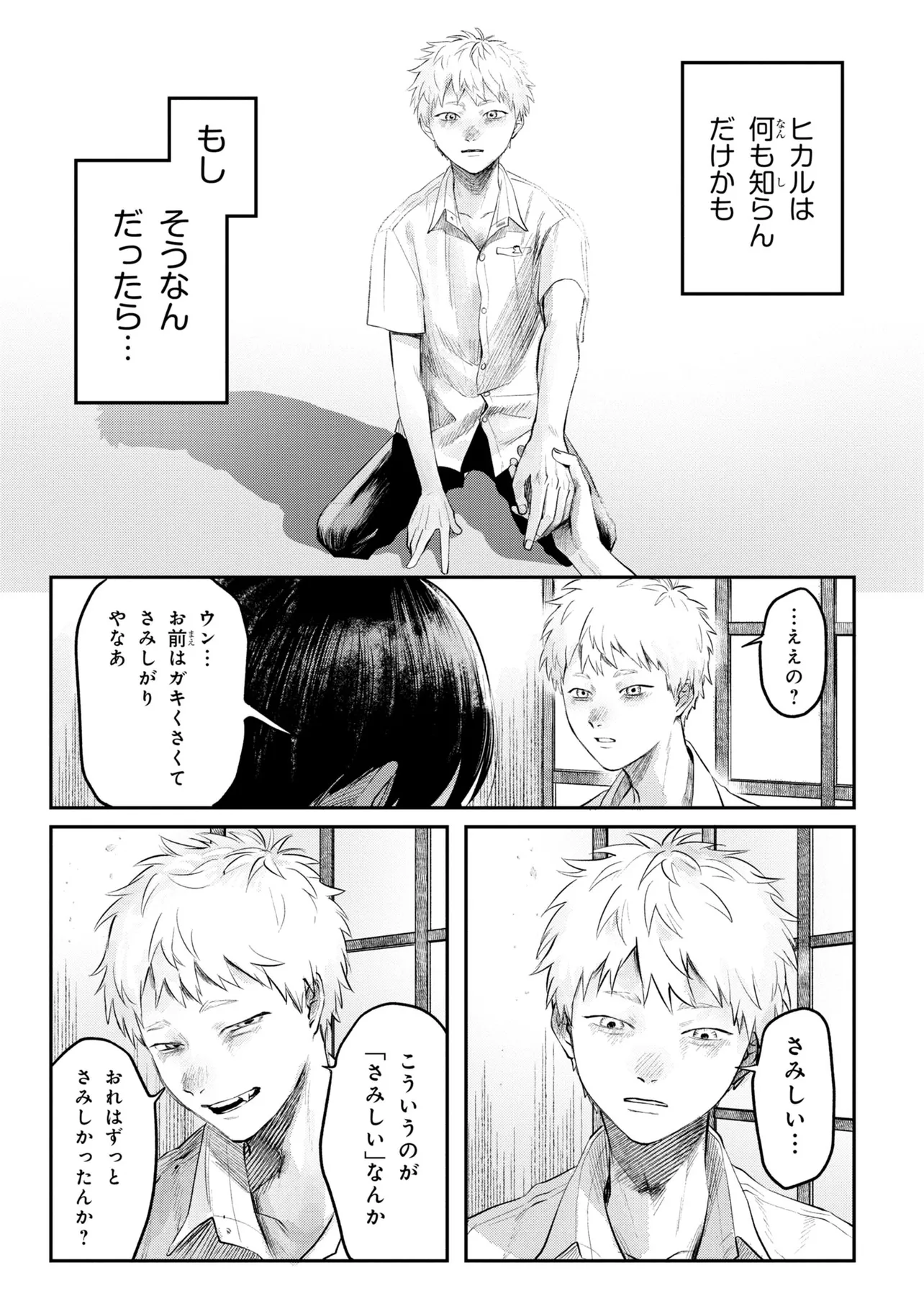 光が死んだ夏 第7話-4 光が死んだ夏 投稿者 admin - 3週間 前に 幸せな読書漫画 光が死んだ夏 第7話-4 , いいねと共有ボタンをクリックすることを忘れないでください. Manga 光が死んだ夏 常に更新されます 無料コミック Comic Top. 他のマンガの更新を読むことを忘れないでください。 マンガコレクションのリスト 無料コミック Comic Top マンガリストメニューにあります. お友達と共有しましょう! Facebook Twitter Pinterest Whatsapp 前のエピソード すべての章 次のエピソード リスト ページング Loading.. 前のエピソード すべての章 次のエピソード リスト ページング お友達と共有しましょう! Facebook Twitter Pinterest Whatsapp お気に入りに追加に続く 0 人 光が死んだ夏 ある集落で暮らす少年、よしきと光。同い年の2人はずっと一緒に育ってきた。しかしある日、よしきが光だと思っていたものは別のナニカにすり替わっていたことに確信を持ってしまう。それでも、一緒にいたい。友人の姿をしたナニカとの、いつも通りの日々が始まる。時を同じくして、集落では様々な事件が起こっていき――。新進気鋭の作家・モクモクれんが描く、未知のナニカへ堕ちていく運命の物語、開幕。 モクモクれん(著者) ノミネートホラー人外親友青春