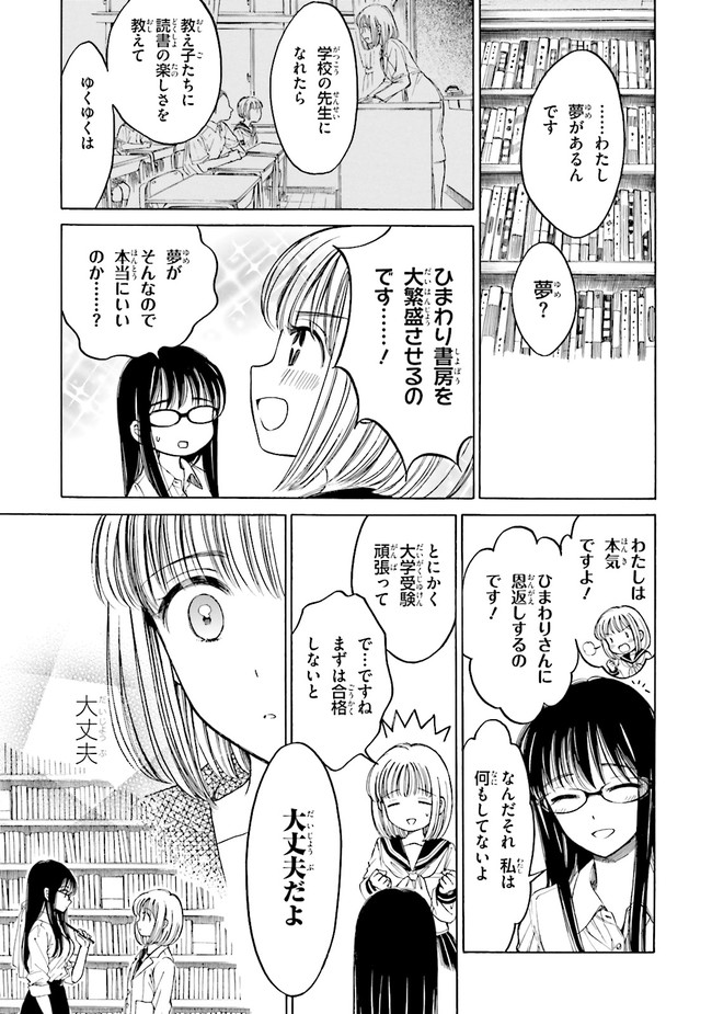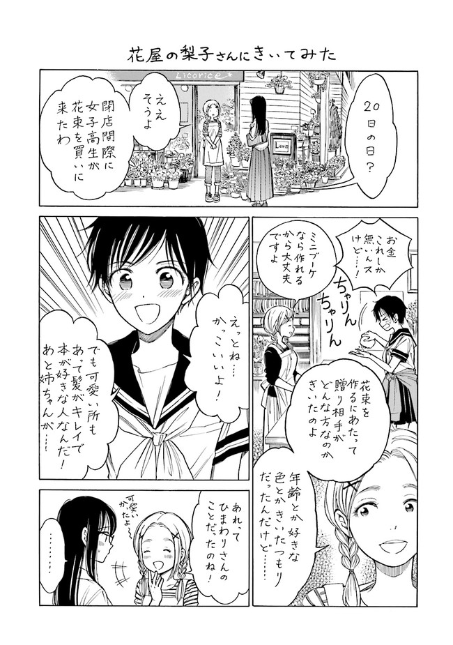 学校の前に建つ、古くて小さな本屋さん、ひまわりさんはこの店の店長さんです。本と本屋に集まる人々をめぐるハートフルストーリー。