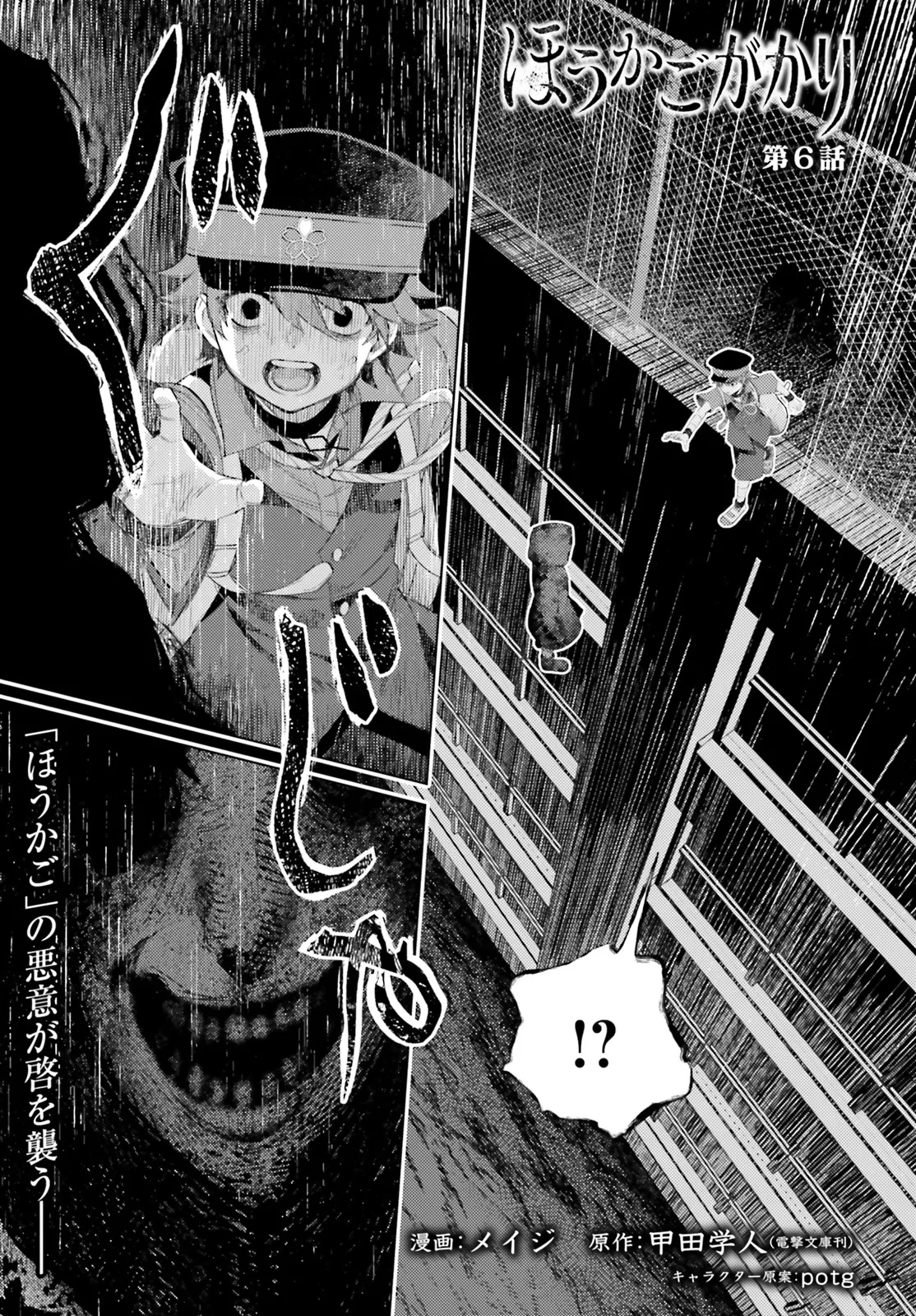 小学六年生の二森啓はある日、教室の黒板に突如として自分の名前が謎の係名と共に書き込まれているのを目撃する。 その日の深夜十二時、自室。学校のチャイムが鳴り響き、開いた襖の向こうには暗闇に囲まれた異次元の学校――「ほうかご」が広がっていた。 教室にはおぞましい怪異が跋扈し、校庭には無数の墓標が立ち並ぶ尋常ならざる空間に 啓は怪異の管理者にして観察者、「ほうかごがかり」の一人として招かれたという。 命がけの“観察”。6人の少年少女の恐怖と懊悩が「ほうかご」にこだまする。 鬼才・甲田学人が放つ“真夜中のメルヘン”、コミカライズ堂々開幕――