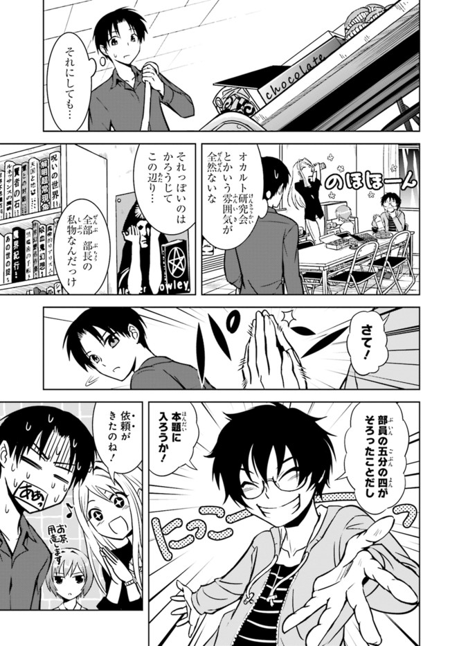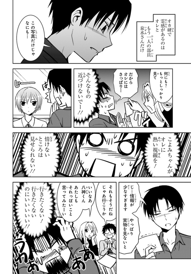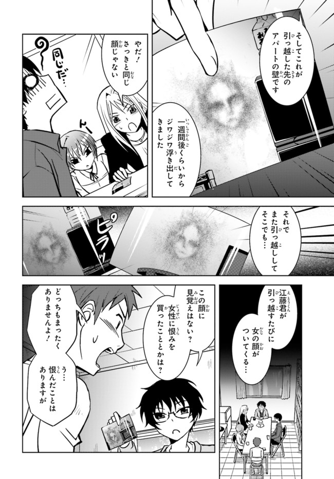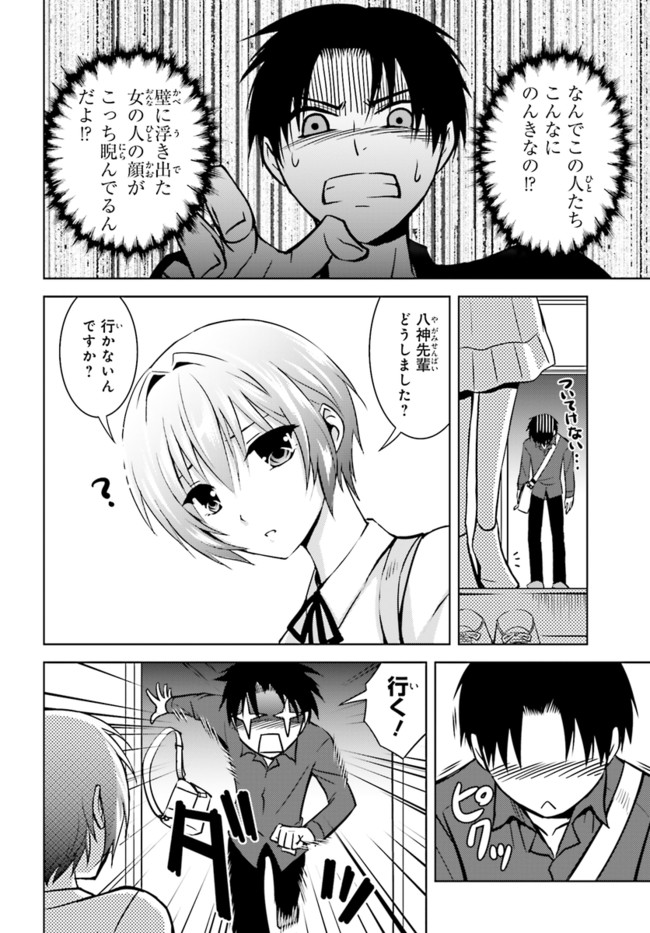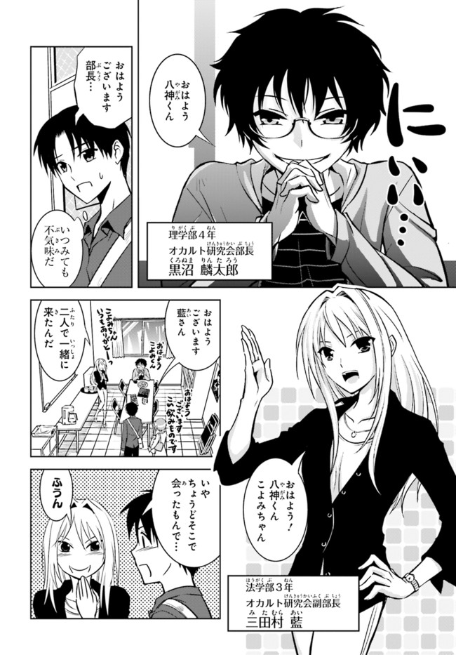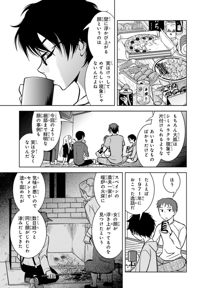 第19回日本ホラー小説賞読者賞受賞作をコミック化! 面白さお墨付きのオカルト青春物語、開幕! 八神森司は、幽霊が「見えてしまう」体質の大学生。片想いの美少女こよみのために、仕方なくオカルト研究会に属している。ある日オカ研に、女の顔の形の染みが、壁に浮き出るという悩みが寄せられ……。