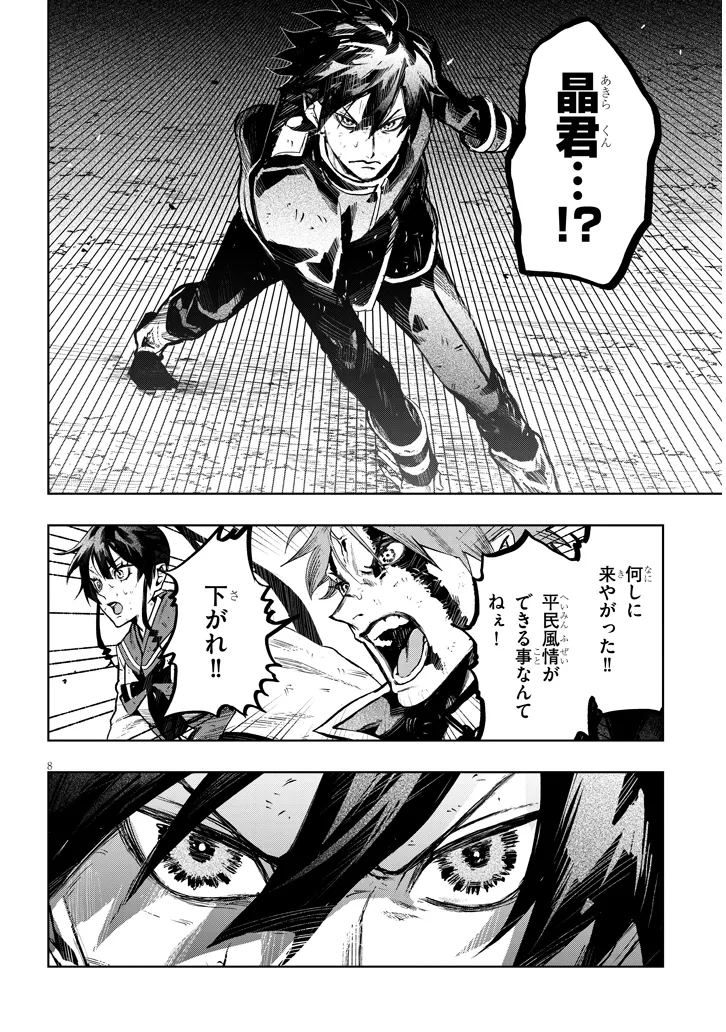 危険生物≪デーモン≫が蔓延る世界で、有馬赤は討伐隊員を養成する「防衛高校」への入学を目指していた。 ある夜、赤はトラブルに巻き込まれ謎の注射針を打ち込まれてしまう。 次の瞬間、赤は異形の姿となっていてーー!? 運命に立ち
