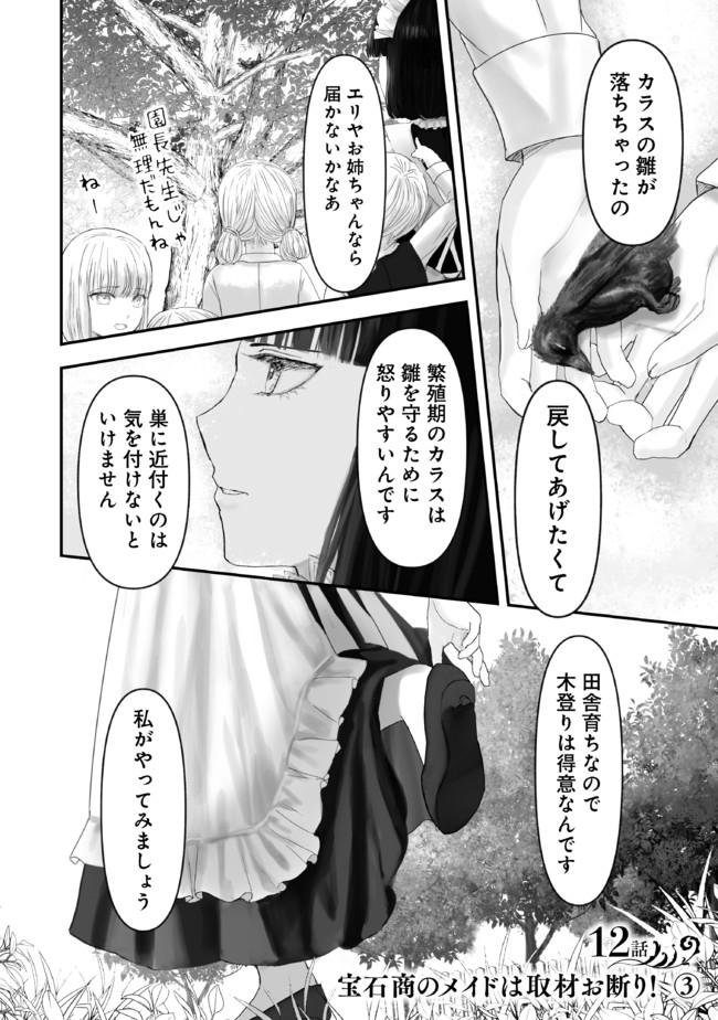 宝石商のメイド 12話 宝石商のメイドは取材お断り!③ 宝石商のメイド 投稿者 admin - 3年 前に 幸せな読書漫画 宝石商のメイド 12話 宝石商のメイドは取材お断り!③ , いいねと共有ボタンをクリックすることを忘れないでください. Manga 宝石商のメイド 常に更新されます 無料コミック Comic Top. 他のマンガの更新を読むことを忘れないでください。 マンガコレクションのリスト 無料コミック Comic Top マンガリストメニューにあります. お友達と共有しましょう! Facebook Twitter Pinterest Whatsapp 前のエピソード すべての章 次のエピソード リスト ページング Loading.. 前のエピソード すべての章 次のエピソード リスト ページング お友達と共有しましょう! Facebook Twitter Pinterest Whatsapp お気に入りに追加に続く 1 人 宝石商のメイド 宝石商「ローシュタイン」は“メイドが宝石を売る”一風変わった品揃えのお店。 大通りから外れたその店には、老紳士、貴族、女優、貧乏学生と噂を聞きつけたさまざまな人が訪れる。 メイドが選んだ宝石を手にしたとき、彼ら自身の人生もまた輝きだす。 宝石と人が紡ぐ物語。 ーー繊細なイラストで贈る珠玉の連作短編。 やませちか(著者) エプロンドレスおかっぱメイド宝石紅茶