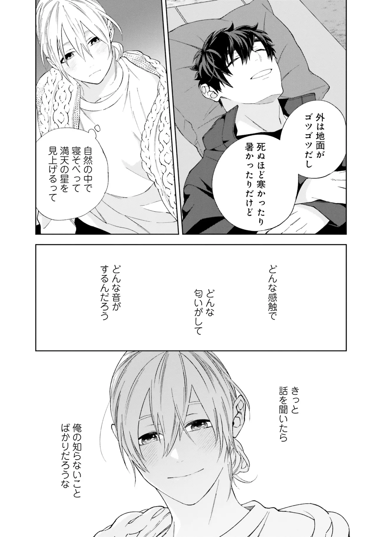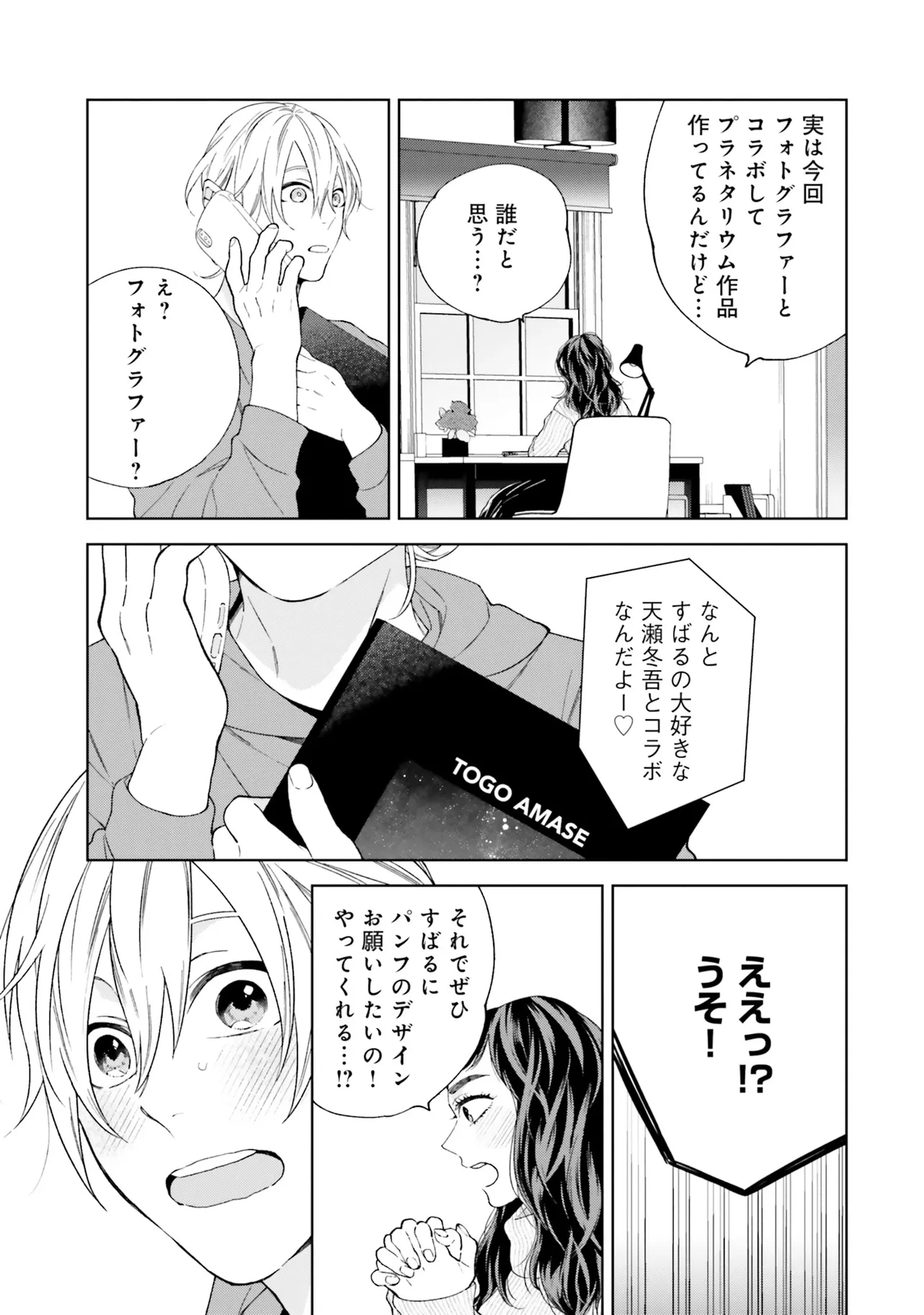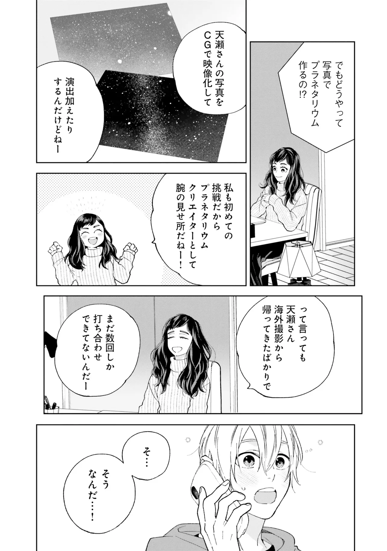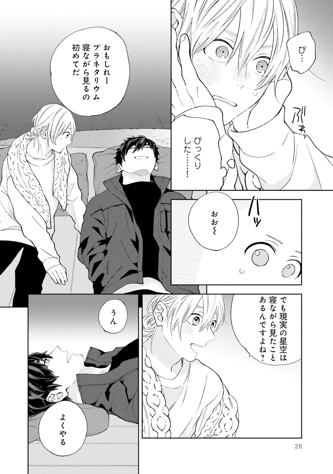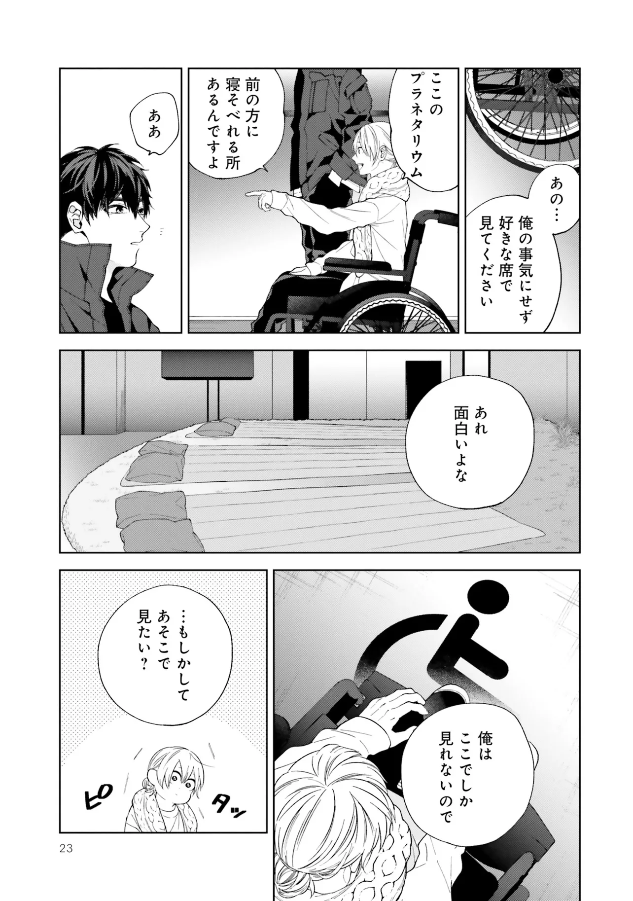 星空を見つめたそのあとで 1巻 第1話 星空を見つめたそのあとで 投稿者 admin - 1年 前に 幸せな読書漫画 星空を見つめたそのあとで 1巻 第1話 , いいねと共有ボタンをクリックすることを忘れないでください. Manga 星空を見つめたそのあとで 常に更新されます 無料コミック Comic Top. 他のマンガの更新を読むことを忘れないでください。 マンガコレクションのリスト 無料コミック Comic Top マンガリストメニューにあります. お友達と共有しましょう! Facebook Twitter Pinterest Whatsapp 前のエピソード すべての章 次のエピソード リスト ページング Loading.. 前のエピソード すべての章 次のエピソード リスト ページング お友達と共有しましょう! Facebook Twitter Pinterest Whatsapp お気に入りに追加に続く 1 人 星空を見つめたそのあとで デザイナーの宮沢すばるは、プラネタリウムクリエイターの友人を通して、憧れの星空専門のフォトグラファー・天瀬冬吾の関わるプラネタリウムのパンフレットを作成することに。 プラネタリウムの試写の当日、そこで出会ったのは――。 フォトグラファー×車いすのデザイナーのピュアBL☆ 季田ビスコ(著者) forgirlsピュア寡黙攻め男の子の事情身体障害黒髪攻め