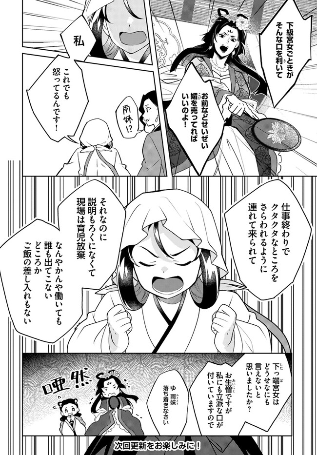 百花宮のお掃除係 21-③話 百花宮のお掃除係 投稿者 admin - 3年 前に 幸せな読書漫画 百花宮のお掃除係 21-③話 , いいねと共有ボタンをクリックすることを忘れないでください. Manga 百花宮のお掃除係 常に更新されます 無料コミック Comic Top. 他のマンガの更新を読むことを忘れないでください。 マンガコレクションのリスト 無料コミック Comic Top マンガリストメニューにあります. お友達と共有しましょう! Facebook Twitter Pinterest Whatsapp 前のエピソード すべての章 次のエピソード リスト ページング Loading.. 前のエピソード すべての章 次のエピソード リスト ページング お友達と共有しましょう! Facebook Twitter Pinterest Whatsapp お気に入りに追加に続く 2 人 百花宮のお掃除係 看護師だった前世の記憶をもったまま中華風の異世界に転生した雨妹。 貧しい田舎暮らしをしていたが、後宮へ宮仕えする機会が舞い込み、「中華ドラマで見たあの煌びやかで泥沼な世界が体験できる!」と期待に胸を膨らませて辿り着いた後宮では、とある噂が飛び交っており……。 新米宮女、後宮のトラブルも呪いも人間関係も、医療チートで全部解決しちゃいます!! shoyu(漫画)しのとうこ(キャラクター原案)黒辺あゆみ(原作) カドカワBOOKSコミカライズなろう系フロースフロースコミック中華ファンタジー小説家になろう後宮