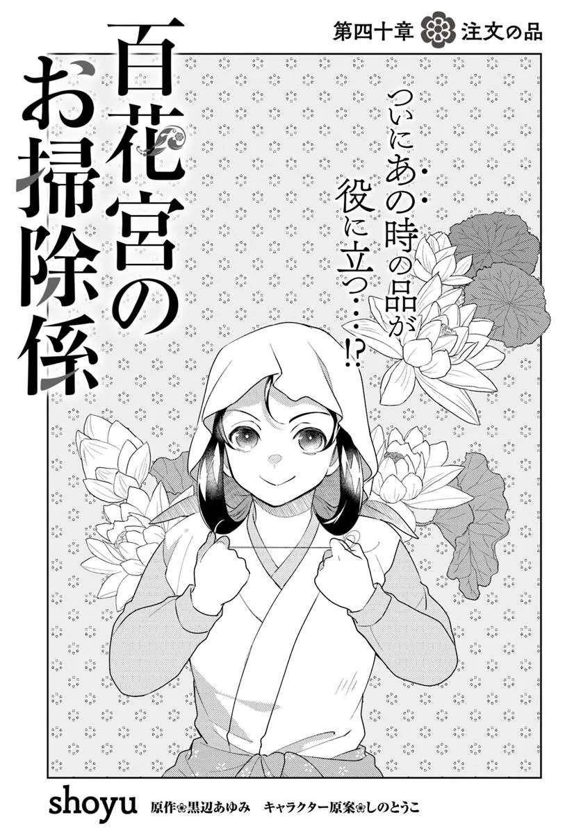 百花宮のお掃除係 40-①話 百花宮のお掃除係 投稿者 admin - 5か月 前に 幸せな読書漫画 百花宮のお掃除係 40-①話 , いいねと共有ボタンをクリックすることを忘れないでください. Manga 百花宮のお掃除係 常に更新されます 無料コミック Comic Top. 他のマンガの更新を読むことを忘れないでください。 マンガコレクションのリスト 無料コミック Comic Top マンガリストメニューにあります. お友達と共有しましょう! Facebook Twitter Pinterest Whatsapp 前のエピソード すべての章 次のエピソード リスト ページング Loading.. 前のエピソード すべての章 次のエピソード リスト ページング お友達と共有しましょう! Facebook Twitter Pinterest Whatsapp お気に入りに追加に続く 2 人 百花宮のお掃除係 看護師だった前世の記憶をもったまま中華風の異世界に転生した雨妹。 貧しい田舎暮らしをしていたが、後宮へ宮仕えする機会が舞い込み、「中華ドラマで見たあの煌びやかで泥沼な世界が体験できる!」と期待に胸を膨らませて辿り着いた後宮では、とある噂が飛び交っており……。 新米宮女、後宮のトラブルも呪いも人間関係も、医療チートで全部解決しちゃいます!! shoyu(漫画)しのとうこ(キャラクター原案)黒辺あゆみ(原作) カドカワBOOKSコミカライズなろう系フロースフロースコミック中華ファンタジー小説家になろう後宮