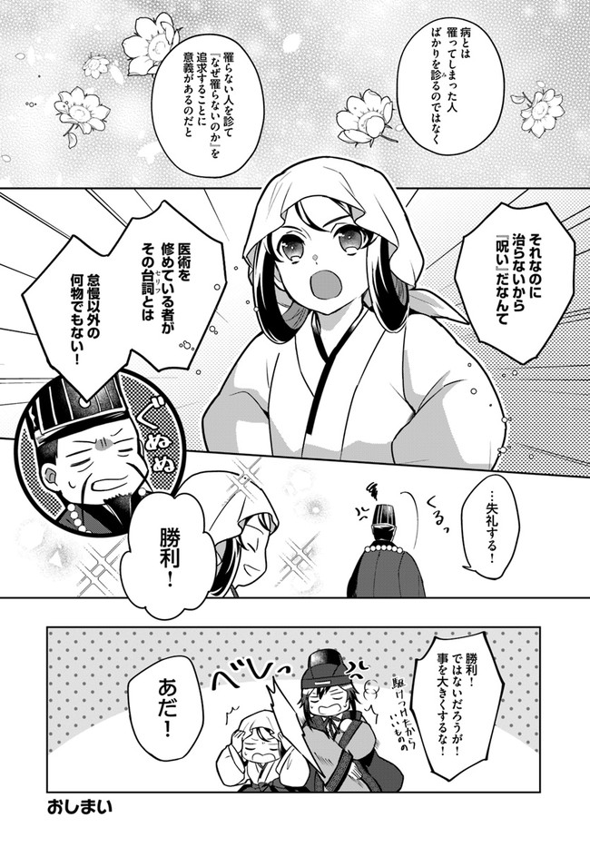 百花宮のお掃除係 番外編 百花宮のお掃除係 投稿者 admin - 4年 前に 幸せな読書漫画 百花宮のお掃除係 番外編 , いいねと共有ボタンをクリックすることを忘れないでください. Manga 百花宮のお掃除係 常に更新されます 無料コミック Comic Top. 他のマンガの更新を読むことを忘れないでください。 マンガコレクションのリスト 無料コミック Comic Top マンガリストメニューにあります. お友達と共有しましょう! Facebook Twitter Pinterest Whatsapp 前のエピソード すべての章 次のエピソード リスト ページング Loading.. 前のエピソード すべての章 次のエピソード リスト ページング お友達と共有しましょう! Facebook Twitter Pinterest Whatsapp お気に入りに追加に続く 2 人 百花宮のお掃除係 看護師だった前世の記憶をもったまま中華風の異世界に転生した雨妹。 貧しい田舎暮らしをしていたが、後宮へ宮仕えする機会が舞い込み、「中華ドラマで見たあの煌びやかで泥沼な世界が体験できる!」と期待に胸を膨らませて辿り着いた後宮では、とある噂が飛び交っており……。 新米宮女、後宮のトラブルも呪いも人間関係も、医療チートで全部解決しちゃいます!! shoyu(漫画)しのとうこ(キャラクター原案)黒辺あゆみ(原作) カドカワBOOKSコミカライズなろう系フロースフロースコミック中華ファンタジー小説家になろう後宮