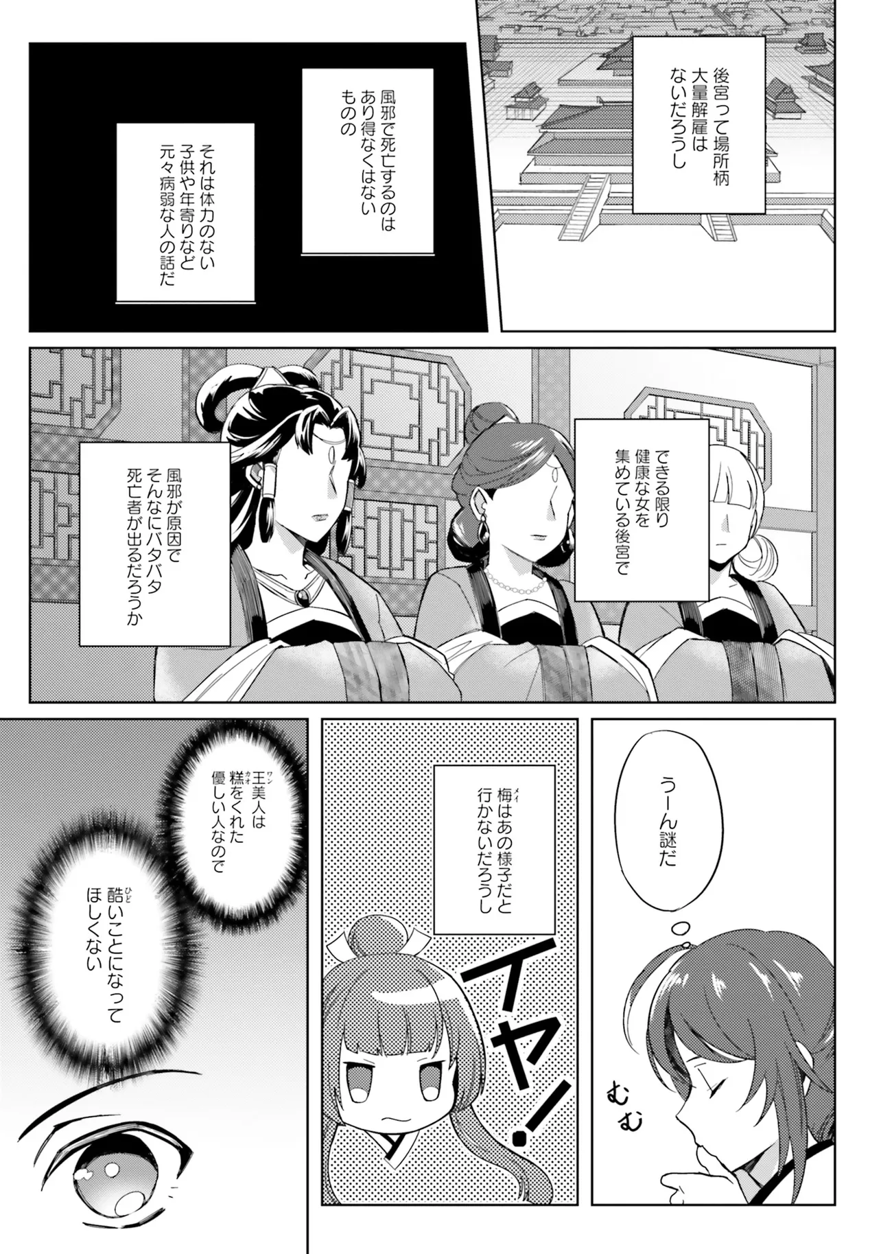 百花宮のお掃除係 第四章 楊おばさんと王美人 百花宮のお掃除係 投稿者 admin - 10か月 前に 幸せな読書漫画 百花宮のお掃除係 第四章 楊おばさんと王美人 , いいねと共有ボタンをクリックすることを忘れないでください. Manga 百花宮のお掃除係 常に更新されます 無料コミック Comic Top. 他のマンガの更新を読むことを忘れないでください。 マンガコレクションのリスト 無料コミック Comic Top マンガリストメニューにあります. お友達と共有しましょう! Facebook Twitter Pinterest Whatsapp 前のエピソード すべての章 次のエピソード リスト ページング Loading.. 前のエピソード すべての章 次のエピソード リスト ページング お友達と共有しましょう! Facebook Twitter Pinterest Whatsapp お気に入りに追加に続く 2 人 百花宮のお掃除係 看護師だった前世の記憶をもったまま中華風の異世界に転生した雨妹。 貧しい田舎暮らしをしていたが、後宮へ宮仕えする機会が舞い込み、「中華ドラマで見たあの煌びやかで泥沼な世界が体験できる!」と期待に胸を膨らませて辿り着いた後宮では、とある噂が飛び交っており……。 新米宮女、後宮のトラブルも呪いも人間関係も、医療チートで全部解決しちゃいます!! shoyu(漫画)しのとうこ(キャラクター原案)黒辺あゆみ(原作) カドカワBOOKSコミカライズなろう系フロースフロースコミック中華ファンタジー小説家になろう後宮
