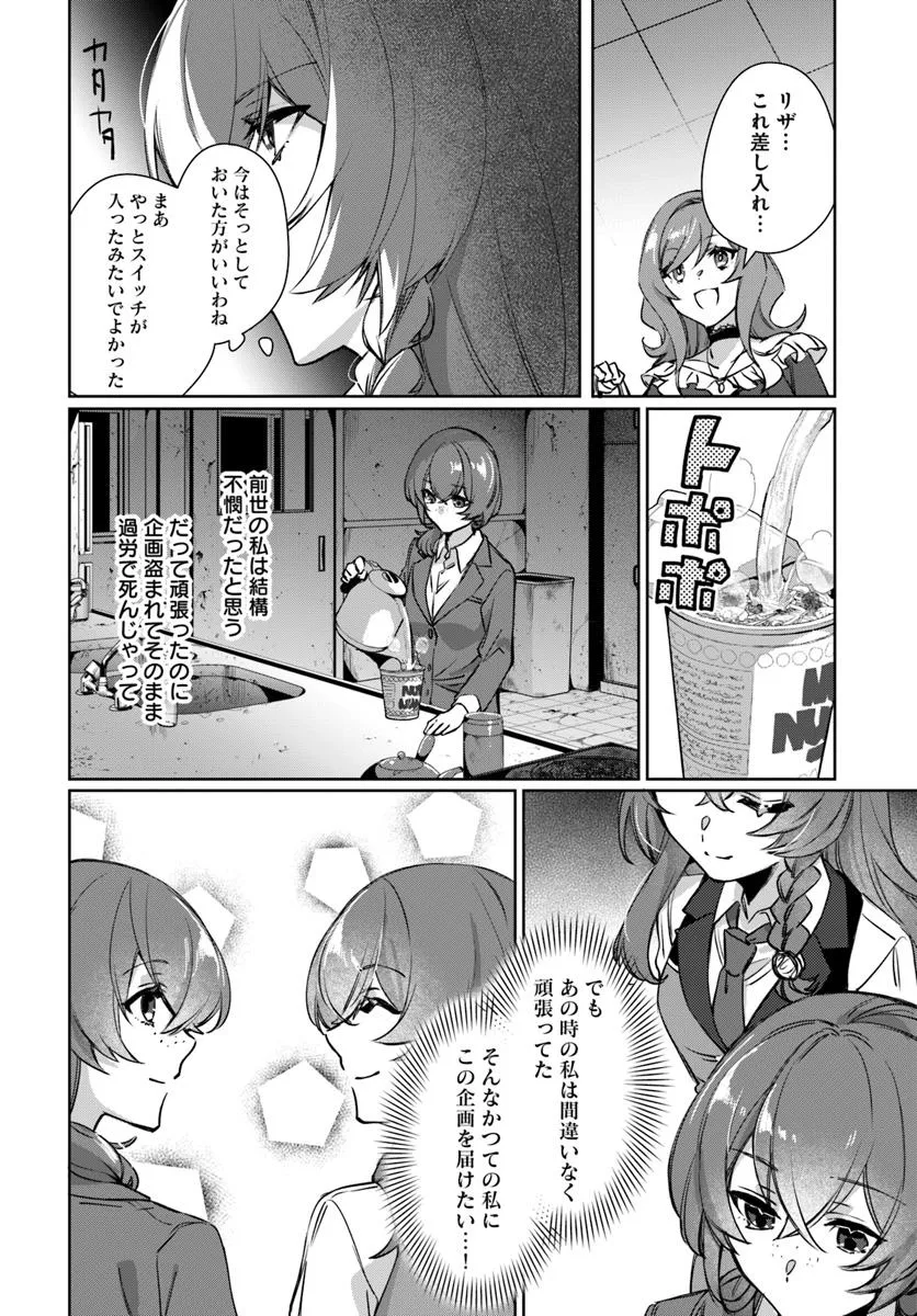 異世界の広告代理店に勤めるリザ。ゆる~く働いて定時退社がモットーだったが、階段から落ちてしまったはずみで前世はバリバリの社畜だったことを思い出す(しかも前世でも広告代理店勤務)。せっかくの異世界なのに、チートもないし悪役令嬢でもないなんて……と残念に思いつつも、もともとの社畜マインドが大覚醒! 仕事に邁進するようになったのだが、前世のように推せるイケオジは見つからず。しかし悪役令嬢のユナが言うには、リザこそ乙女ゲームのヒロインらしいのだが……いやいや、そんなわけないって!?  推し似のイケオジ上司の包容力にいつしかキュン? 異世界社畜オフィスラブストーリー(予定)!