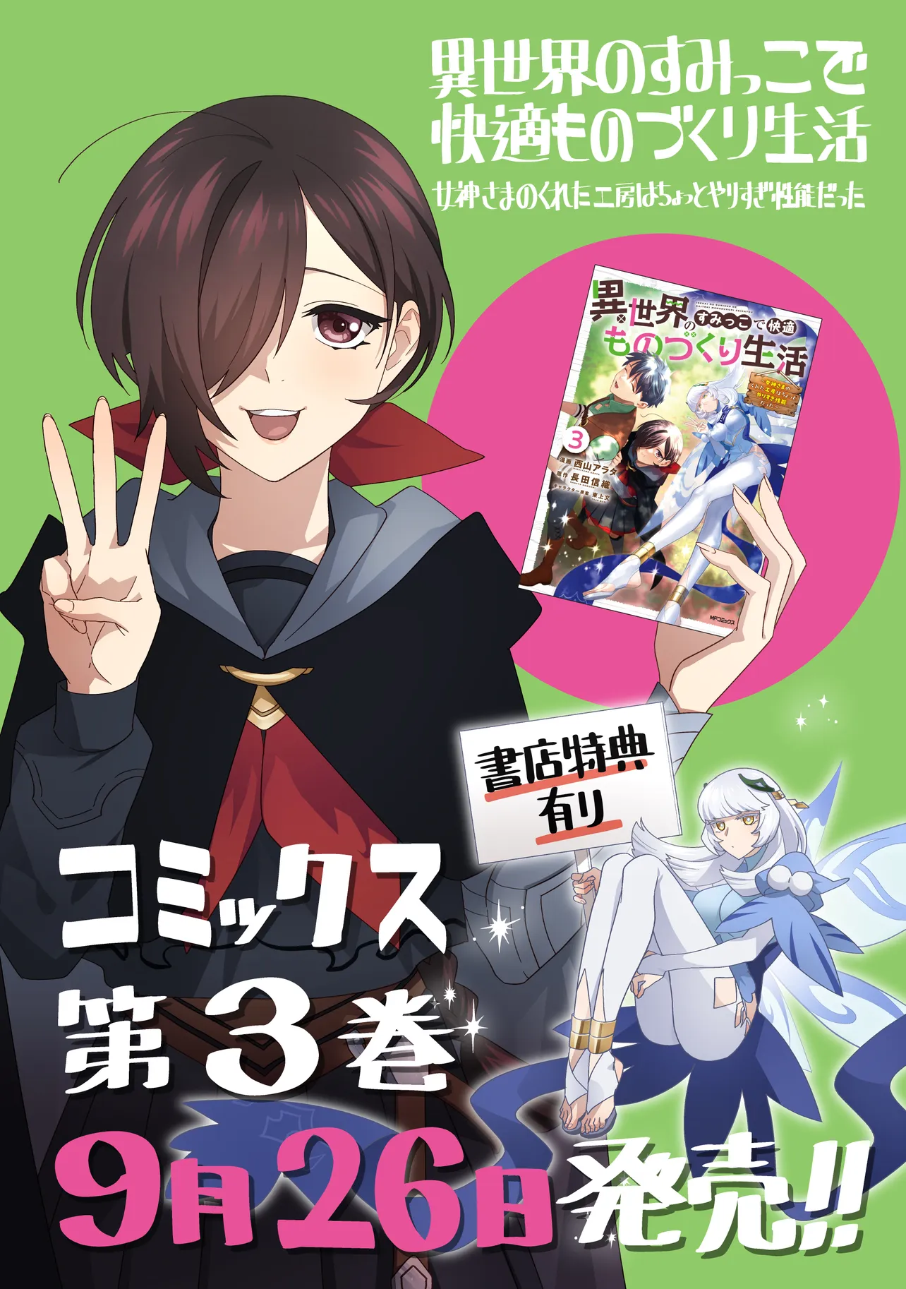 異世界のすみっこで快適ものづくり生活 ~女神さまのくれた工房はちょっとやりすぎ性能だった~ コミックス3巻発売告知