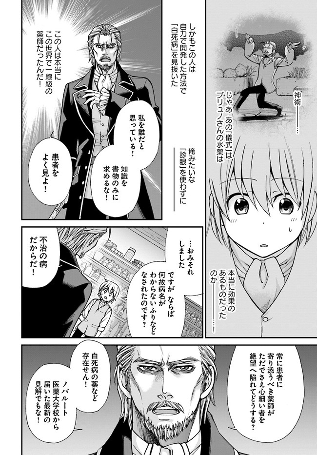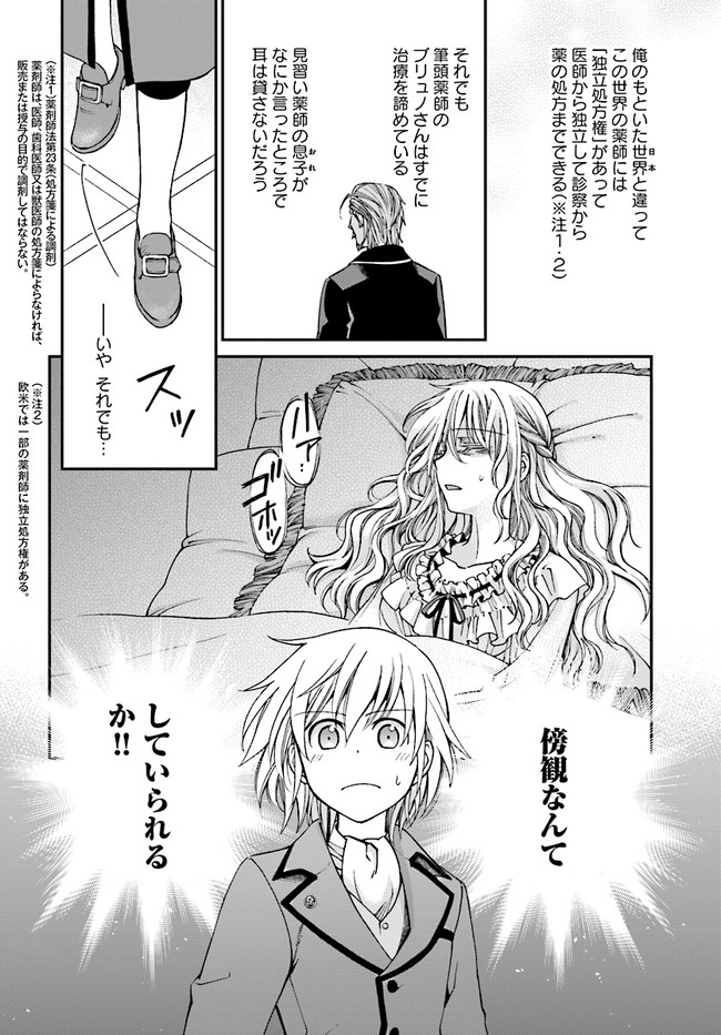 研究に没頭するあまり過労死してしまった若き薬学者。 しかし彼は異世界で宮廷薬師の名家の息子、 ファルマとして転生していた。 間違った治療法や薬の調合が横行するこの異世界で 彼は前世で培った現代薬学と手に入れたチート能力で 人々を救おうとあらゆる疾病に立ち向かう。