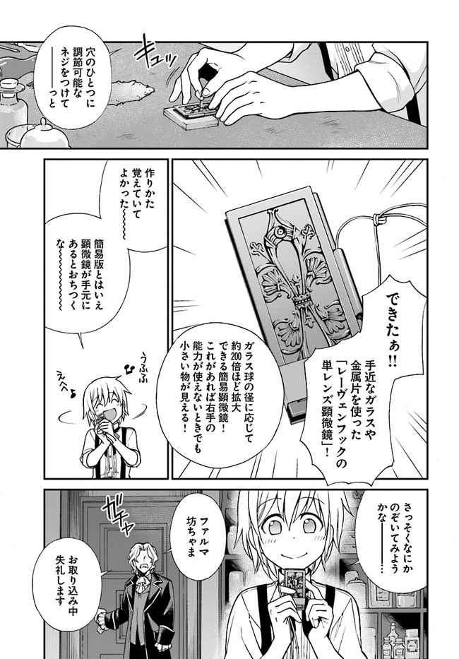 研究に没頭するあまり過労死してしまった若き薬学者。 しかし彼は異世界で宮廷薬師の名家の息子、 ファルマとして転生していた。 間違った治療法や薬の調合が横行するこの異世界で 彼は前世で培った現代薬学と手に入れたチート能力で 人々を救おうとあらゆる疾病に立ち向かう。
