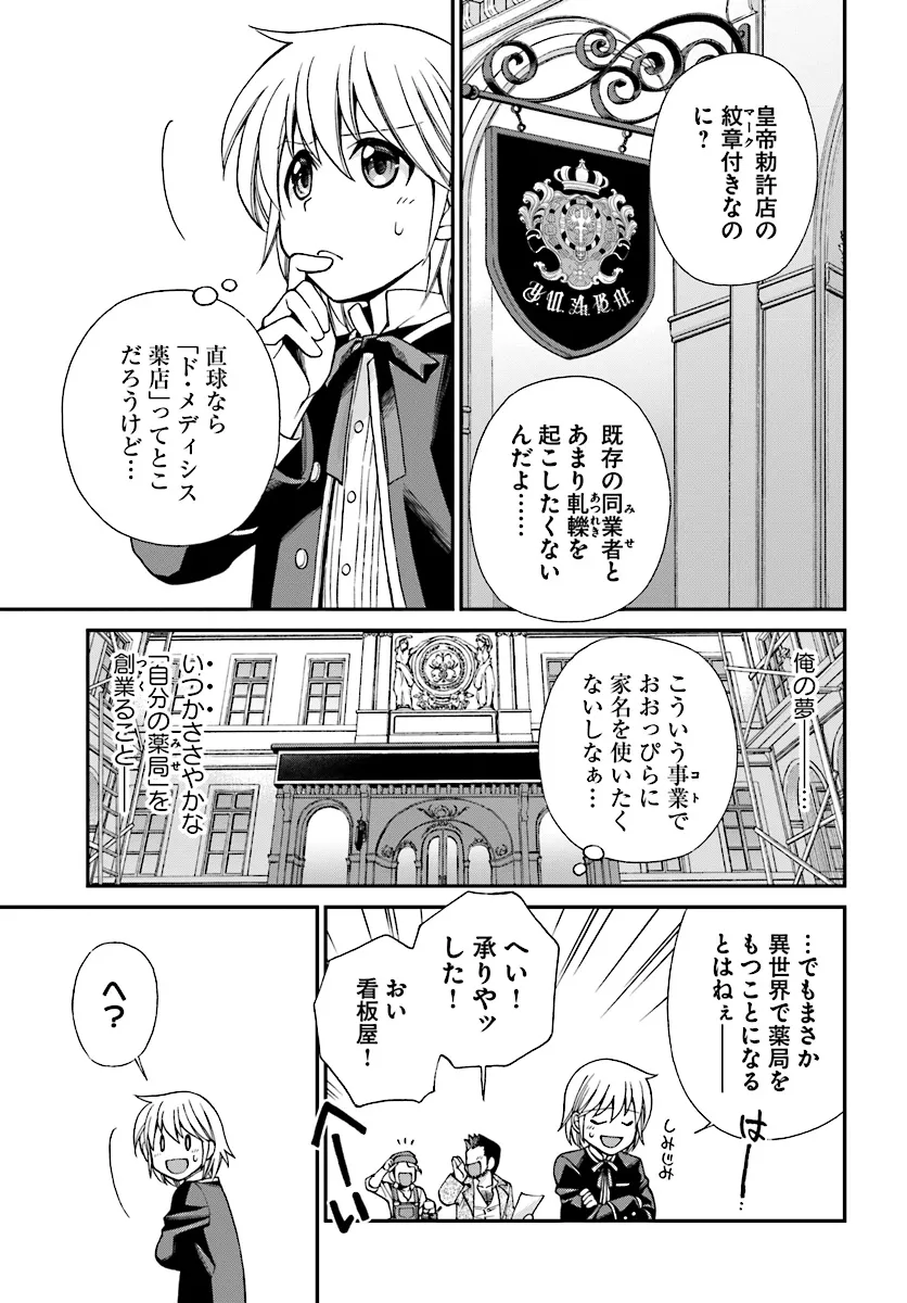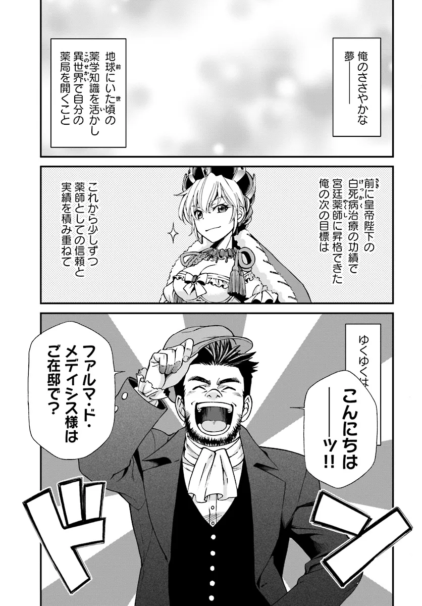 研究に没頭するあまり過労死してしまった若き薬学者。 しかし彼は異世界で宮廷薬師の名家の息子、 ファルマとして転生していた。 間違った治療法や薬の調合が横行するこの異世界で 彼は前世で培った現代薬学と手に入れたチート能力で 人々を救おうとあらゆる疾病に立ち向かう。