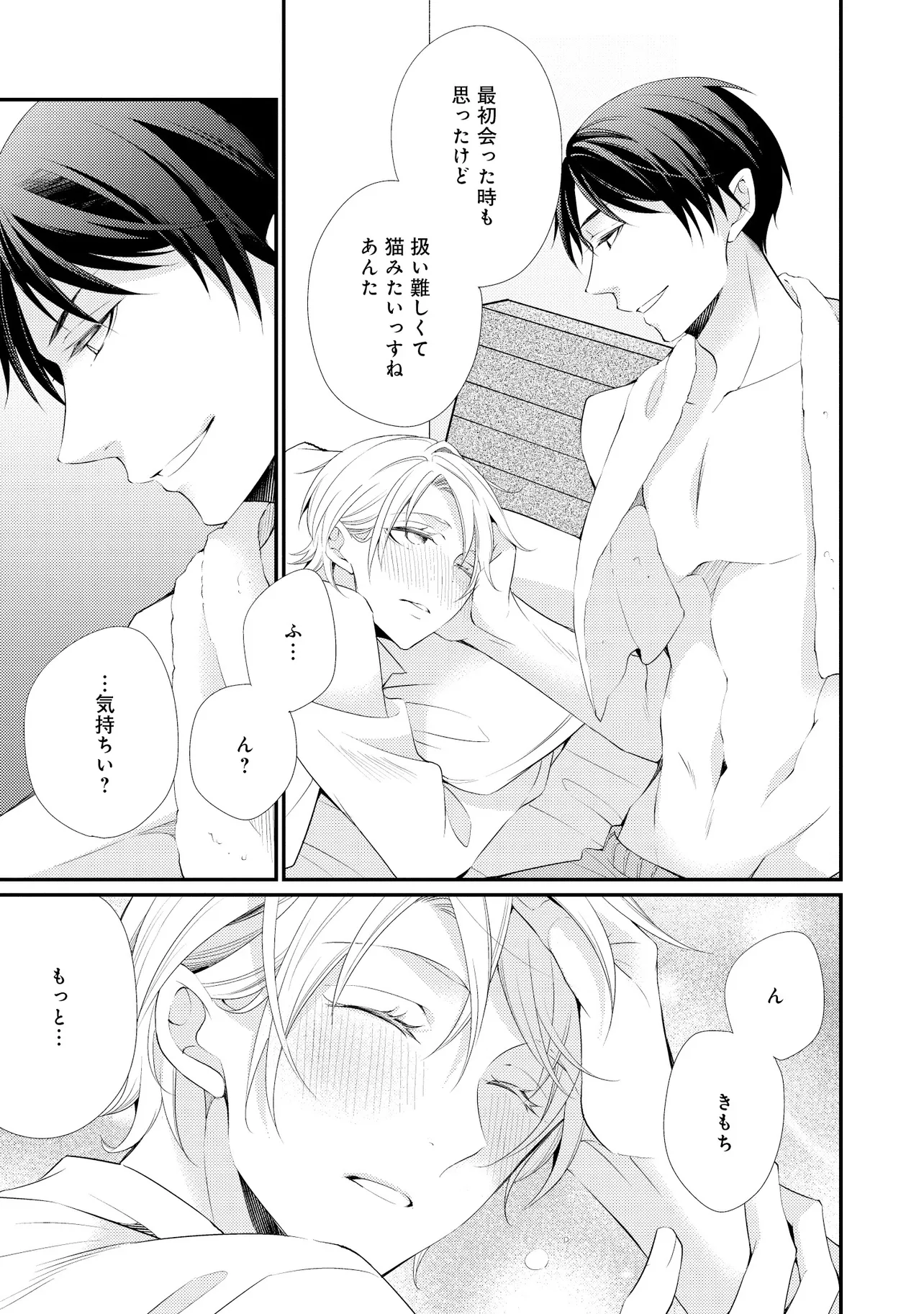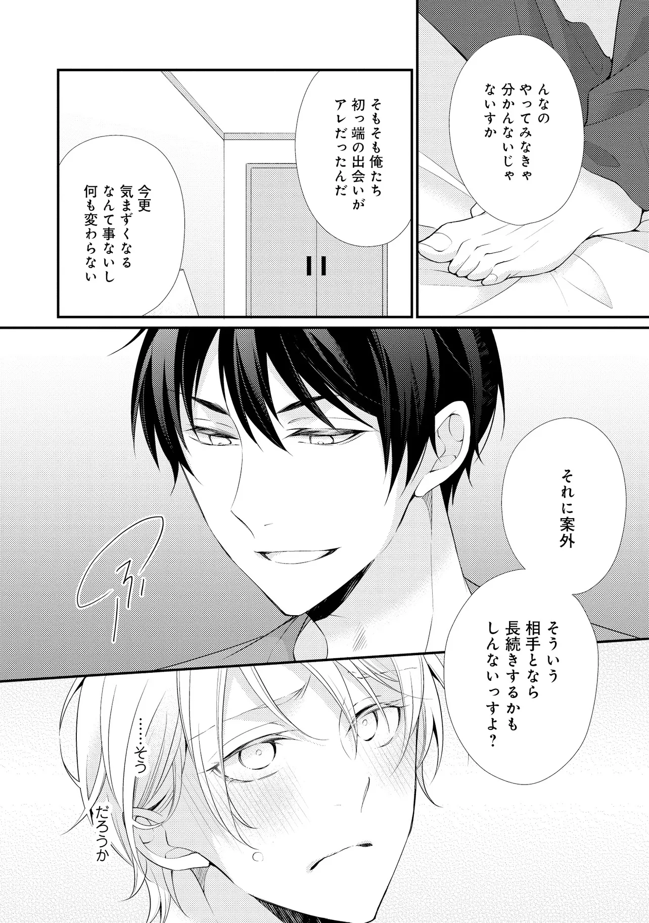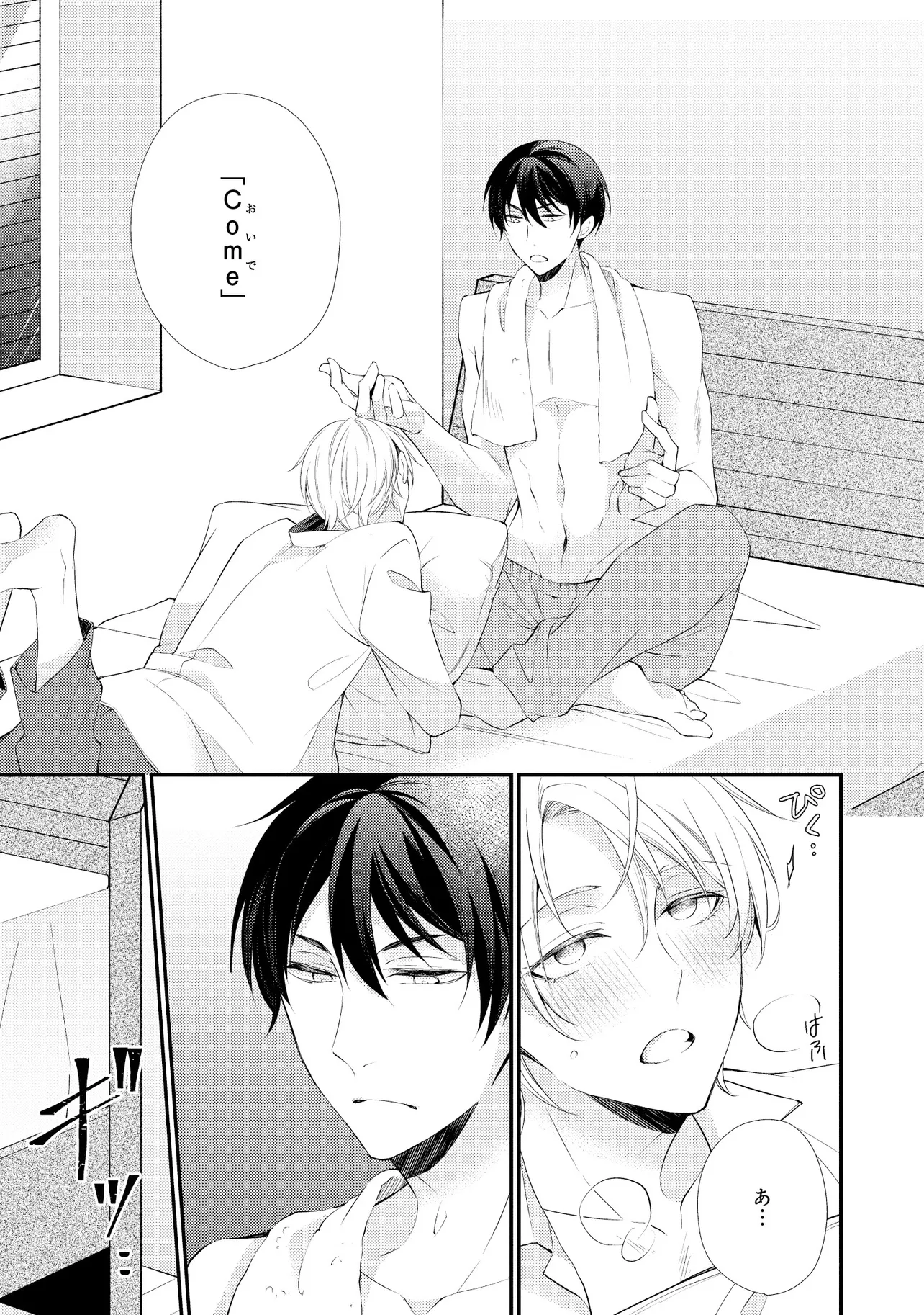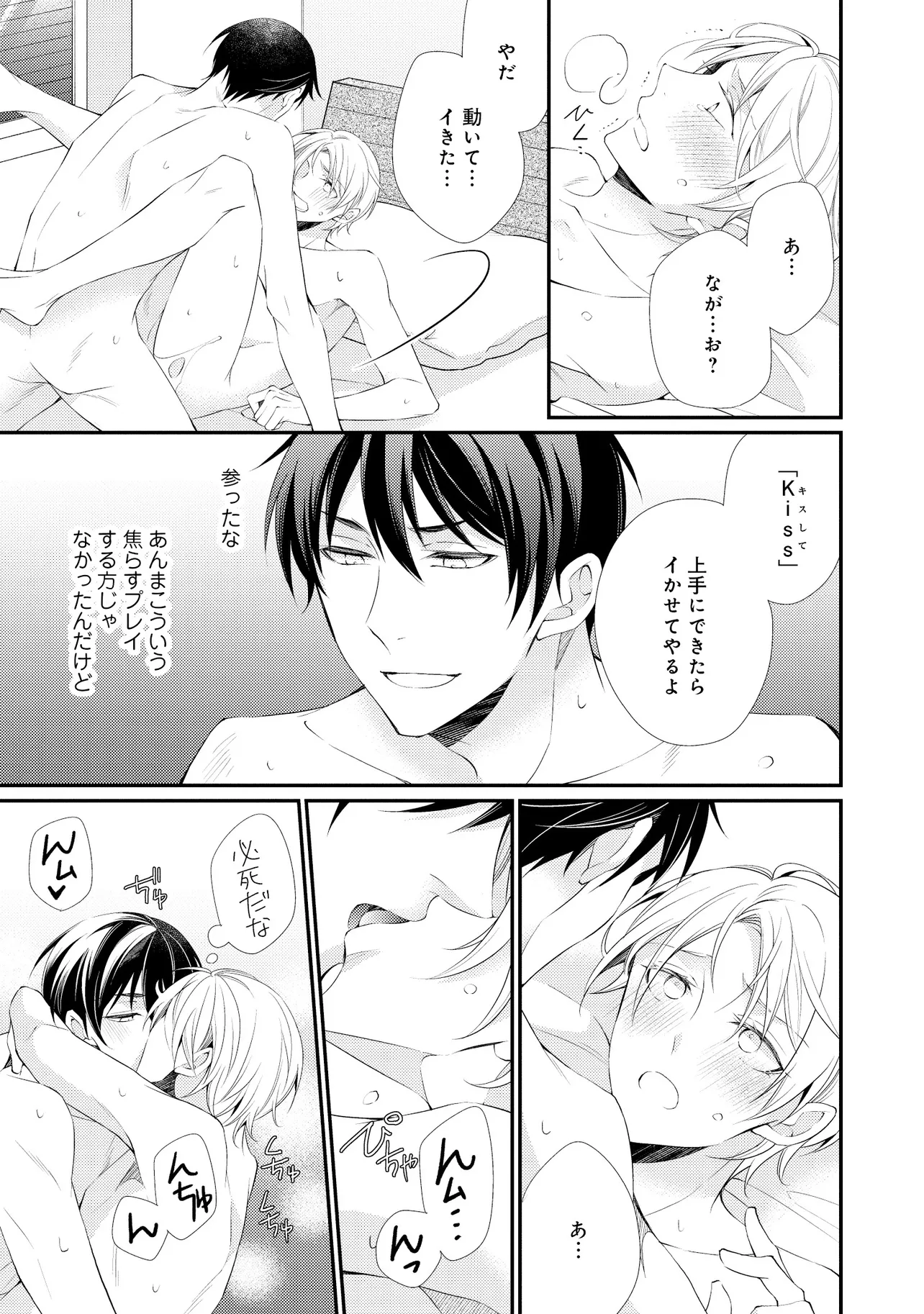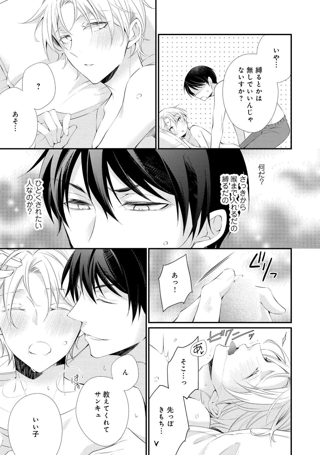 通勤中、電車内の中吊り広告をぼんやり眺めていた真木野。 それは『Sub用抑制剤』の新商品を宣伝するもので、パートナーのいないSubの欲求を手軽に解消するというもの。真木野自身もSubでしばらくパートナーがいない。そろそろ溜まってきたので試してみようかな…と考えていたところ突然、お尻に妙な違和感が…!!見知らぬDomからの痴漢だと気づいたがどうすることもできず、無理やりコマンドを使われてしまう。気持ち悪さを感じながらも逆らえず、このまま襲われてしまう――と思った寸でのところに別のDom男性が異変に気付き、助けてくれた。その後なんとか出社した真木野のもとに、部長が新しく赴任してきた人を紹介すると連れてきた。その人物はなんと、先程自分を救ってくれた男性で――…!?