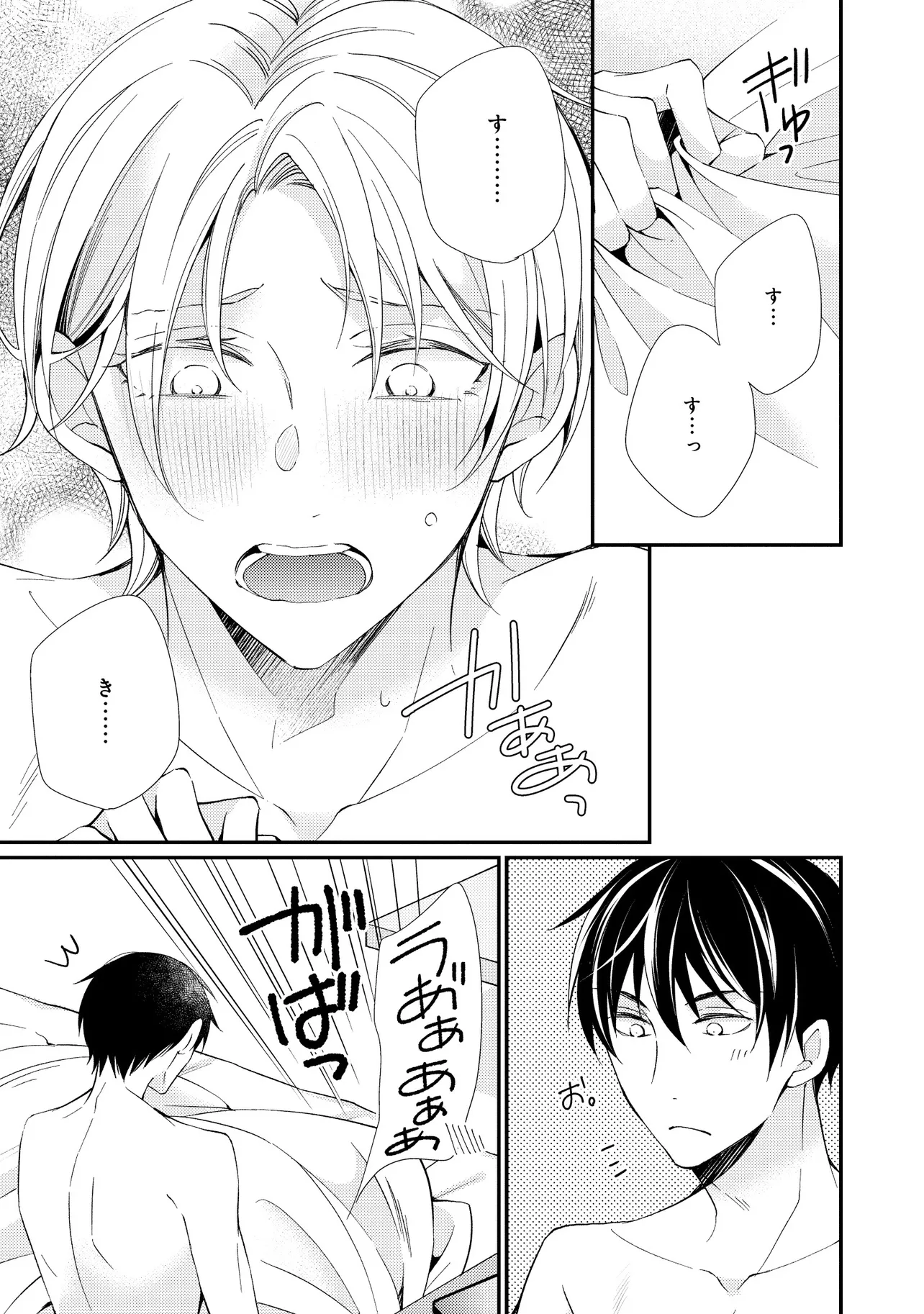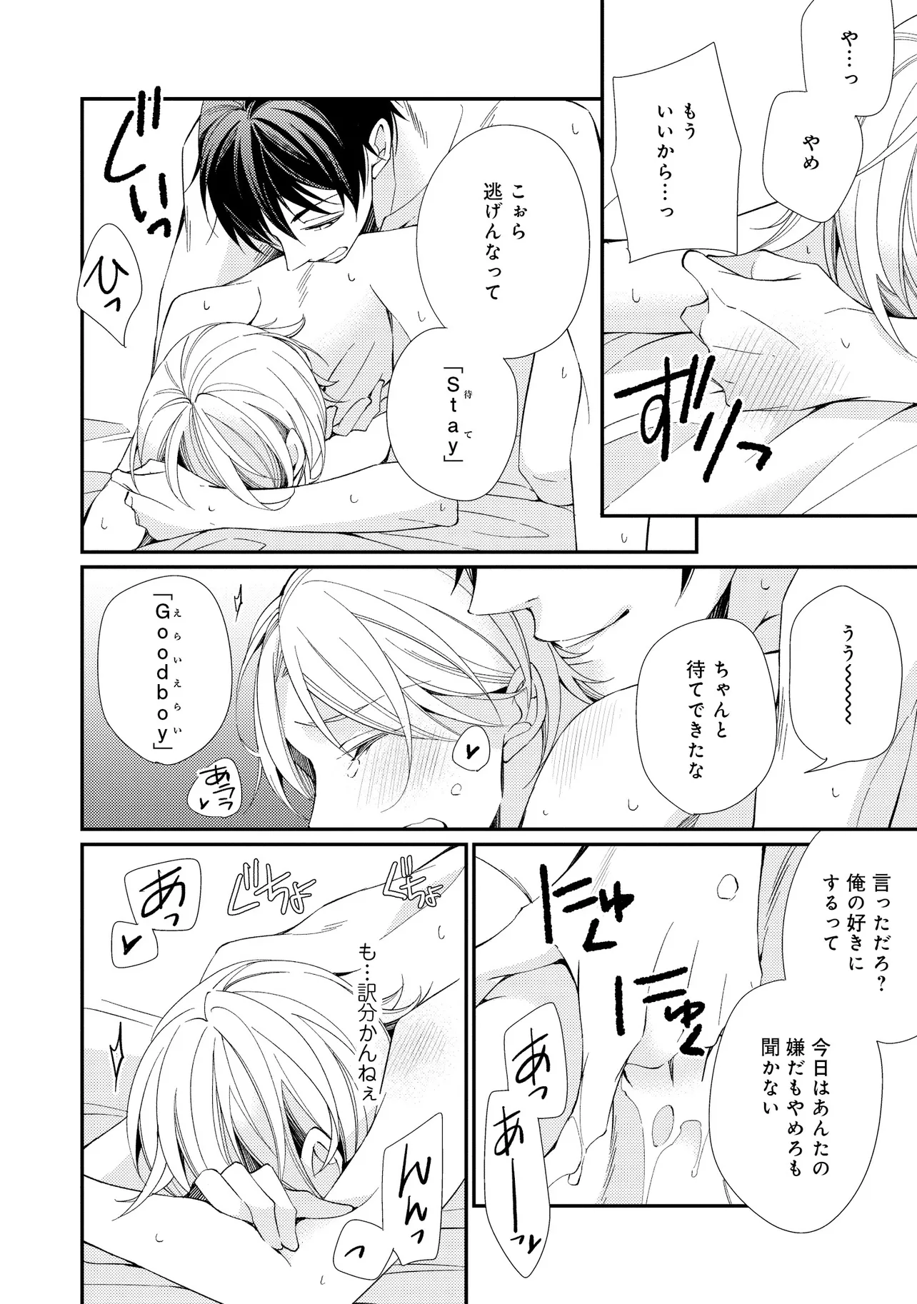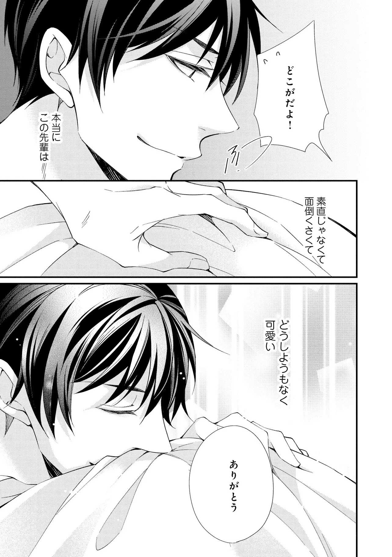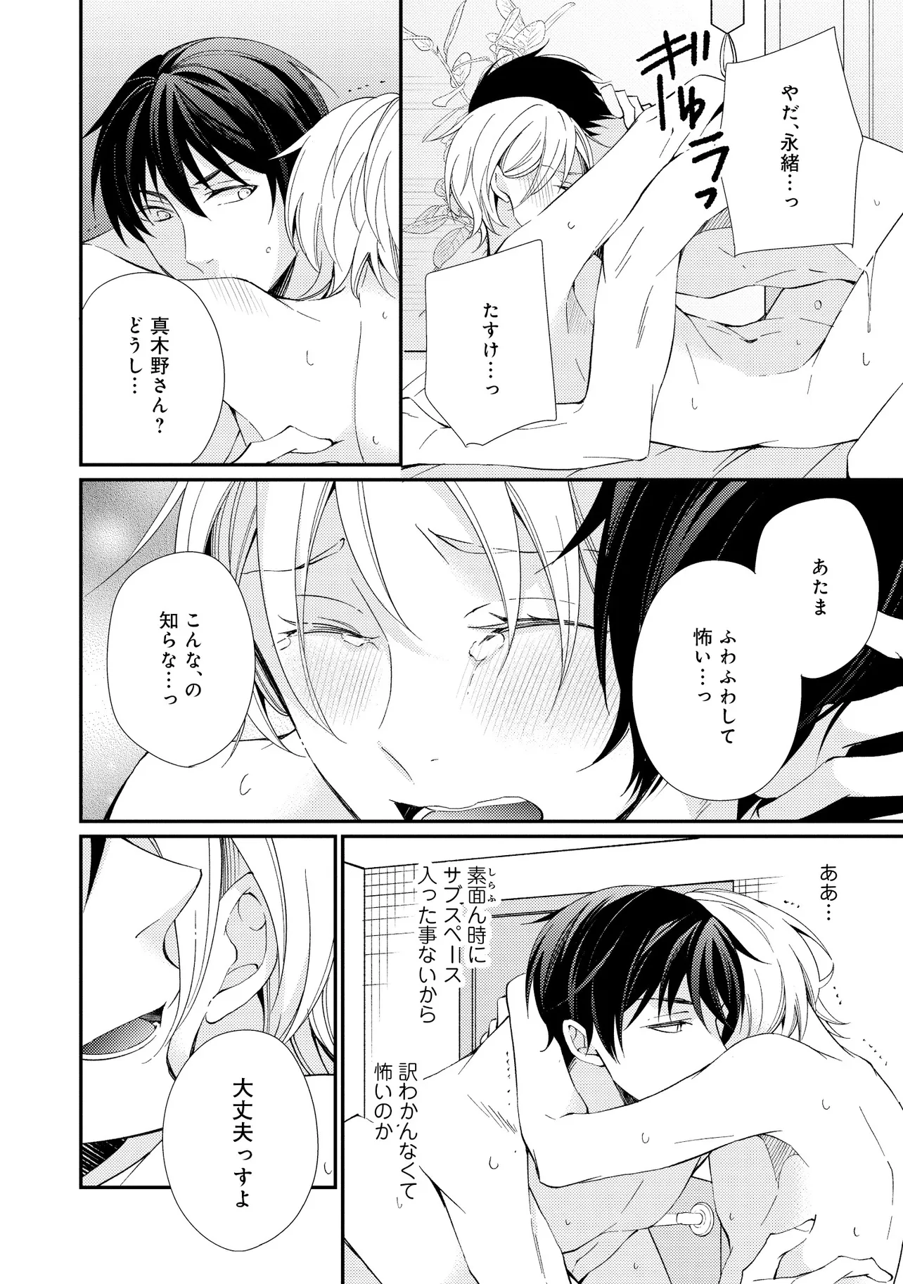 通勤中、電車内の中吊り広告をぼんやり眺めていた真木野。 それは『Sub用抑制剤』の新商品を宣伝するもので、パートナーのいないSubの欲求を手軽に解消するというもの。真木野自身もSubでしばらくパートナーがいない。そろそろ溜まってきたので試してみようかな…と考えていたところ突然、お尻に妙な違和感が…!!見知らぬDomからの痴漢だと気づいたがどうすることもできず、無理やりコマンドを使われてしまう。気持ち悪さを感じながらも逆らえず、このまま襲われてしまう――と思った寸でのところに別のDom男性が異変に気付き、助けてくれた。その後なんとか出社した真木野のもとに、部長が新しく赴任してきた人を紹介すると連れてきた。その人物はなんと、先程自分を救ってくれた男性で――…!?