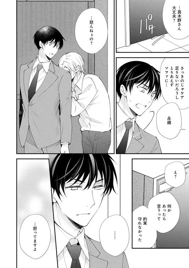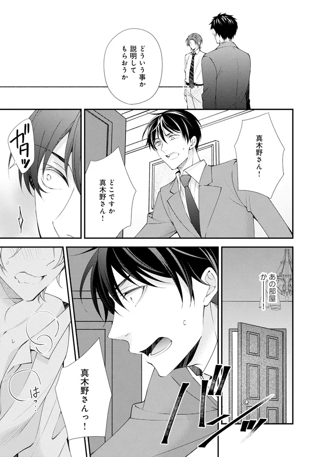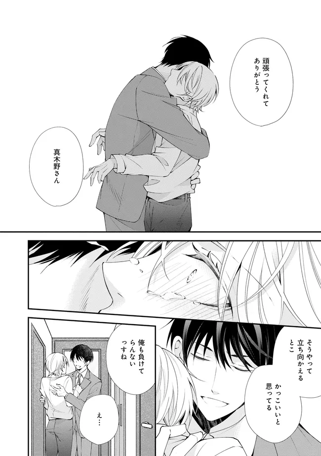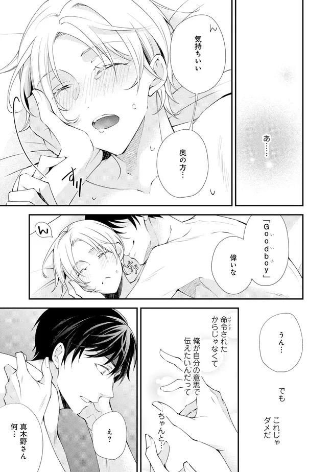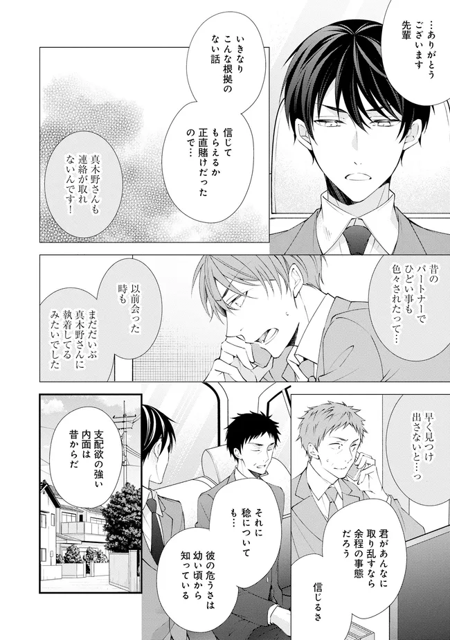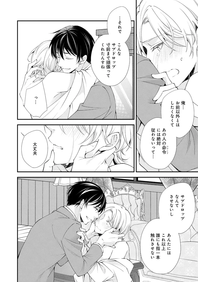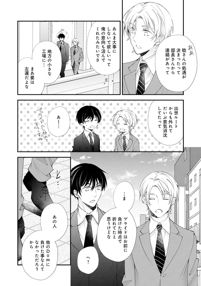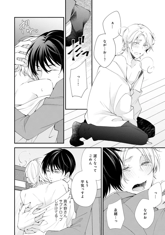 通勤中、電車内の中吊り広告をぼんやり眺めていた真木野。 それは『Sub用抑制剤』の新商品を宣伝するもので、パートナーのいないSubの欲求を手軽に解消するというもの。真木野自身もSubでしばらくパートナーがいない。そろそろ溜まってきたので試してみようかな…と考えていたところ突然、お尻に妙な違和感が…!!見知らぬDomからの痴漢だと気づいたがどうすることもできず、無理やりコマンドを使われてしまう。気持ち悪さを感じながらも逆らえず、このまま襲われてしまう――と思った寸でのところに別のDom男性が異変に気付き、助けてくれた。その後なんとか出社した真木野のもとに、部長が新しく赴任してきた人を紹介すると連れてきた。その人物はなんと、先程自分を救ってくれた男性で――…!?