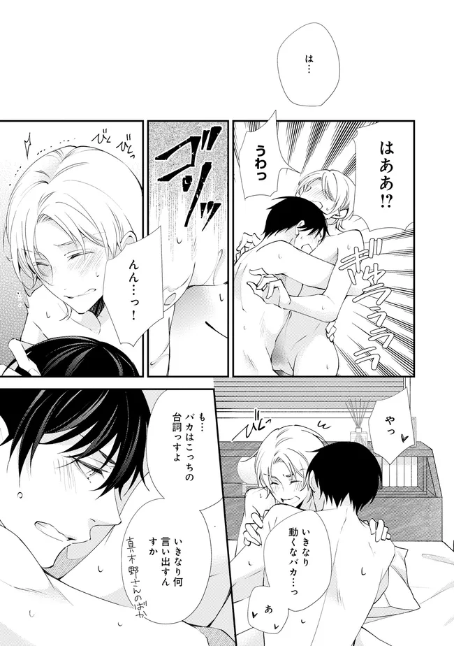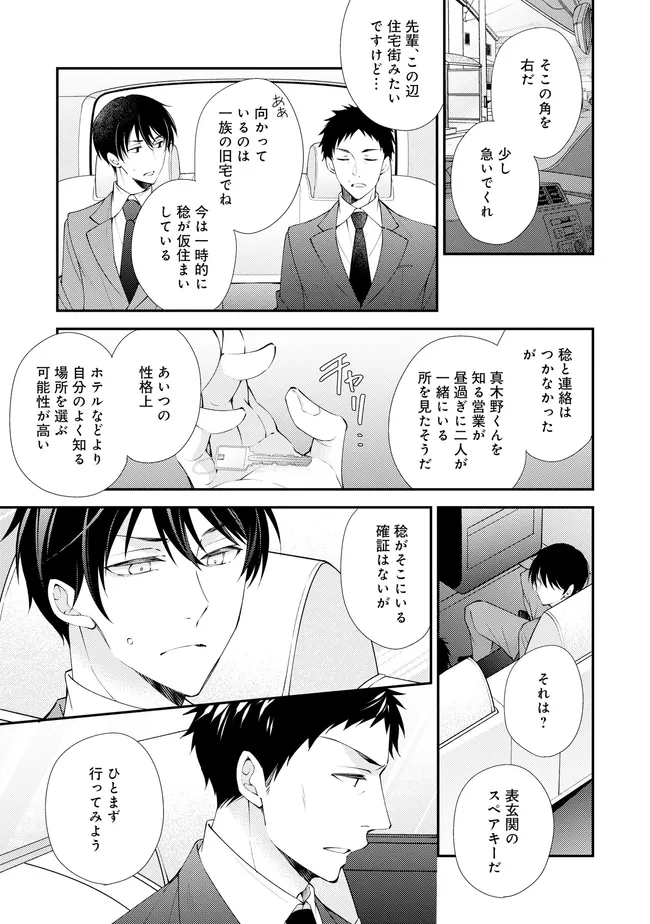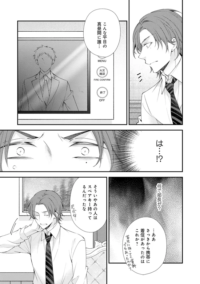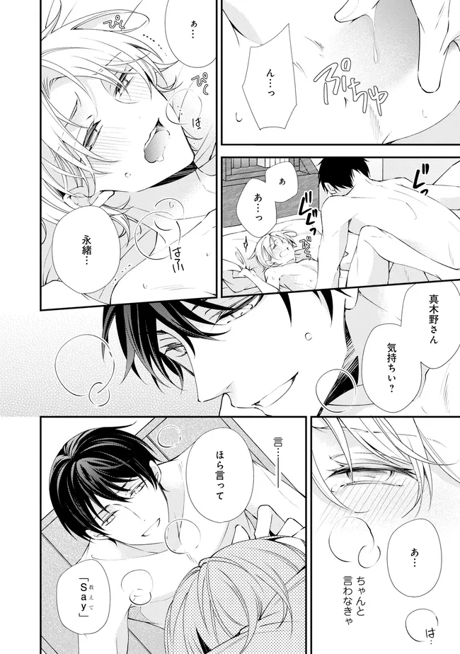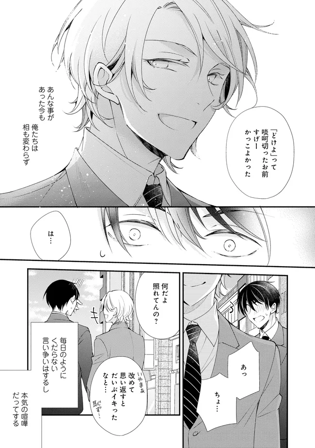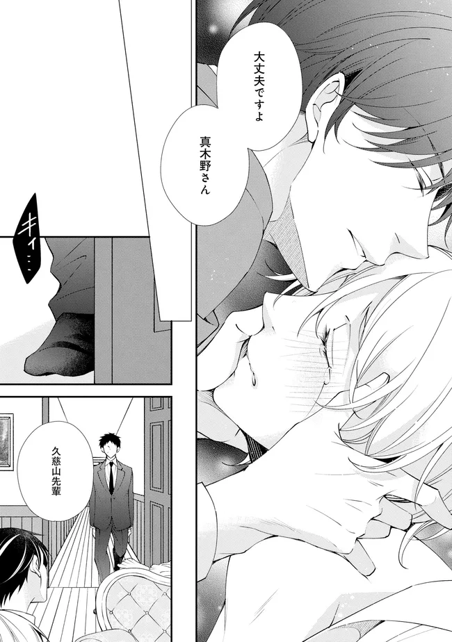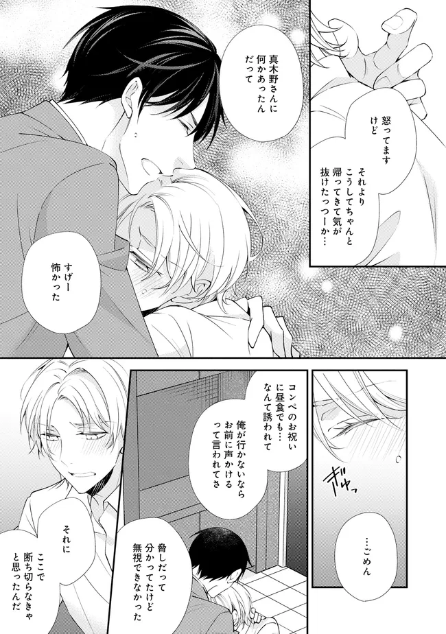 通勤中、電車内の中吊り広告をぼんやり眺めていた真木野。 それは『Sub用抑制剤』の新商品を宣伝するもので、パートナーのいないSubの欲求を手軽に解消するというもの。真木野自身もSubでしばらくパートナーがいない。そろそろ溜まってきたので試してみようかな…と考えていたところ突然、お尻に妙な違和感が…!!見知らぬDomからの痴漢だと気づいたがどうすることもできず、無理やりコマンドを使われてしまう。気持ち悪さを感じながらも逆らえず、このまま襲われてしまう――と思った寸でのところに別のDom男性が異変に気付き、助けてくれた。その後なんとか出社した真木野のもとに、部長が新しく赴任してきた人を紹介すると連れてきた。その人物はなんと、先程自分を救ってくれた男性で――…!?