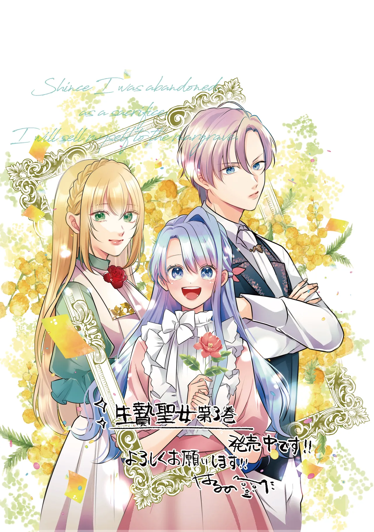 生贄として捨てられたので、辺境伯家に自分を売ります~いつの間にか聖女と呼ばれ、溺愛されていました~ 単行本3巻のお知らせ