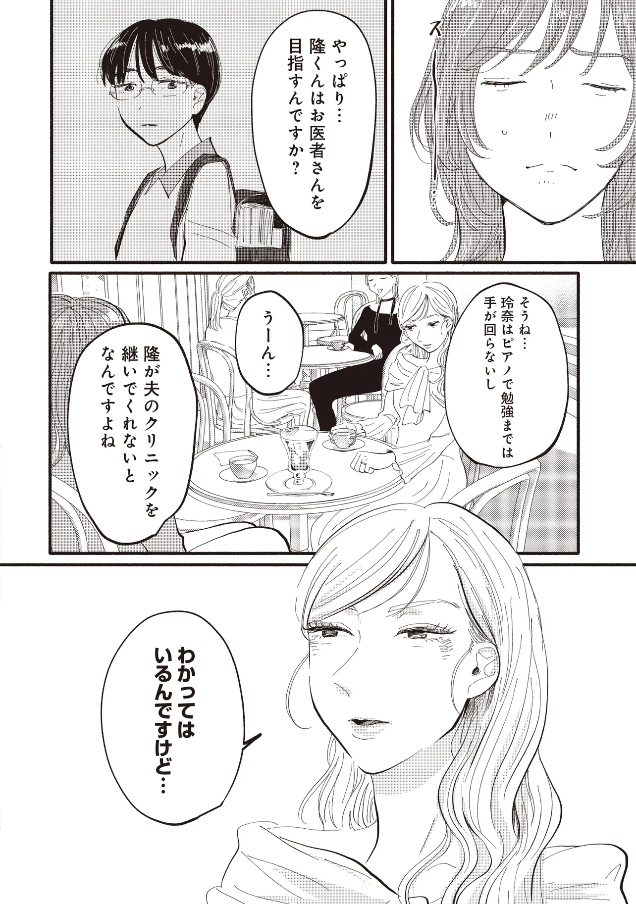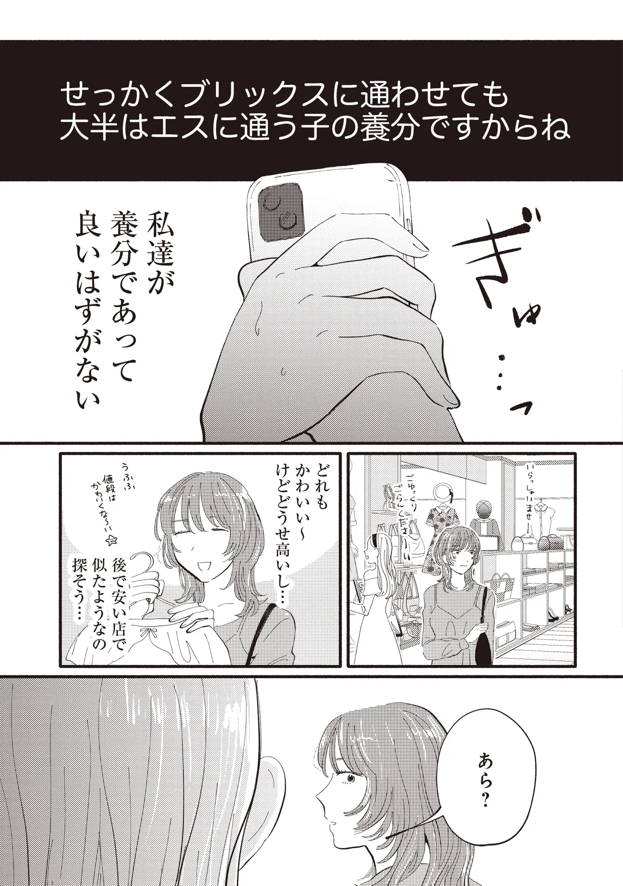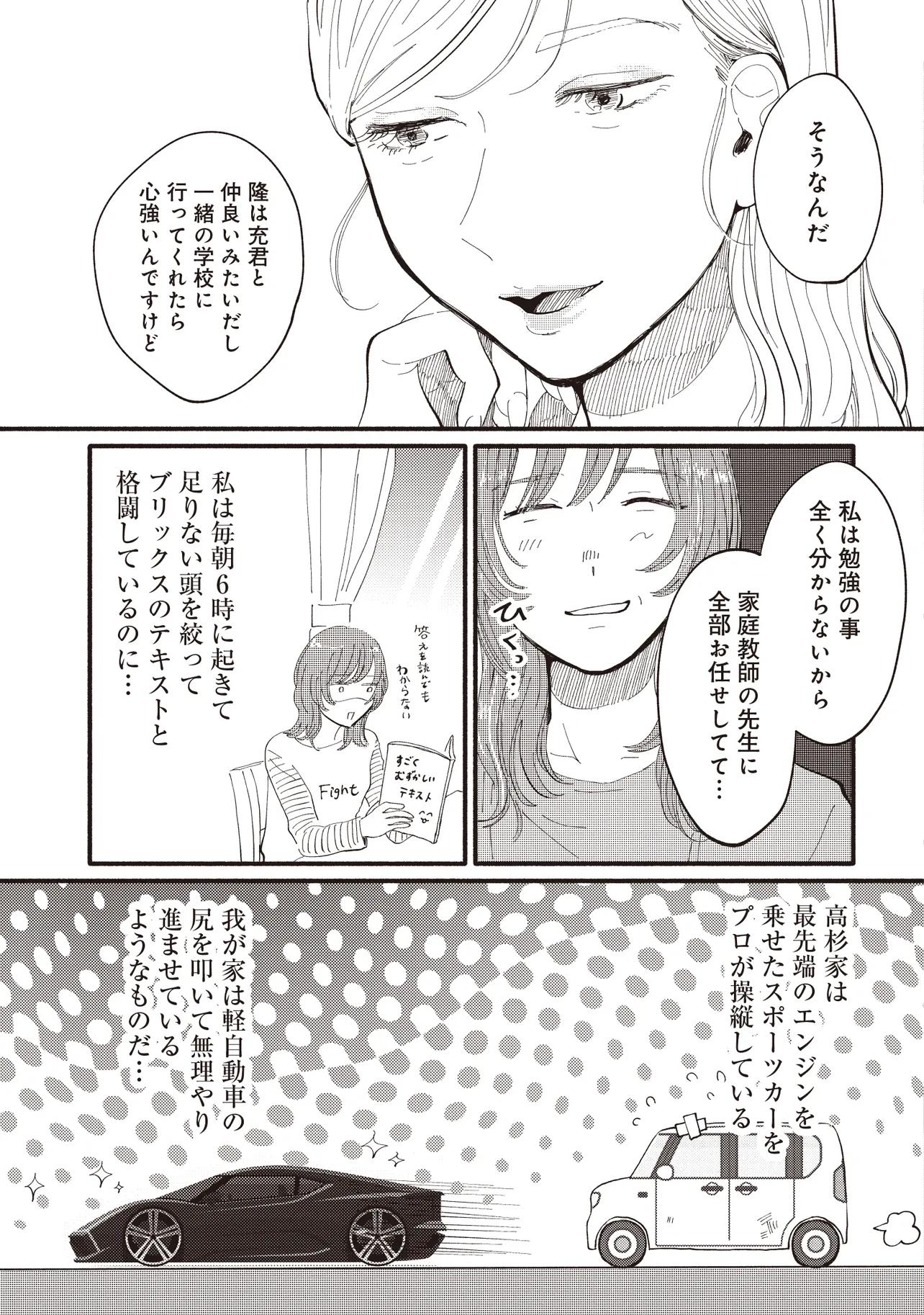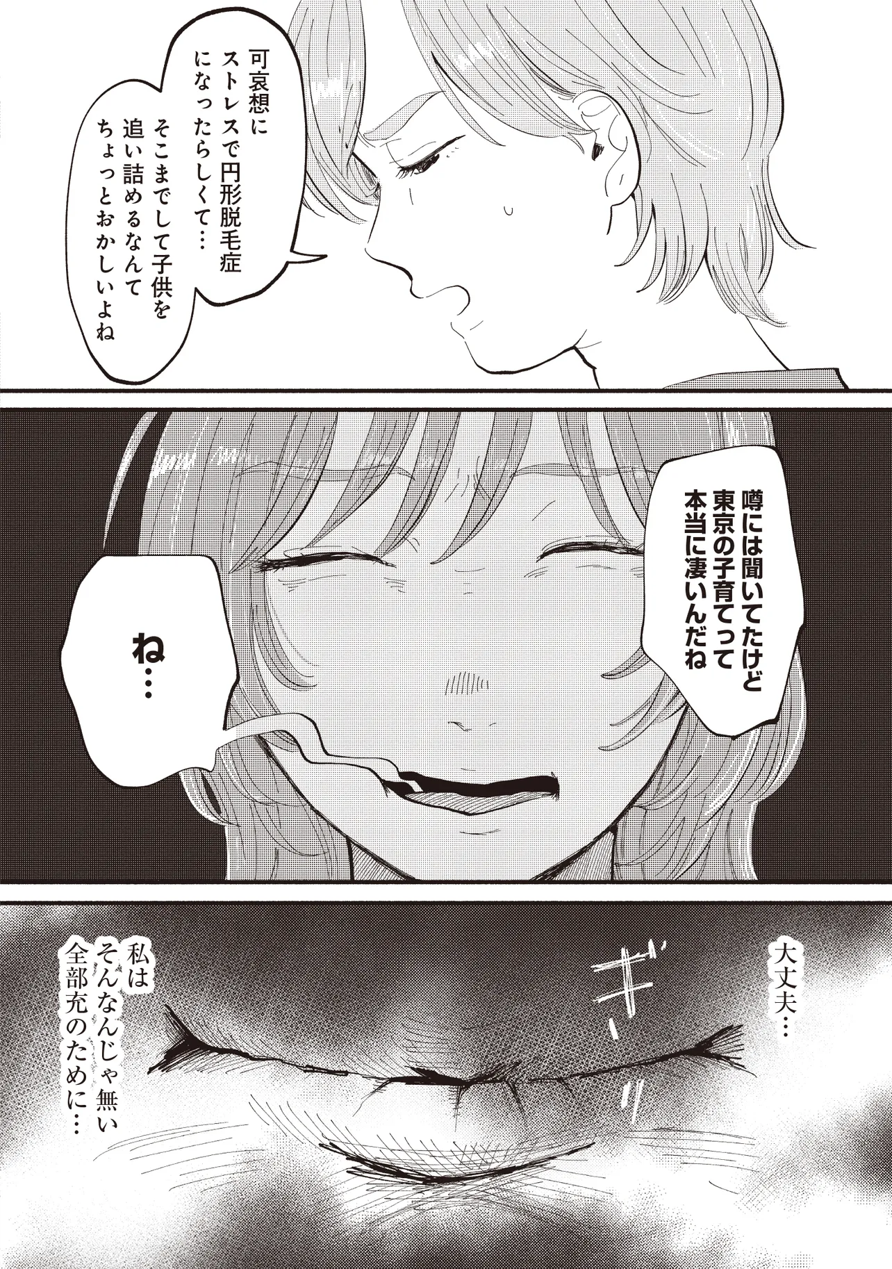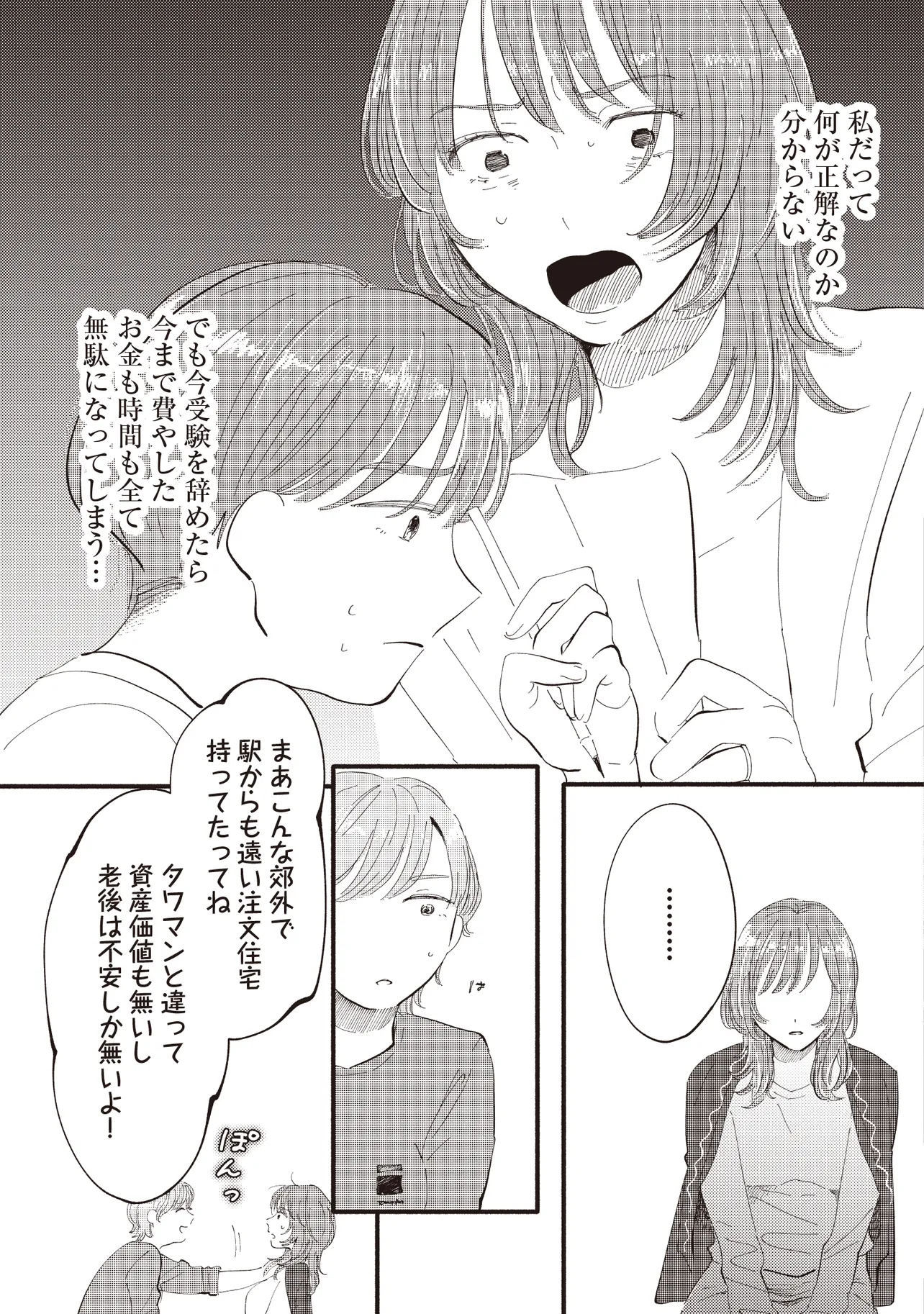 大手銀行の一般職として働く平田さやかは、念願のタワマンに住みながらも日々ストレスが絶えない。一人息子である充の過酷な受験戦争、同じマンションの最上階に住む医者一族の高杉家、そして総合職としてエリートコースを歩む同僚やPTAの雑務。種々のストレスから逃れたいと思ったとき、向かったのは親友・マミの元だった。かつては港区で一緒に遊び回り、夢を語り合った二人だったが――。